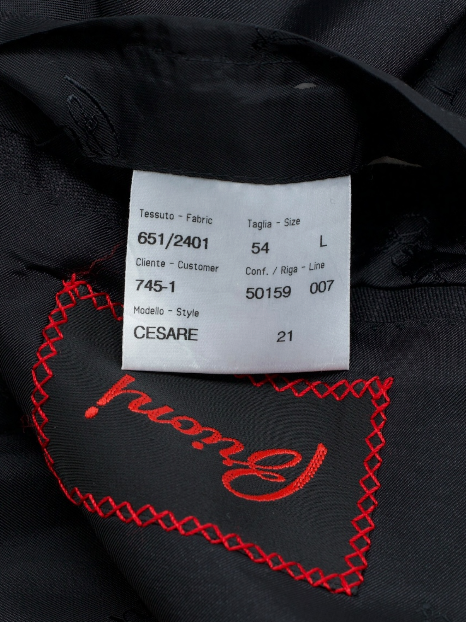 Cut in the Cesare fit, the jacket balances structure and proportion, offering a dignified silhouette that remains comfortable and fluid. The trousers are tailored in the Alfa fit with double pleats, providing both ease of movement and a classic sartorial line that complements the jacket’s formality. Together, they create a harmonious composition that reflects Brioni’s heritage of disciplined tailoring and understated elegance, a suit designed for those who appreciate refinement in its most subtle and enduring form. Discover the elaborated sartorial details below.