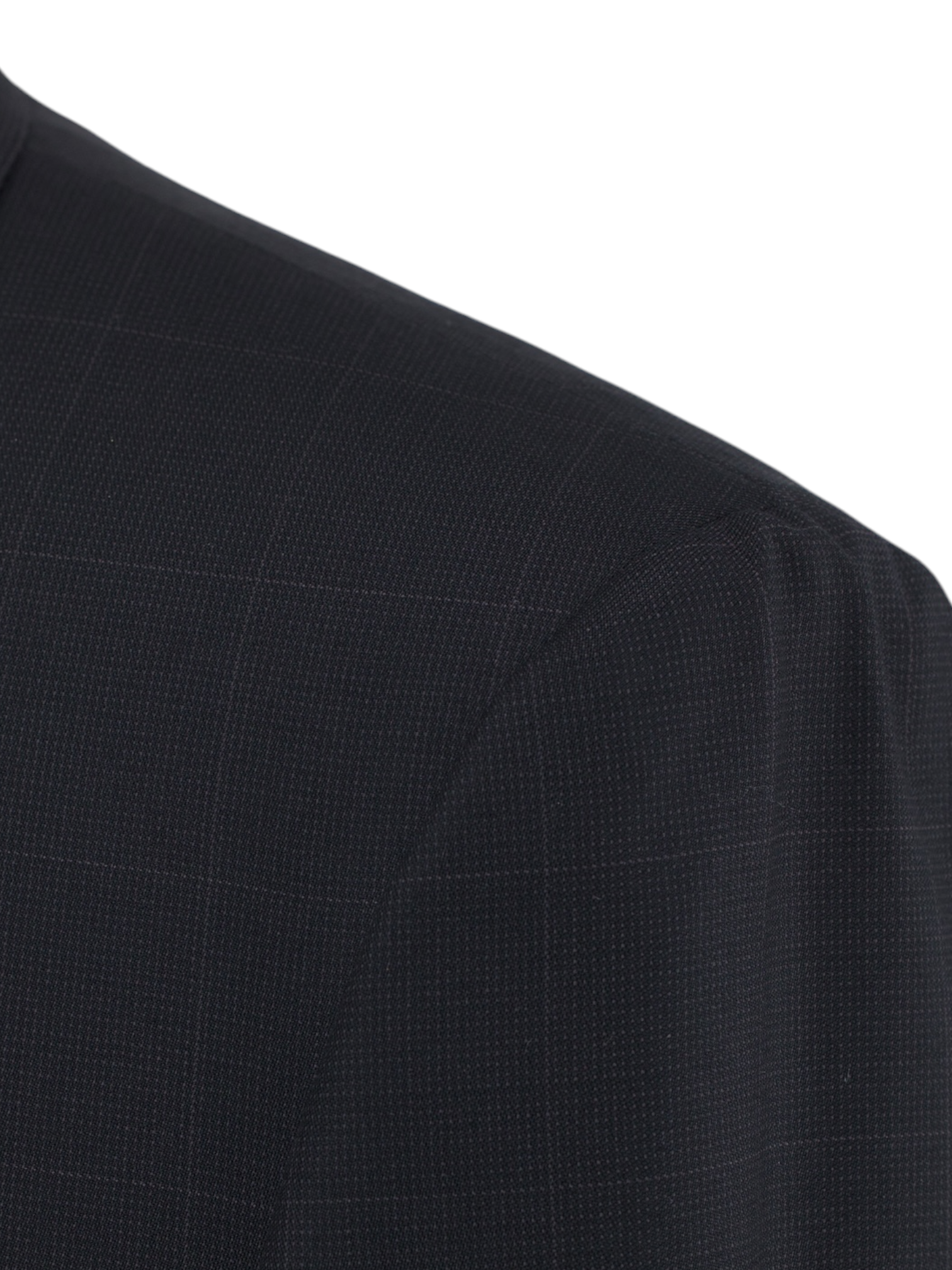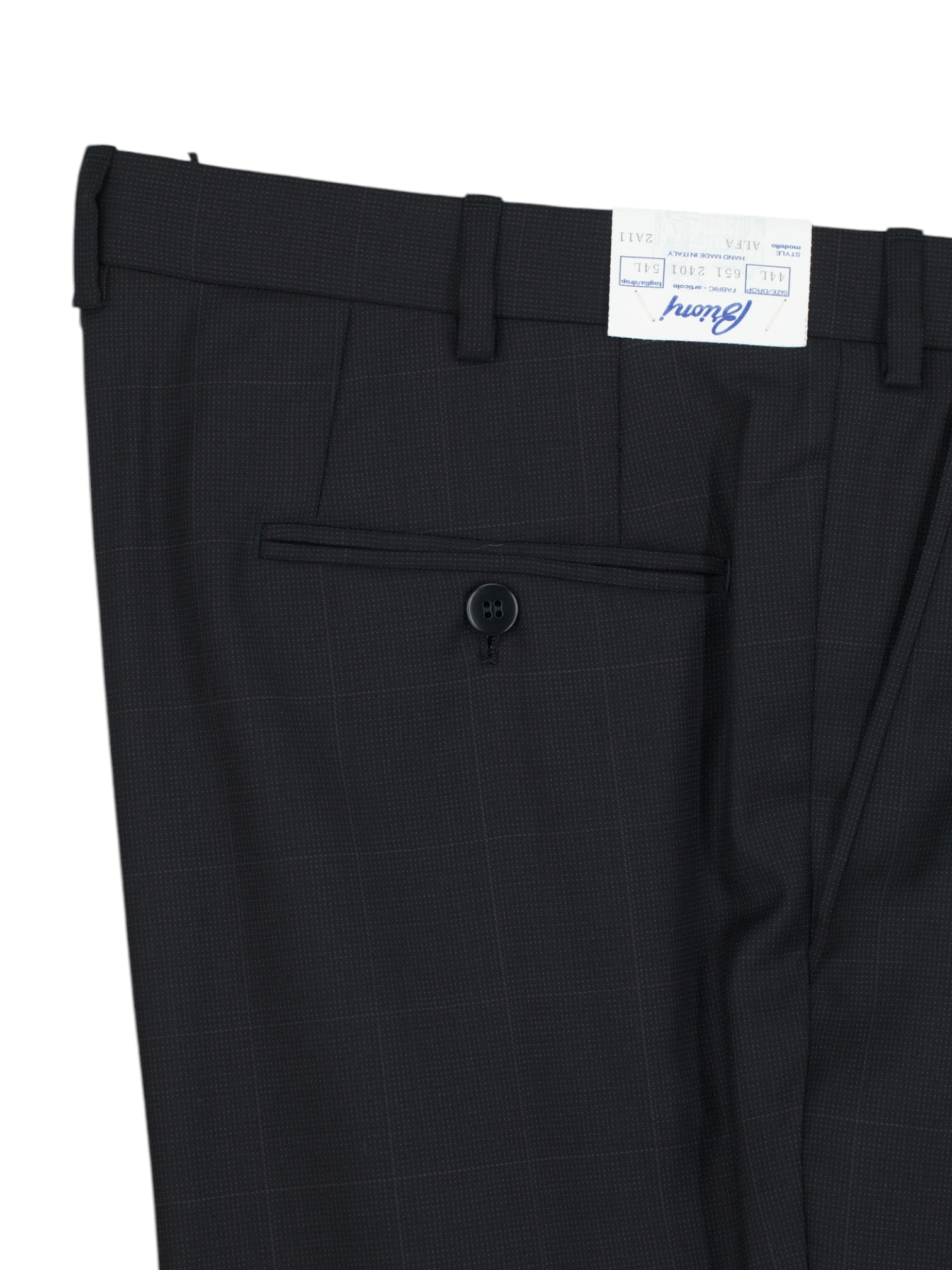 Discover the Brioni Anthracite Fine Wool Roman Style Windowpane Suit, a refined expression of classic Roman tailoring elevated through subtle pattern and precise construction. The anthracite base is enriched with a fine pinpoint texture and a delicate, understated windowpane, creating depth and visual interest without disturbing the suit’s formal character. Crafted from fine wool, the fabric offers a smooth, composed handle with a clean drape, while notch lapels and a traditional three button closure enhance the long, elegant silhouette. Fully lined and shaped with Brioni’s signature Roman style shoulders, the jacket presents a structured, authoritative profile.