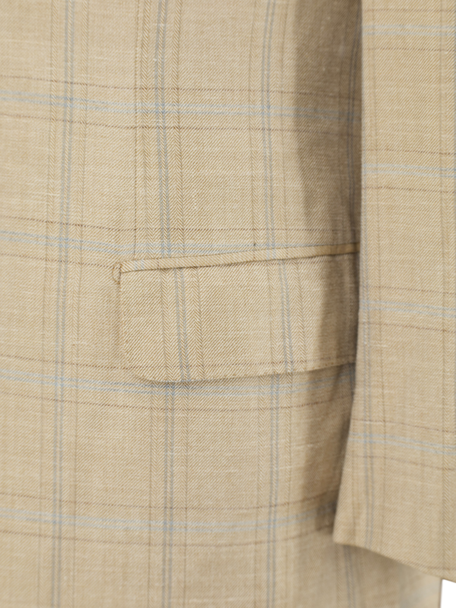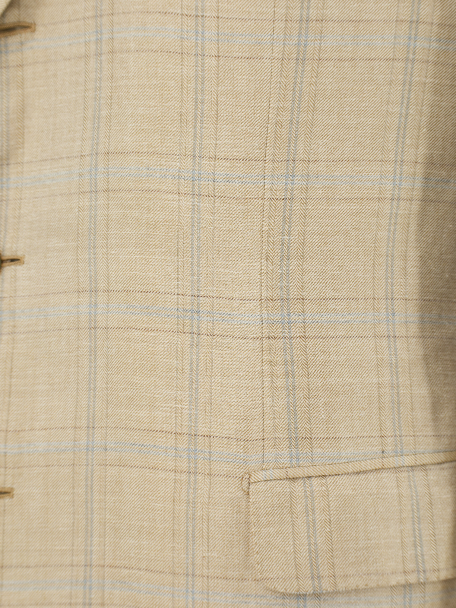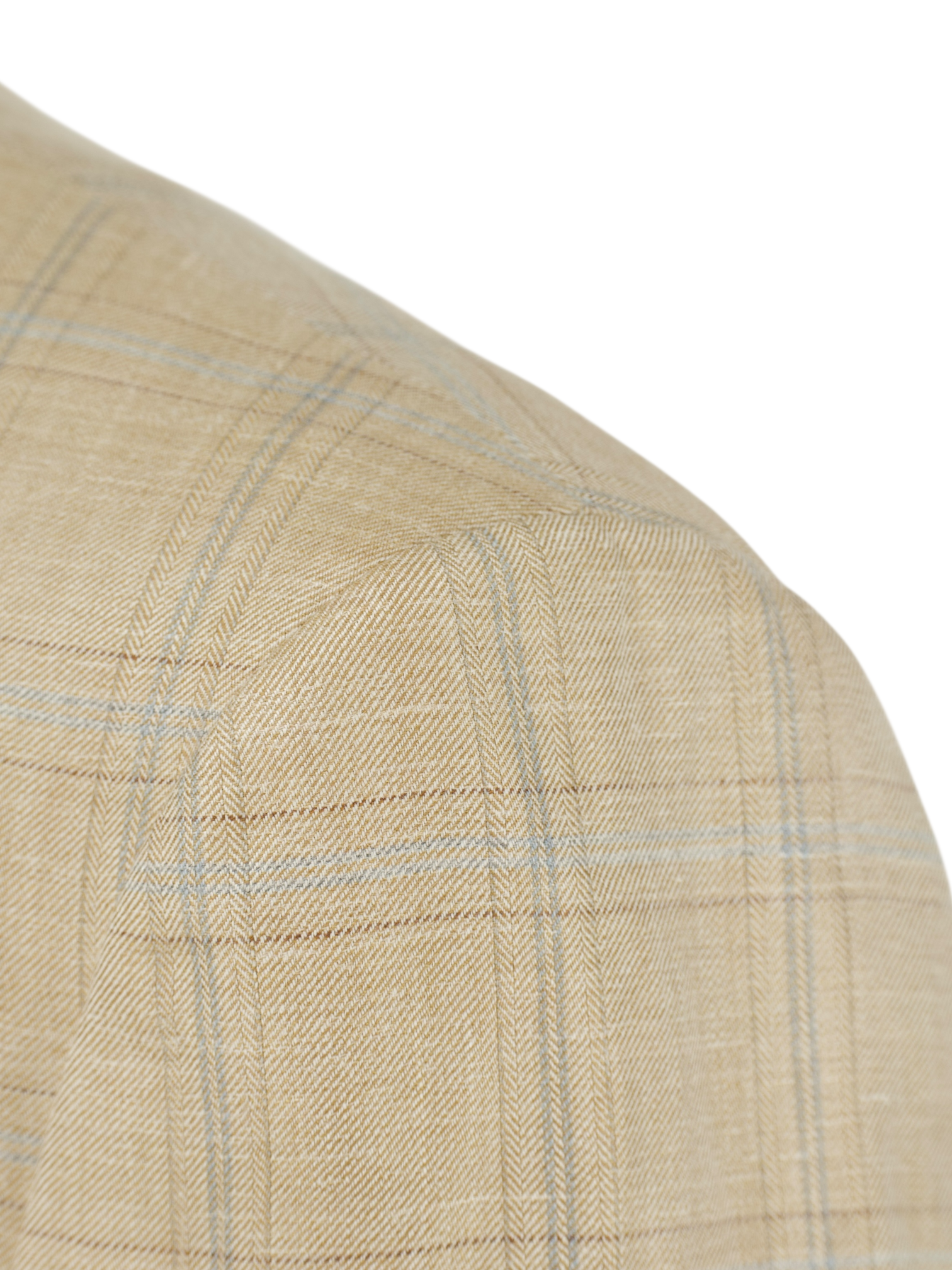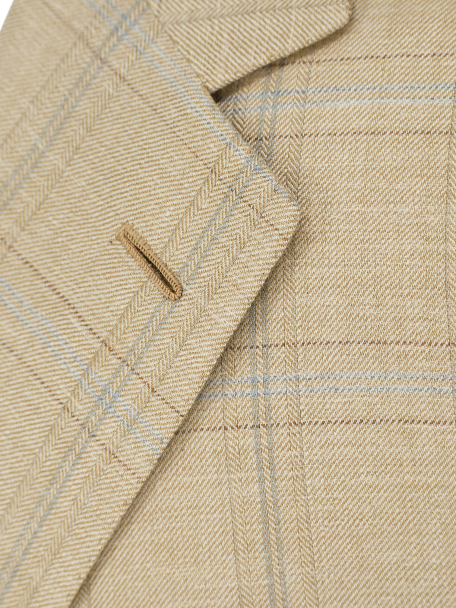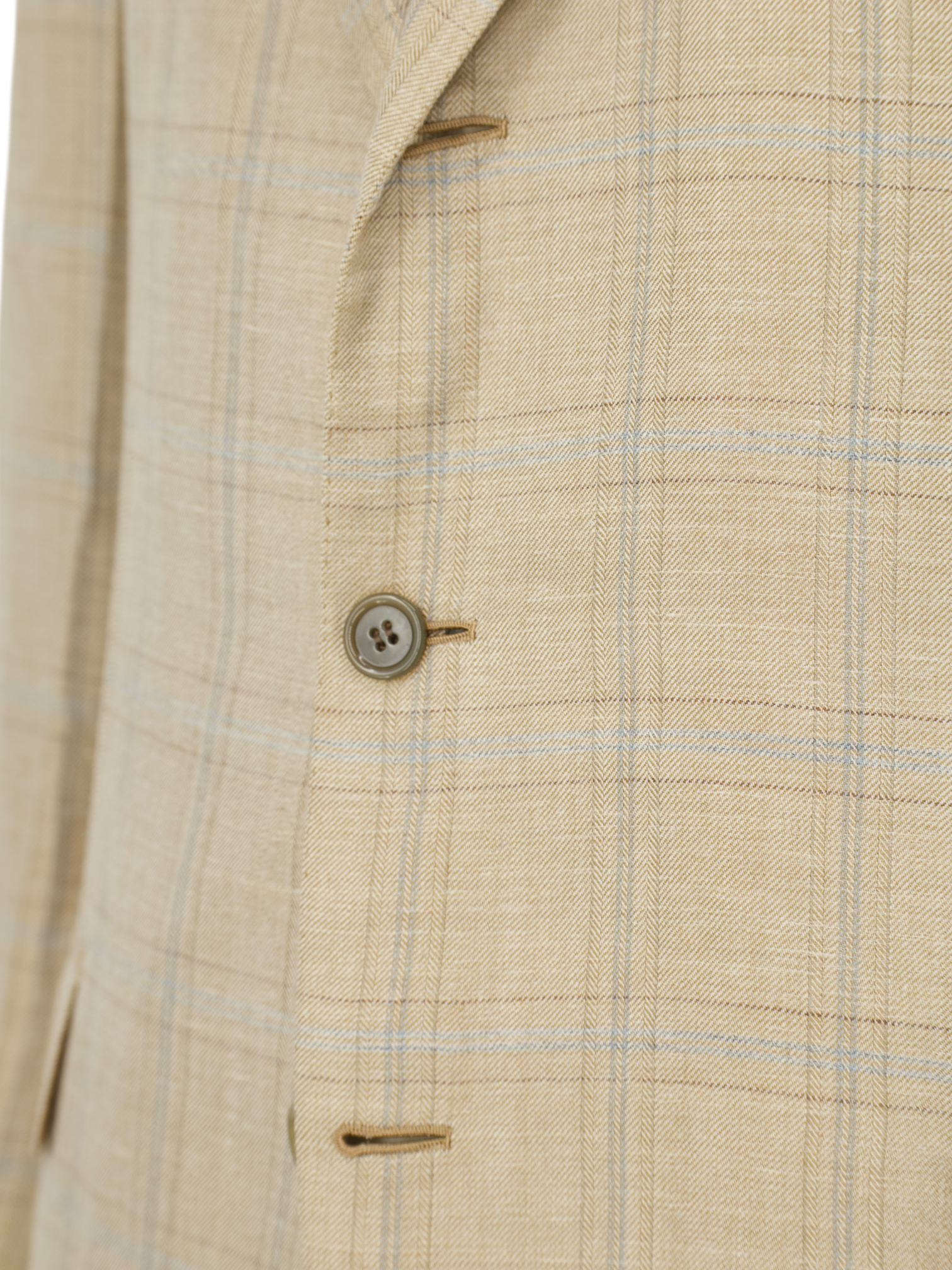 Brioni Beige Cashmere, Silk & Linen Windowpane Senato Jacket