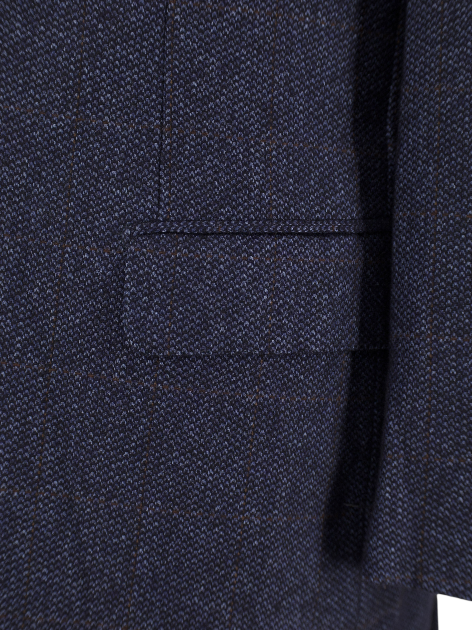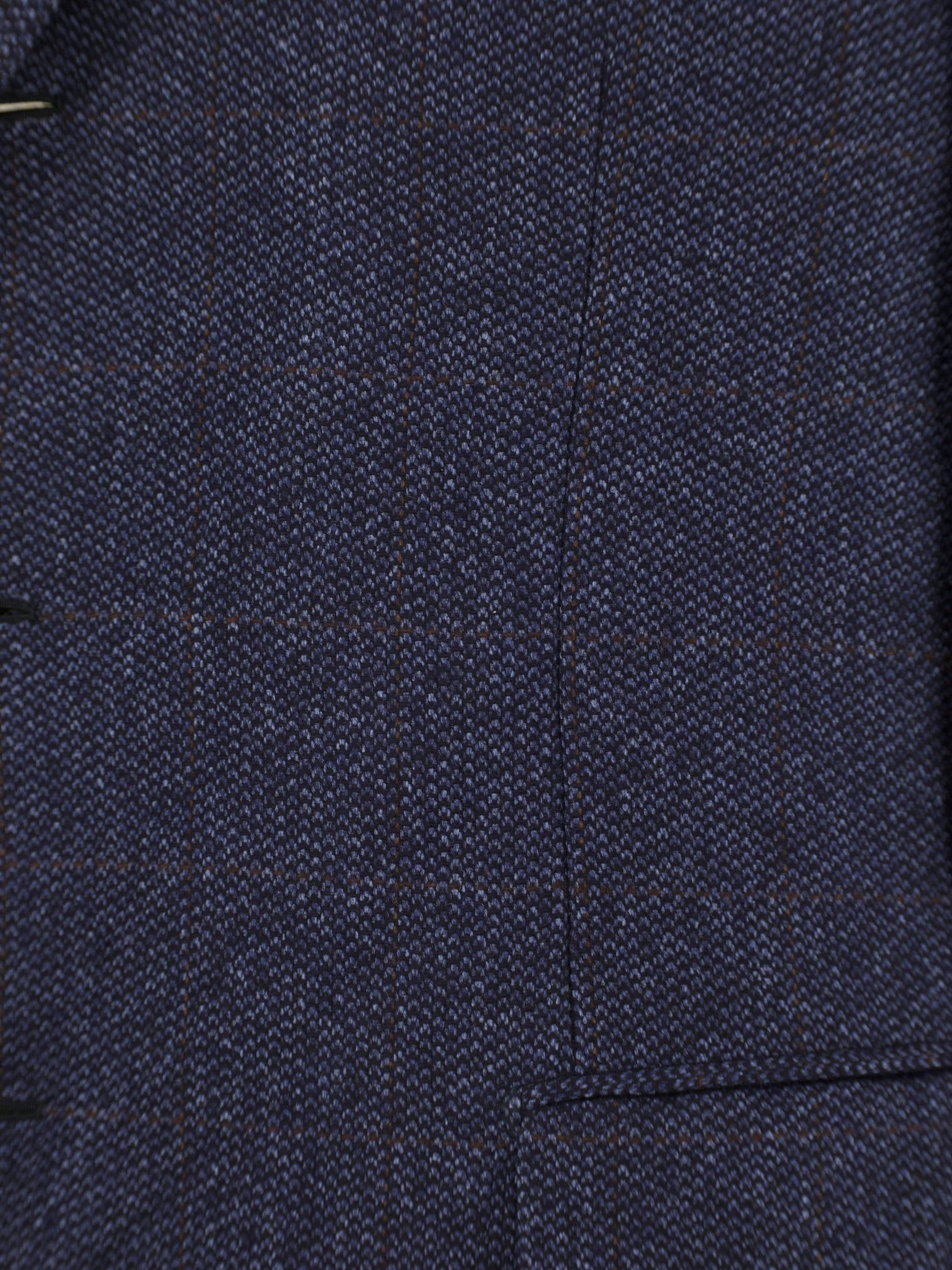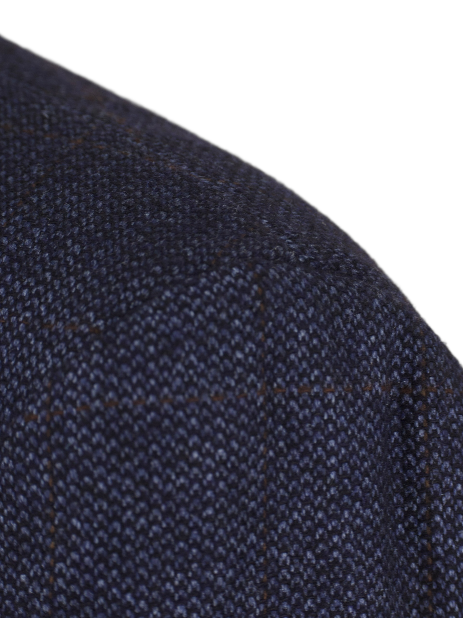 Discover the layered sophistication of this Brioni Senato jacket, tailored in a silk and cashmere blend woven in a rich blue and brown windowpane. The fabric is lightweight with a refined texture, offering a soft drape and a gentle sheen that catches the light without overwhelming. The windowpane check adds structure and visual rhythm, making this an elegant yet quietly expressive choice. Classic details include notch lapels, flap pockets, horn buttons and a full lining for a polished finish.