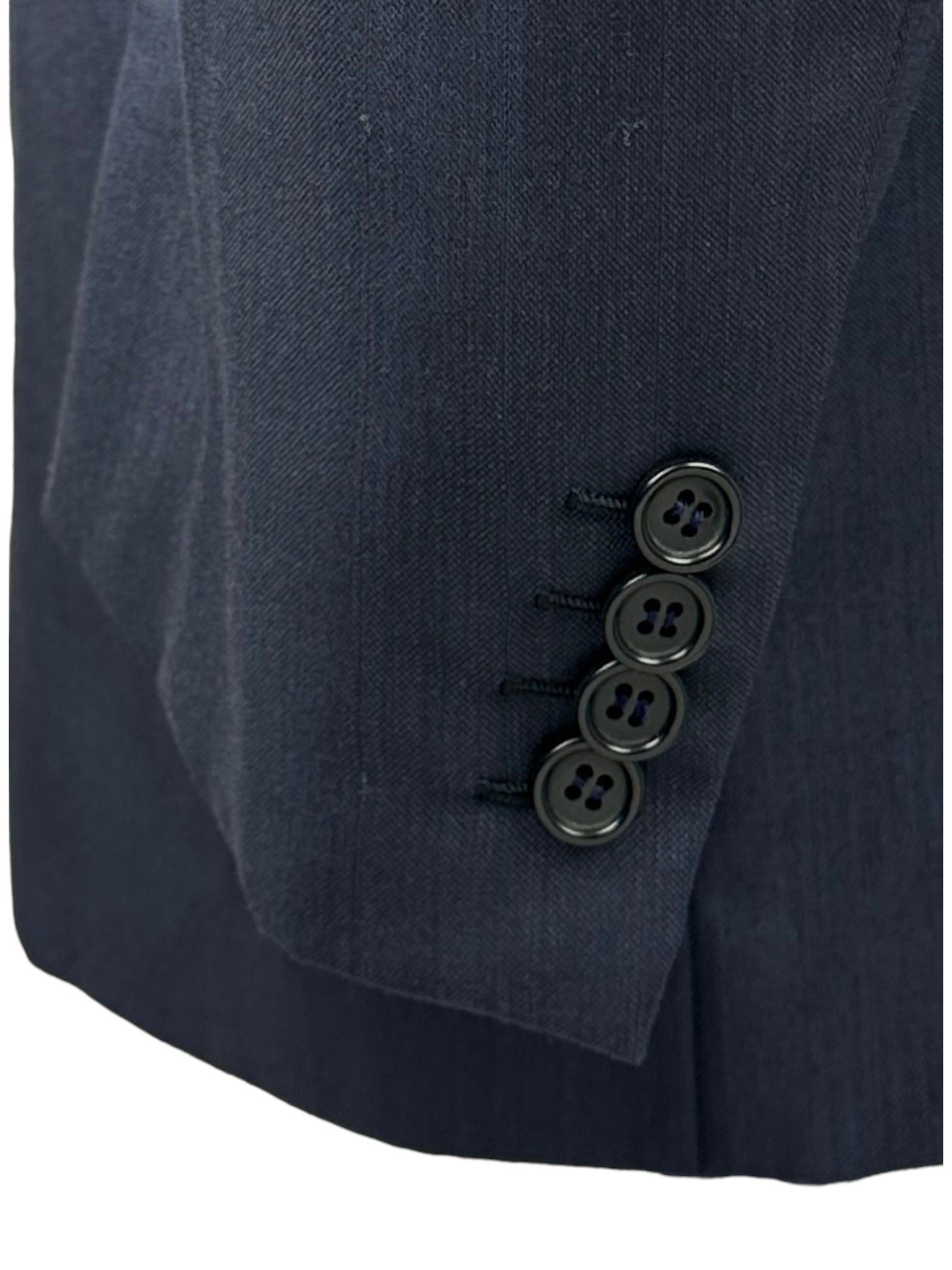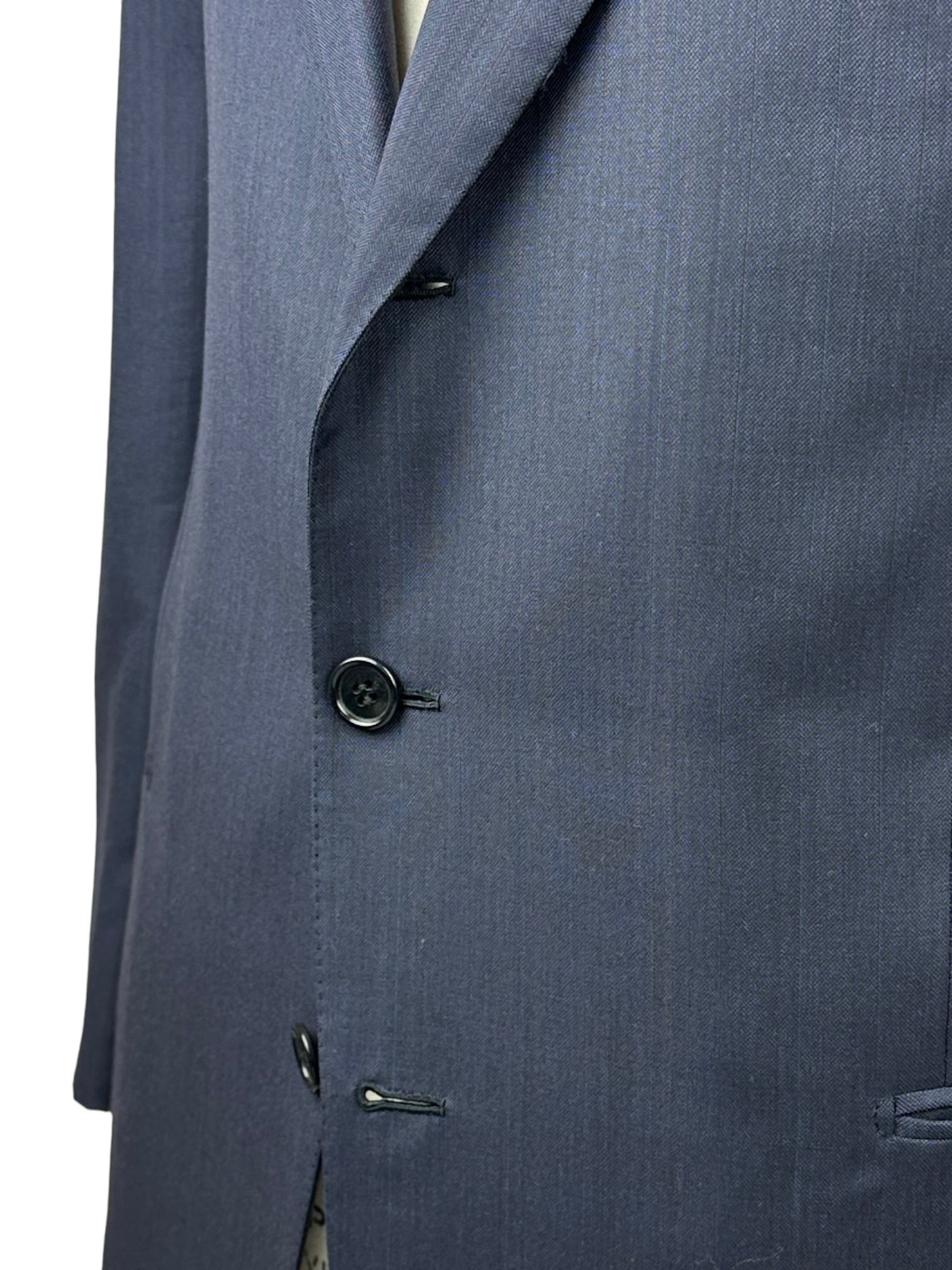 De 'tre bottoni stirato a due', ook bekend als de drie rollend op twee reversstijl, is misschien wel het meest beruchte kenmerk van het Neapolitaanse stijl jasje. De bovenste knoop en knoopsgat zijn decoratief, dus blijven ongeknoopt. Terwijl de revers omlaag rolt, vouwt het elegant over de bovenste knoop en stopt net 4 cm boven de tweede knoop, wat de kenmerkende rol van de revers creëert waar de stijl om bekend staat. Omdat het bedoeld is om ongeknoopt te blijven, wordt het bovenste knoopsgat eigenlijk binnenstebuiten gemaakt, zodat de mooie kant nog steeds zichtbaar is.