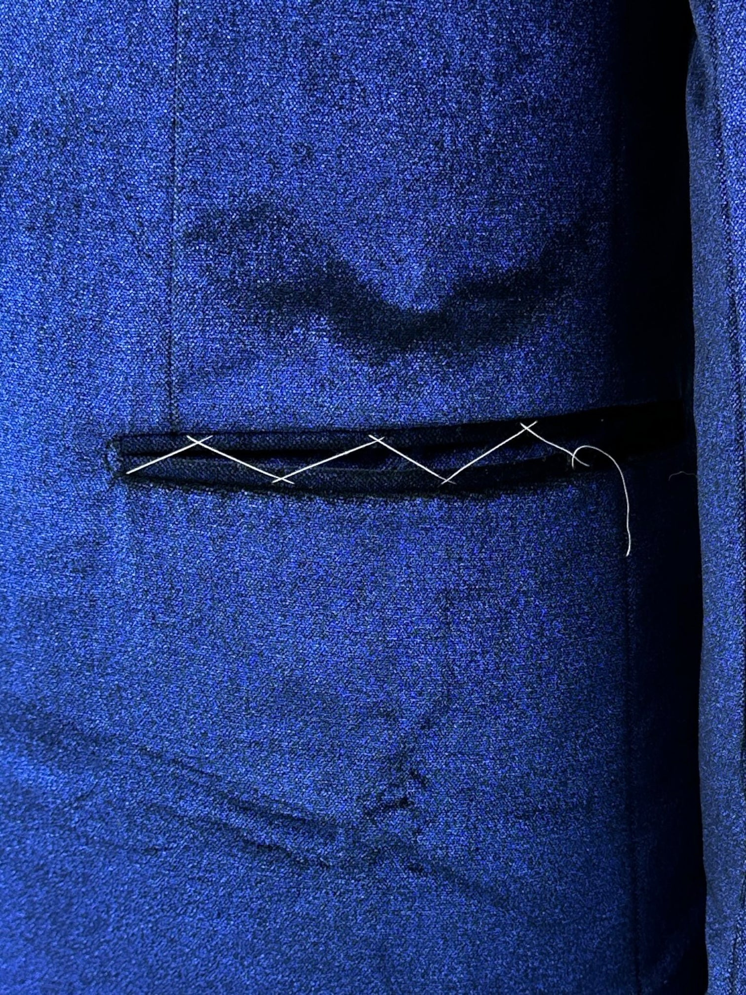De kleermaker voegt twee figuurnaden toe - denk aan ze als ingeknepen naden - om ervoor te zorgen dat het lichaam van het jasje een slank silhouet krijgt. Het proces, genaamd "mezzo punto riprese", wordt volledig met de hand uitgevoerd.