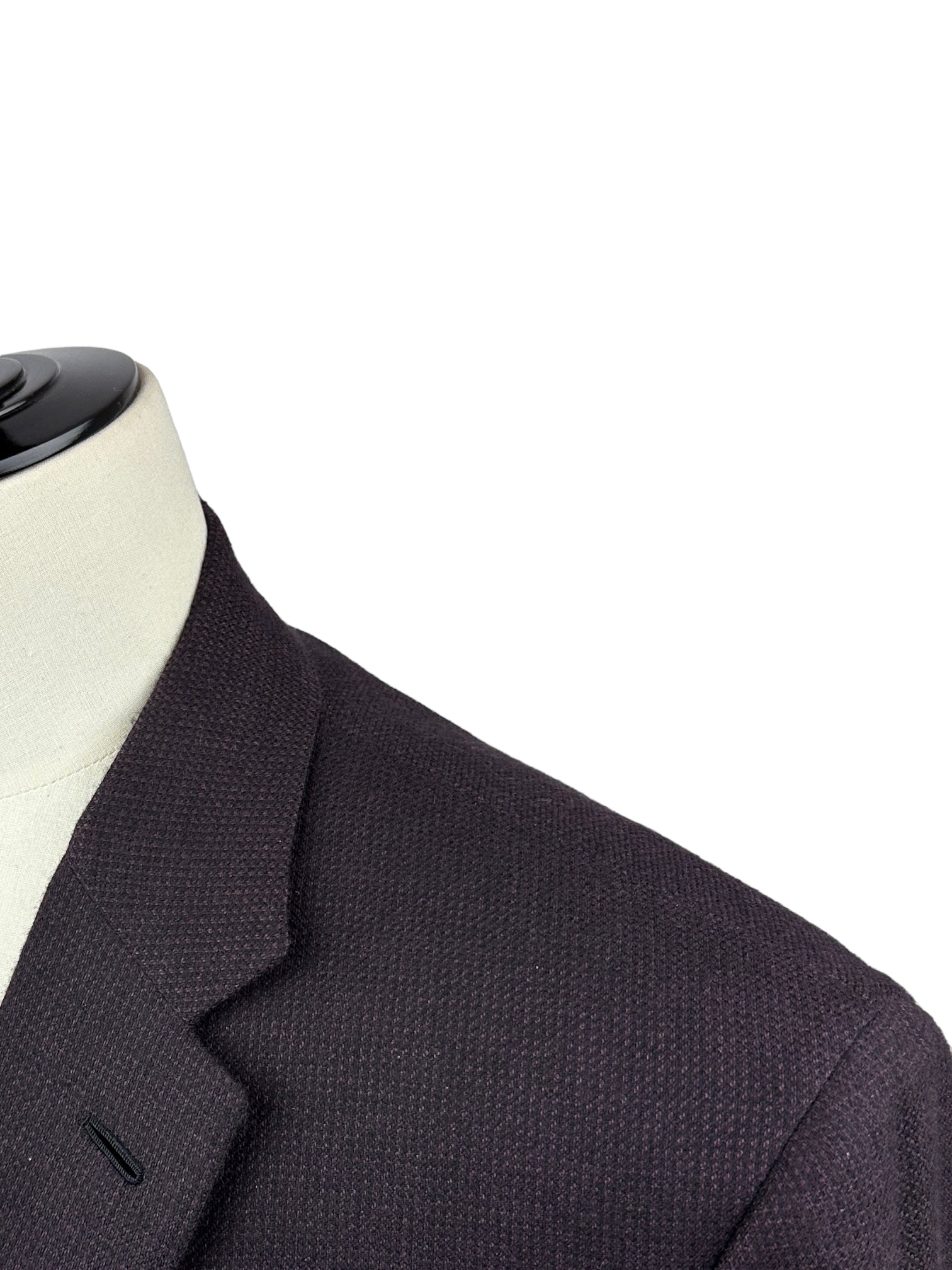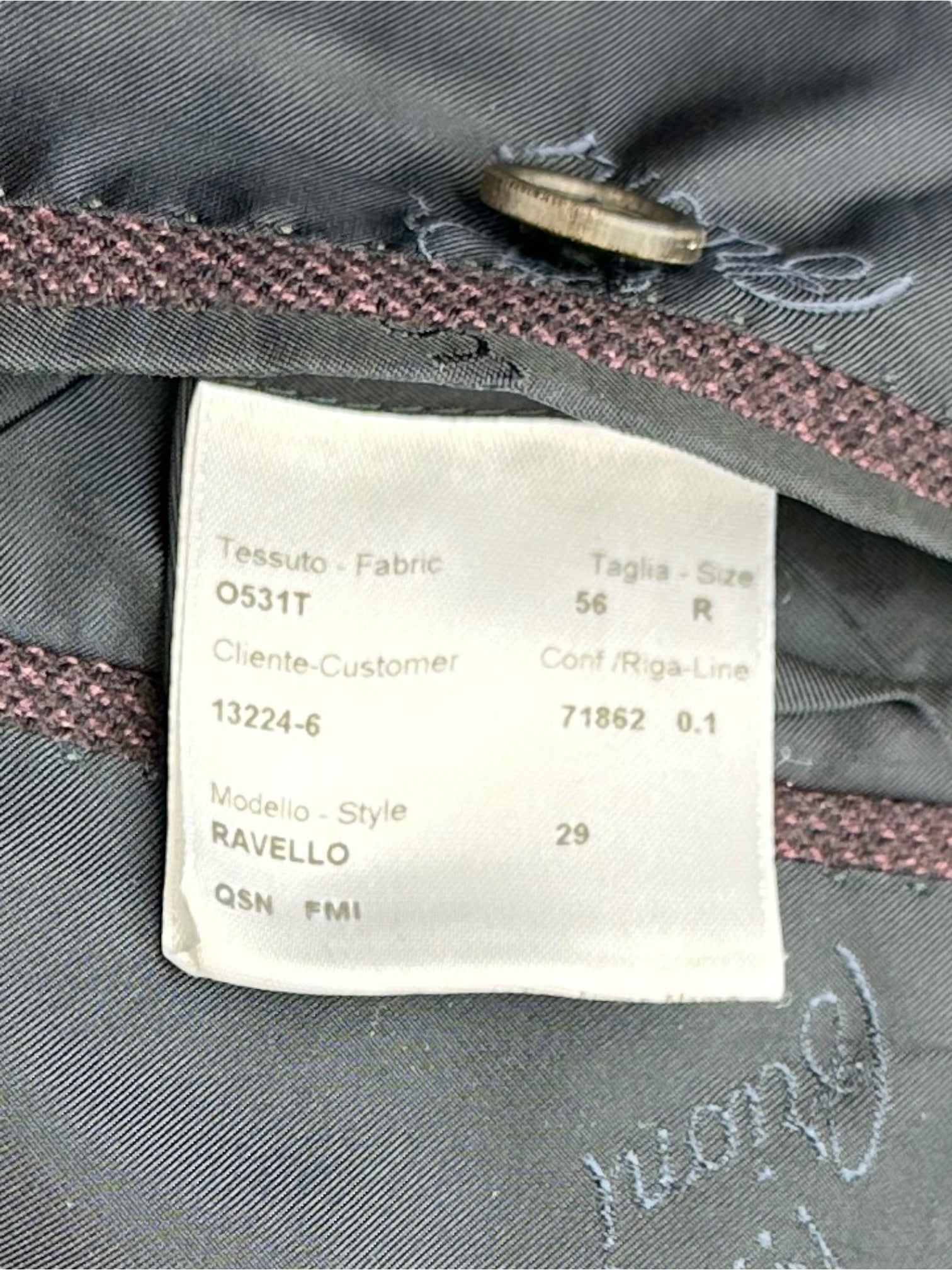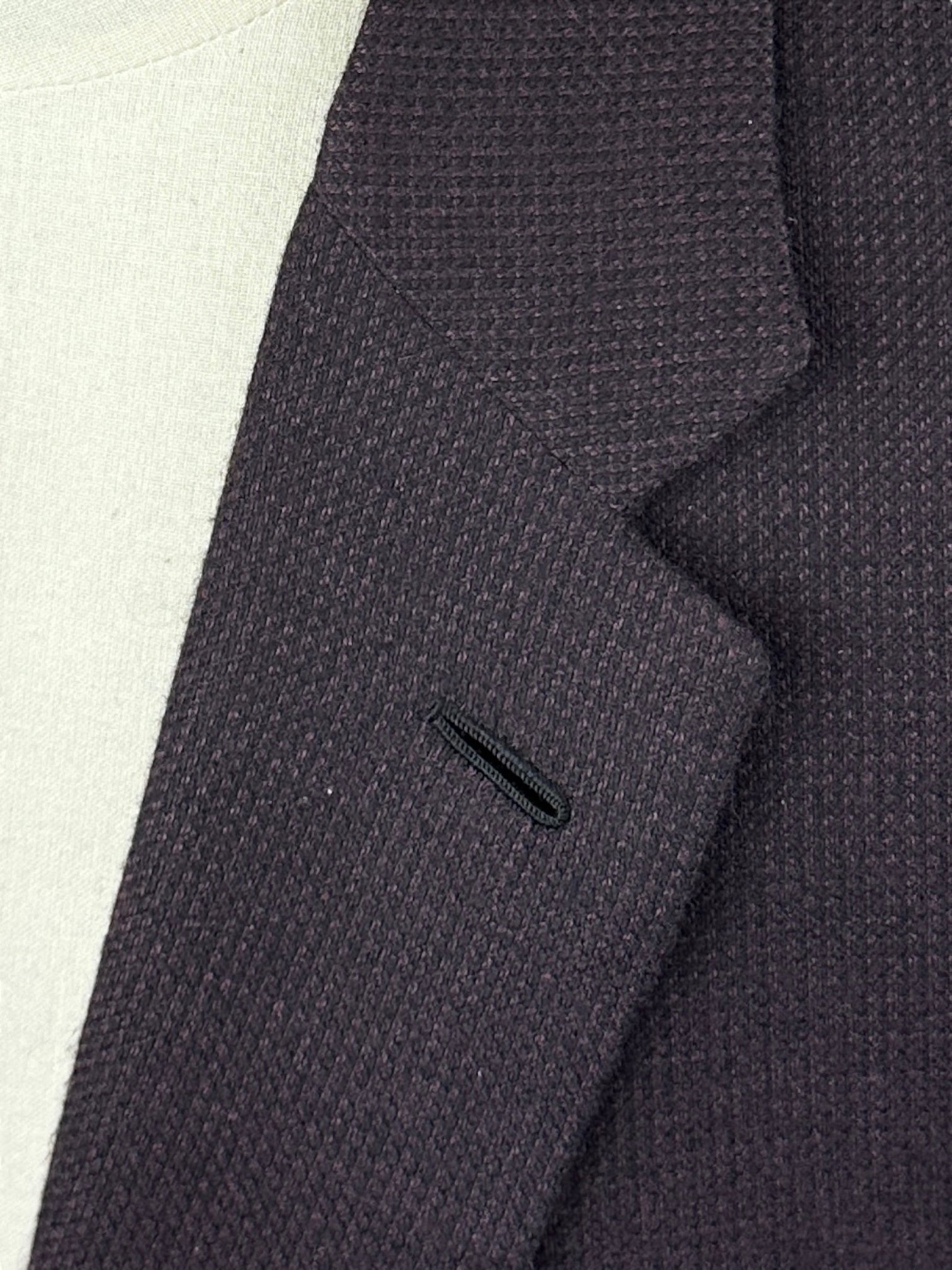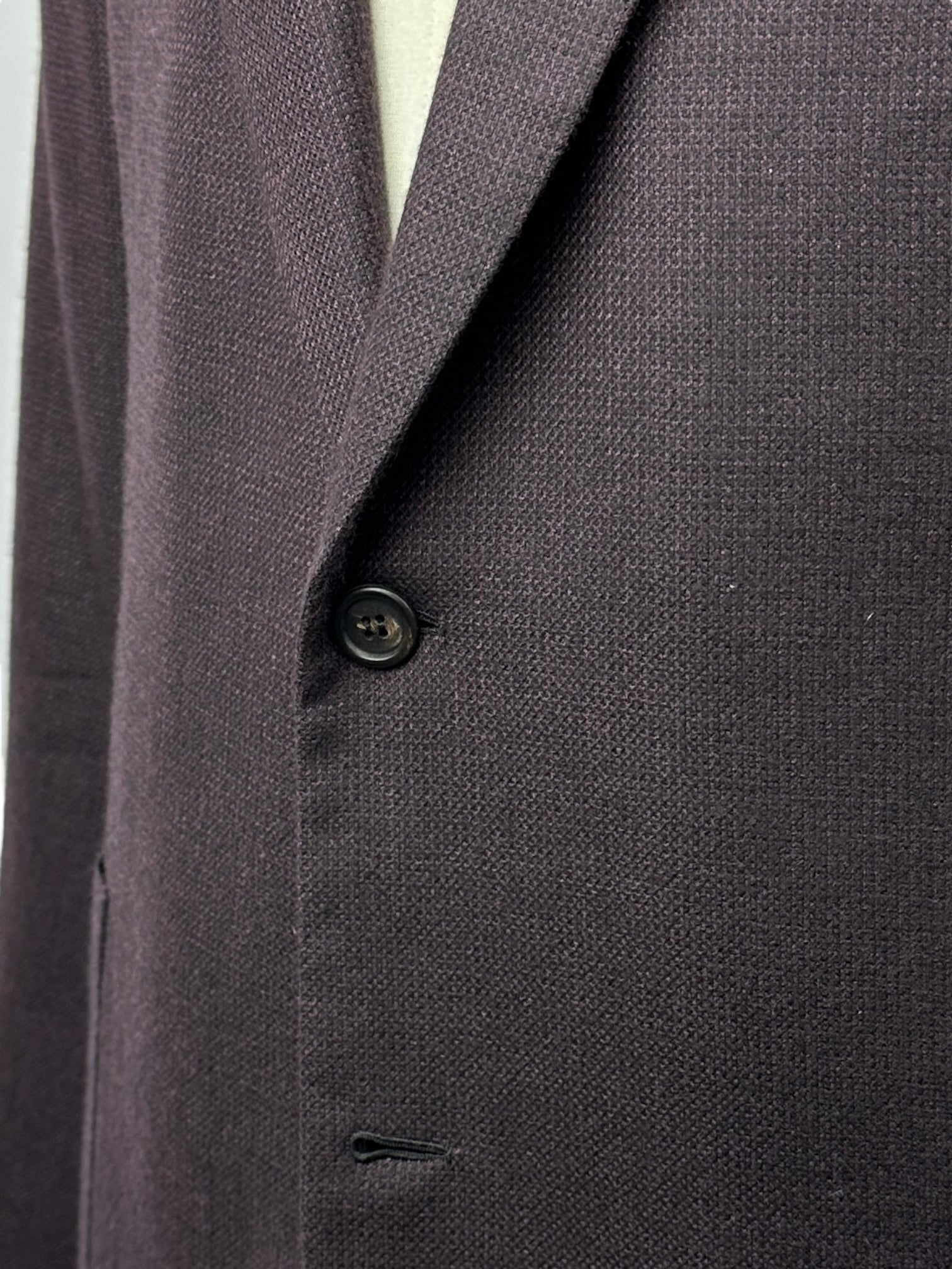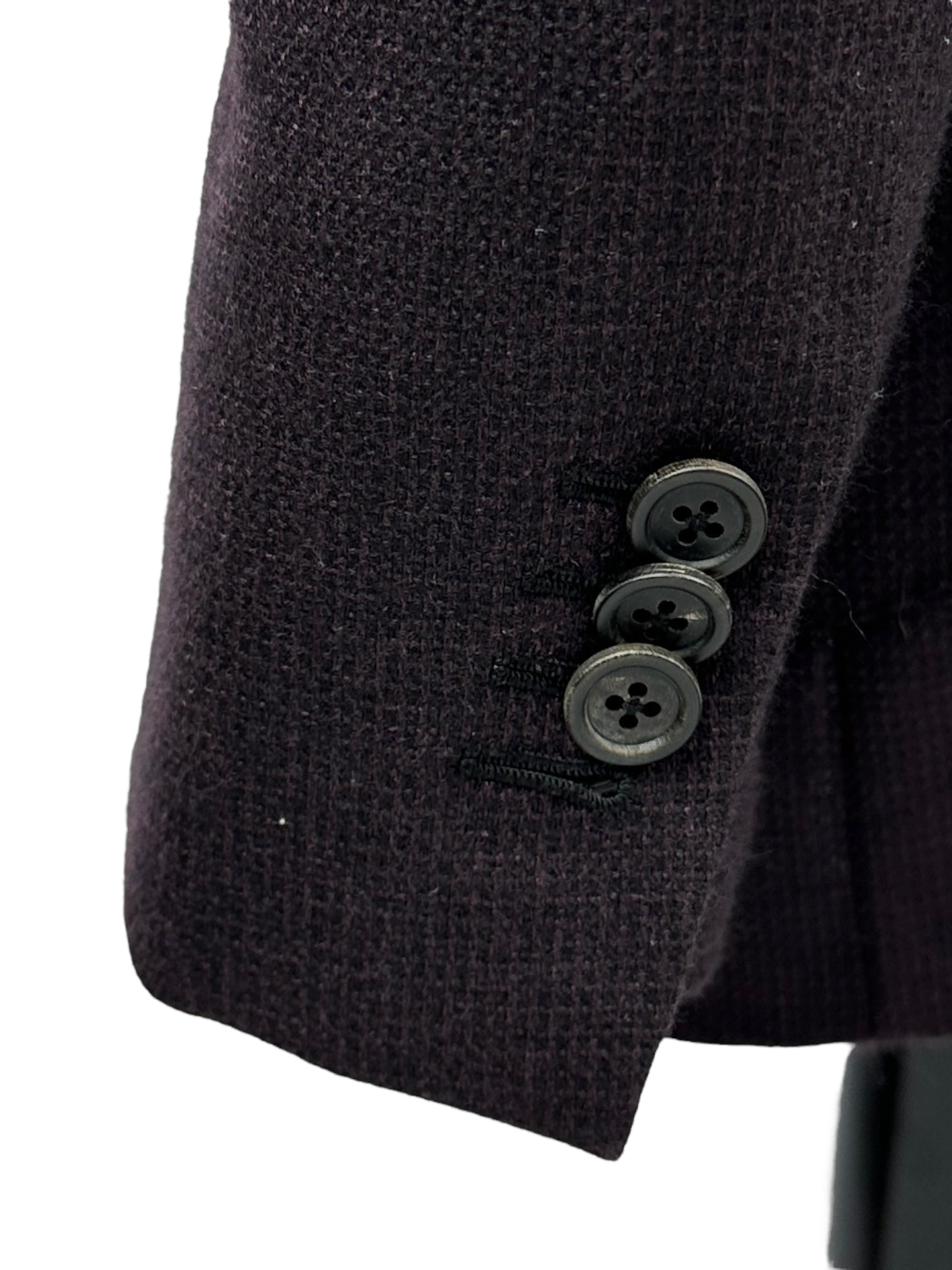 Bordeaux handgemaakte Brioni 'Ravello' blazer. Revers met inkeping, volledig gevoerd, vakkundig vervaardigd uit zacht, luxueus kasjmier met dubbele zijsplitten aan de achterkant en sluiting met twee knopen om het profiel netjes te houden. De ingekeepte revers en de paspelzak op de borst zijn onmiskenbaar klassiek. Ontdek hieronder de uitgebreide kleermakersdetails.