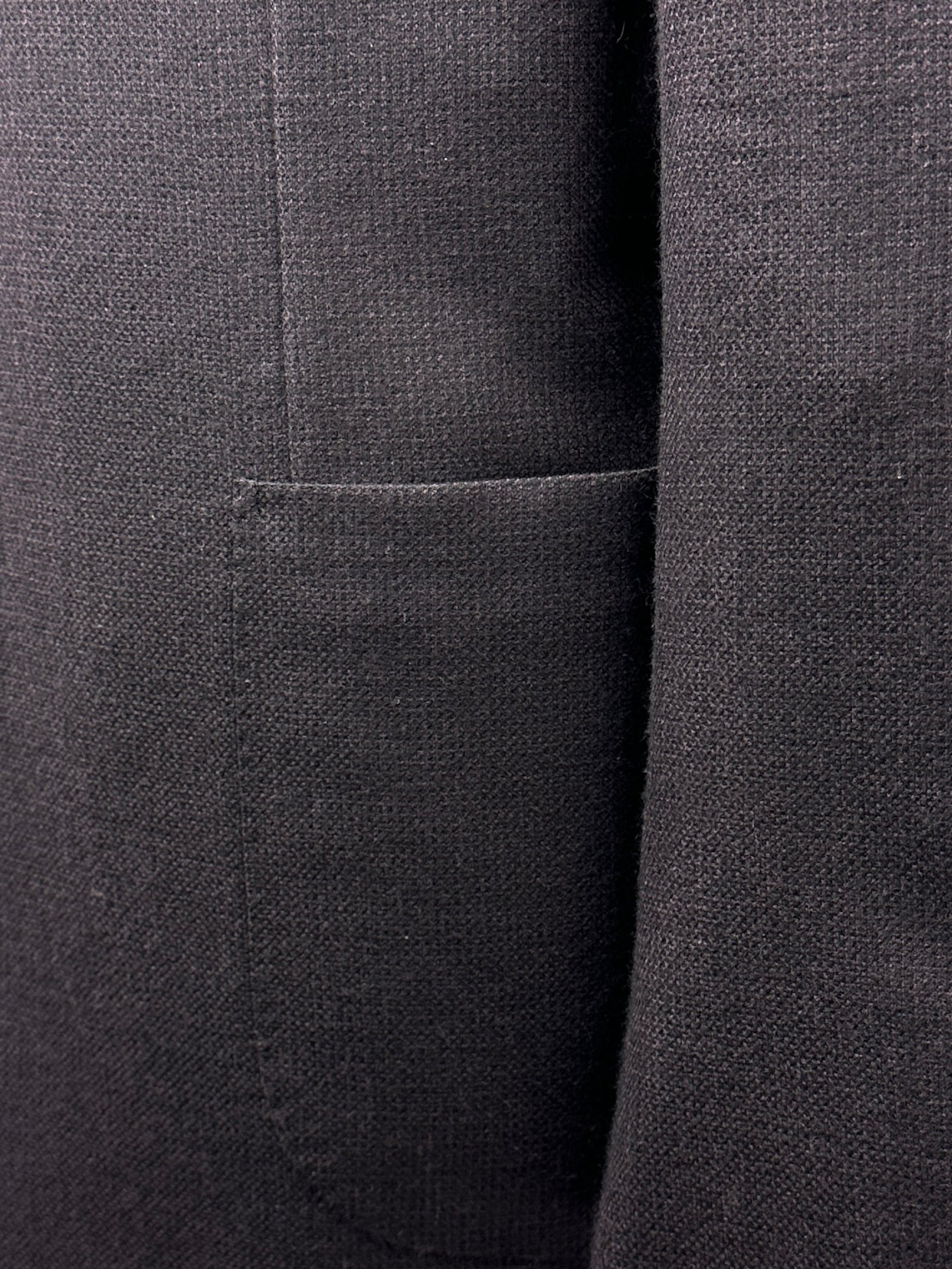 Ook bekend als 'barchetta', Italiaans voor 'bootje', wordt het zo genoemd omdat deze zak zweeft op de borst, lichtjes schuin omhoog, net als de boeg van een zeilboot. Deze zakken echoën de levendige rol van een revers die de veerkracht van canvas en natuurlijke wol draagt, in tegenstelling tot machinaal gemaakte borstzakken die een meer platte, rechthoekige vorm hebben en minder leven.