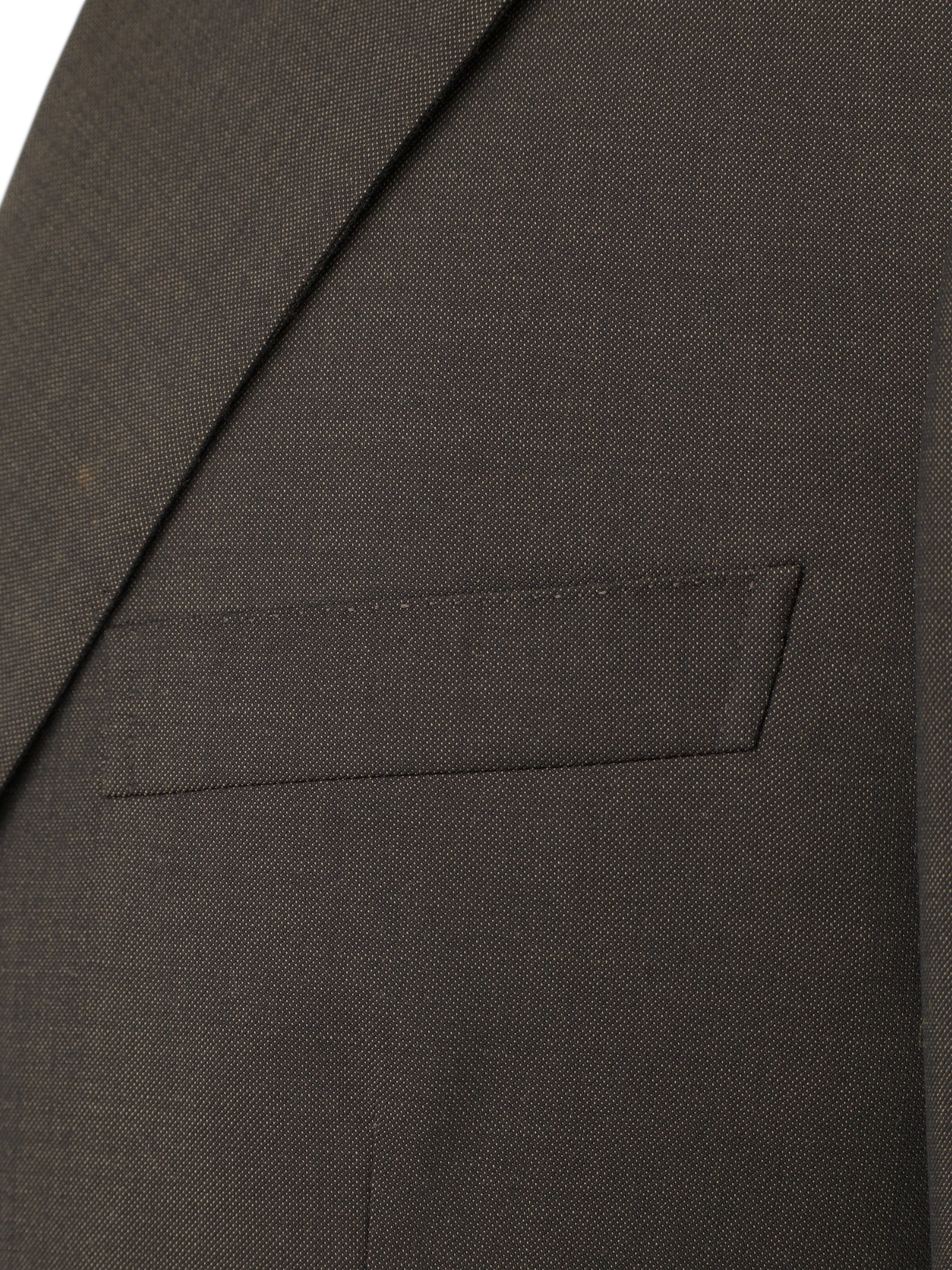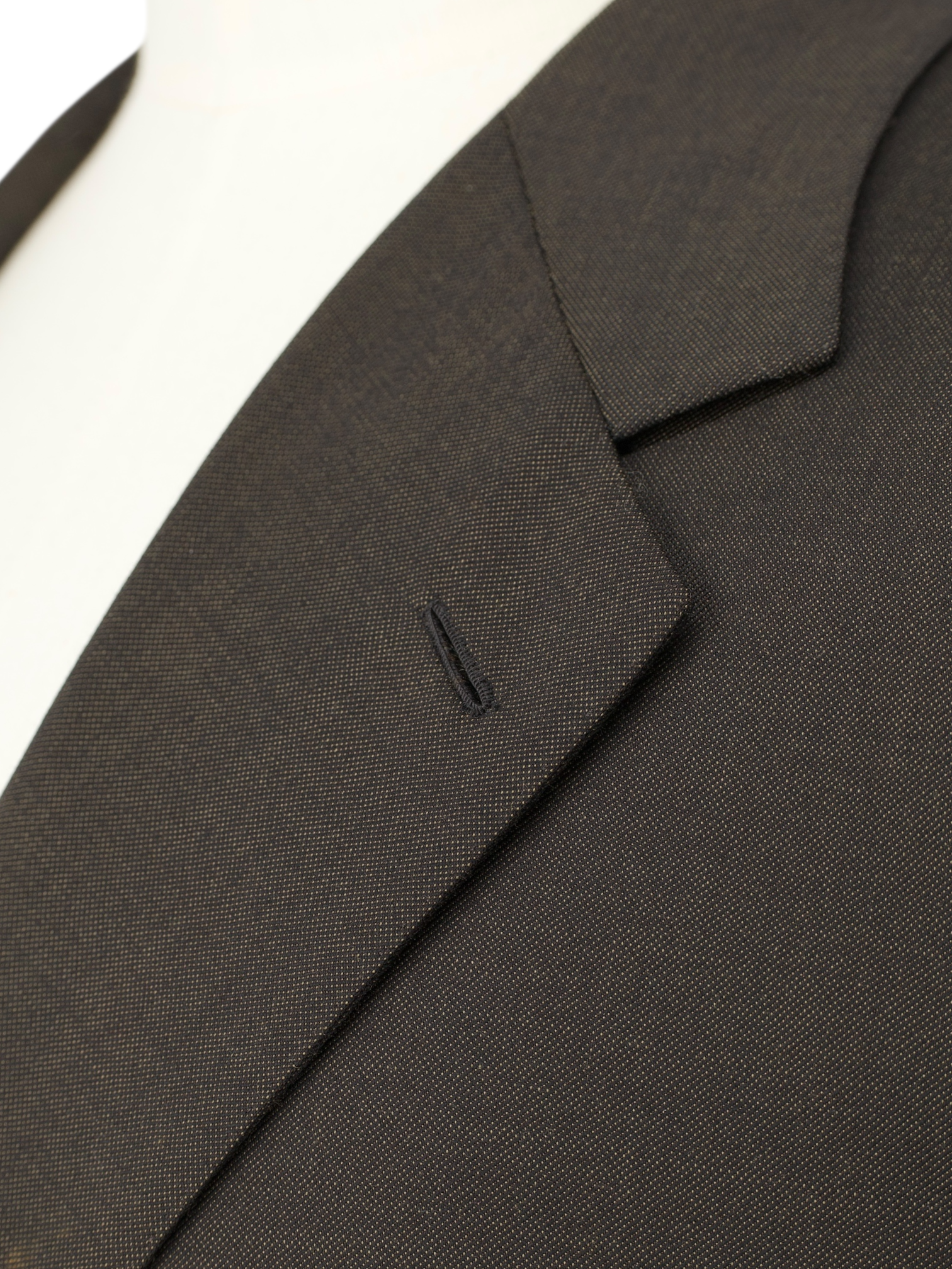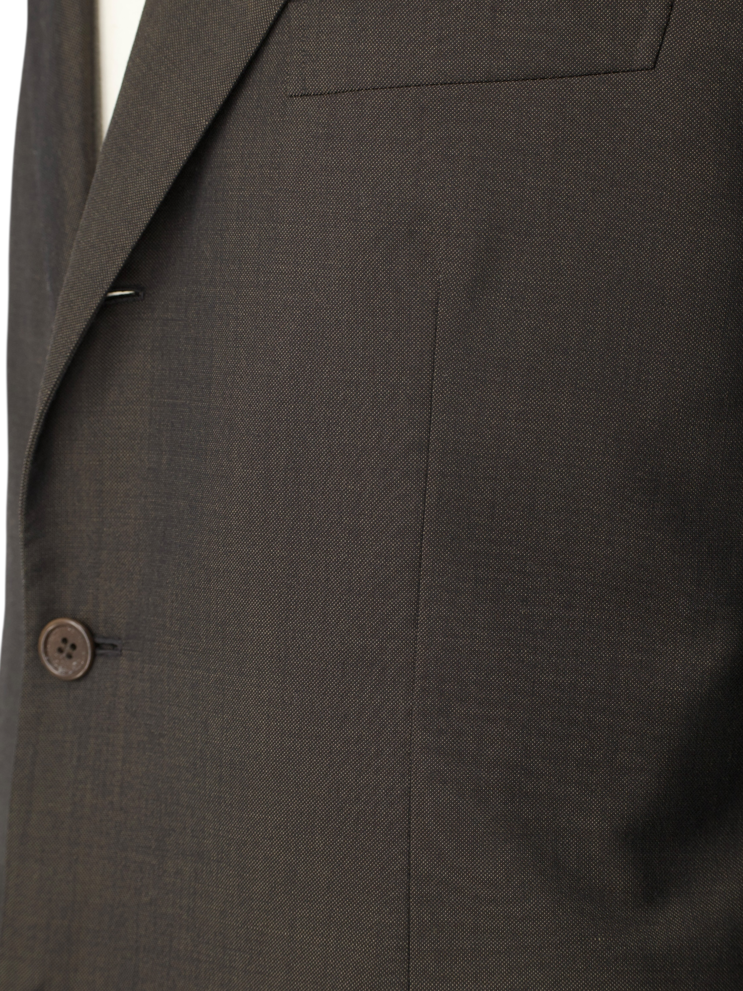 Discover the quiet individuality of this Brioni Senato suit, tailored from fine wool in a deep, dark brown tone with a subtle green undertone that reveals itself in natural light. The pinpoint weave lends the fabric a refined texture and slight sheen, giving the suit depth and dimension without overt pattern. Notch lapels, flap pockets, horn buttons and a fully lined interior complete the jacket with timeless Brioni detailing and precision.