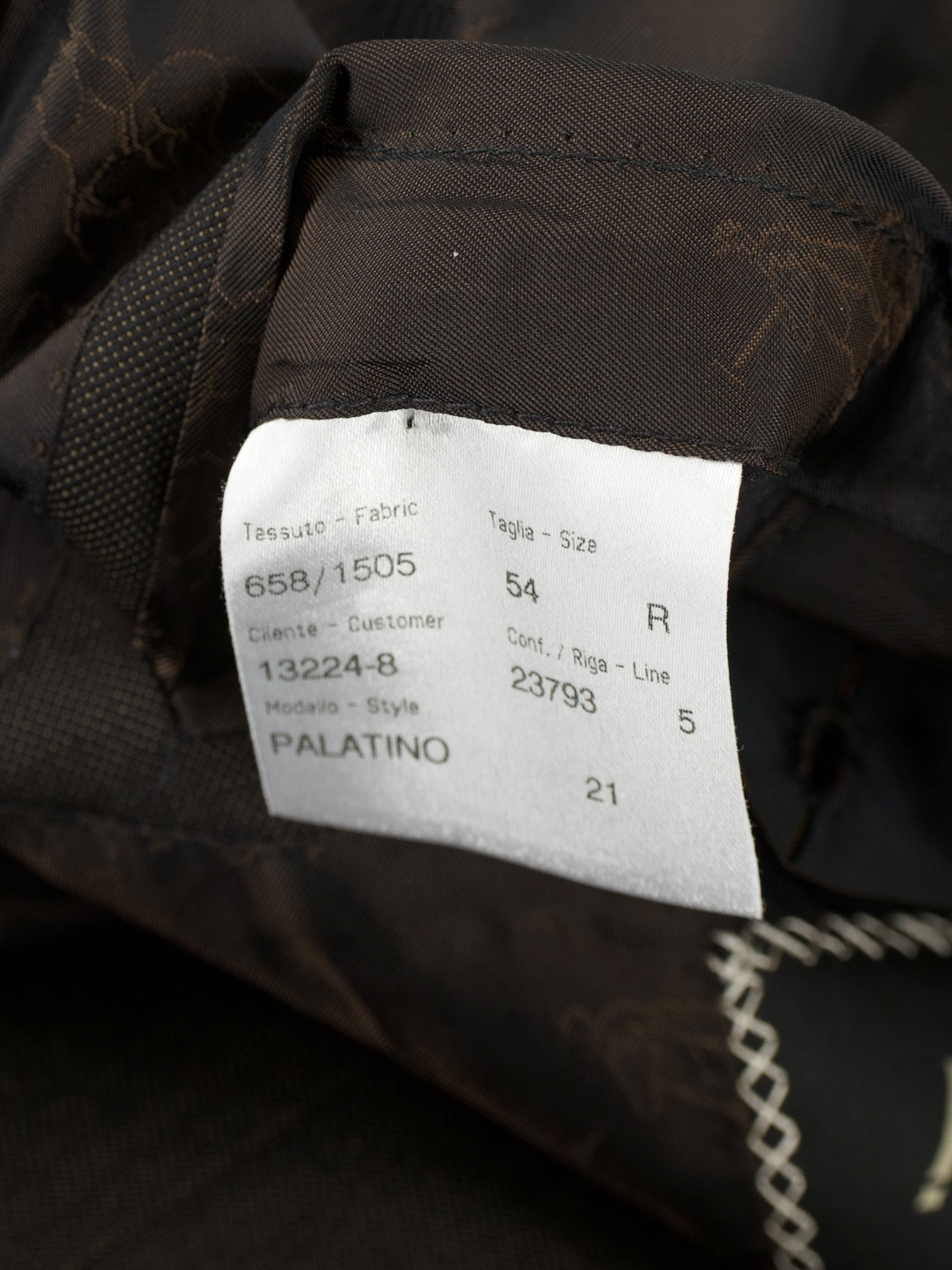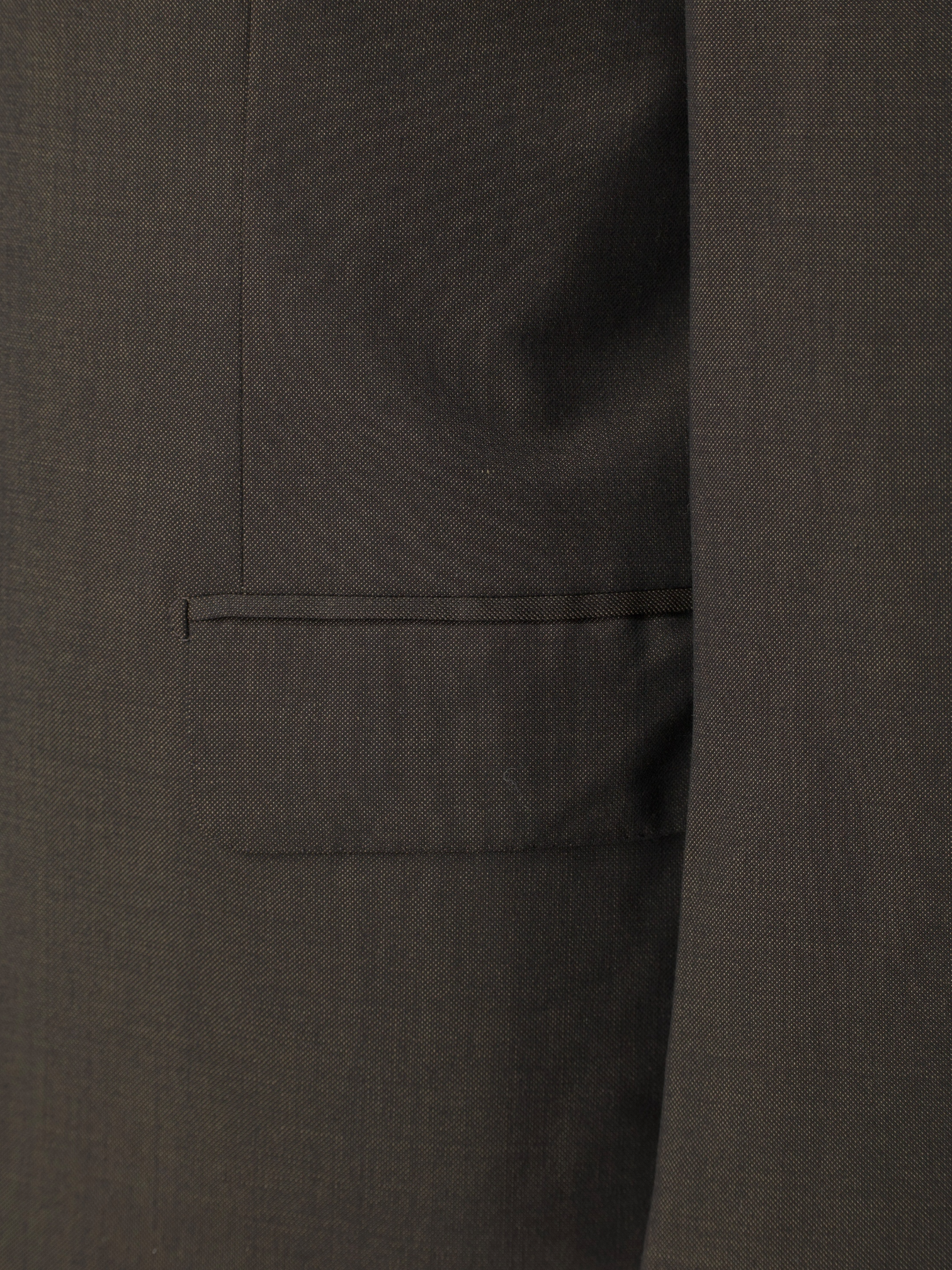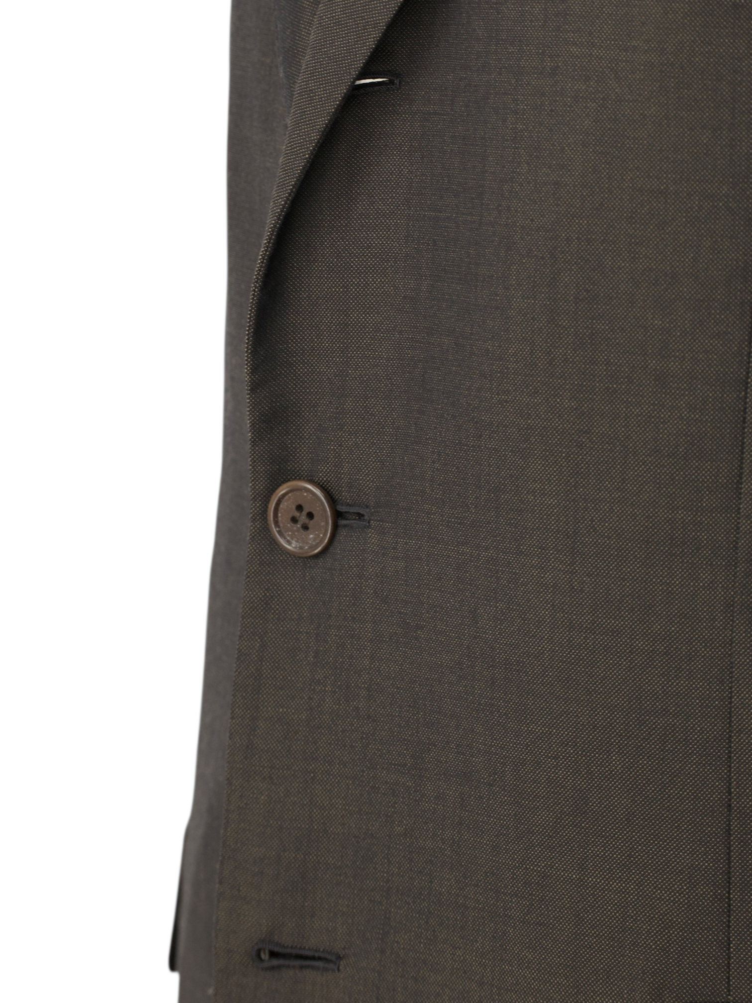 Discover the quiet individuality of this Brioni Senato suit, tailored from fine wool in a deep, dark brown tone with a subtle green undertone that reveals itself in natural light. The pinpoint weave lends the fabric a refined texture and slight sheen, giving the suit depth and dimension without overt pattern. Notch lapels, flap pockets, horn buttons and a fully lined interior complete the jacket with timeless Brioni detailing and precision.