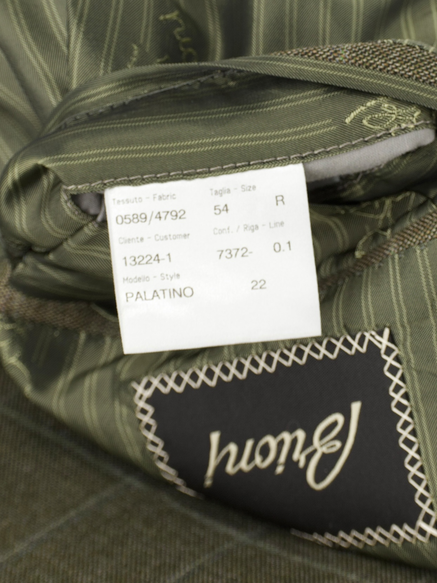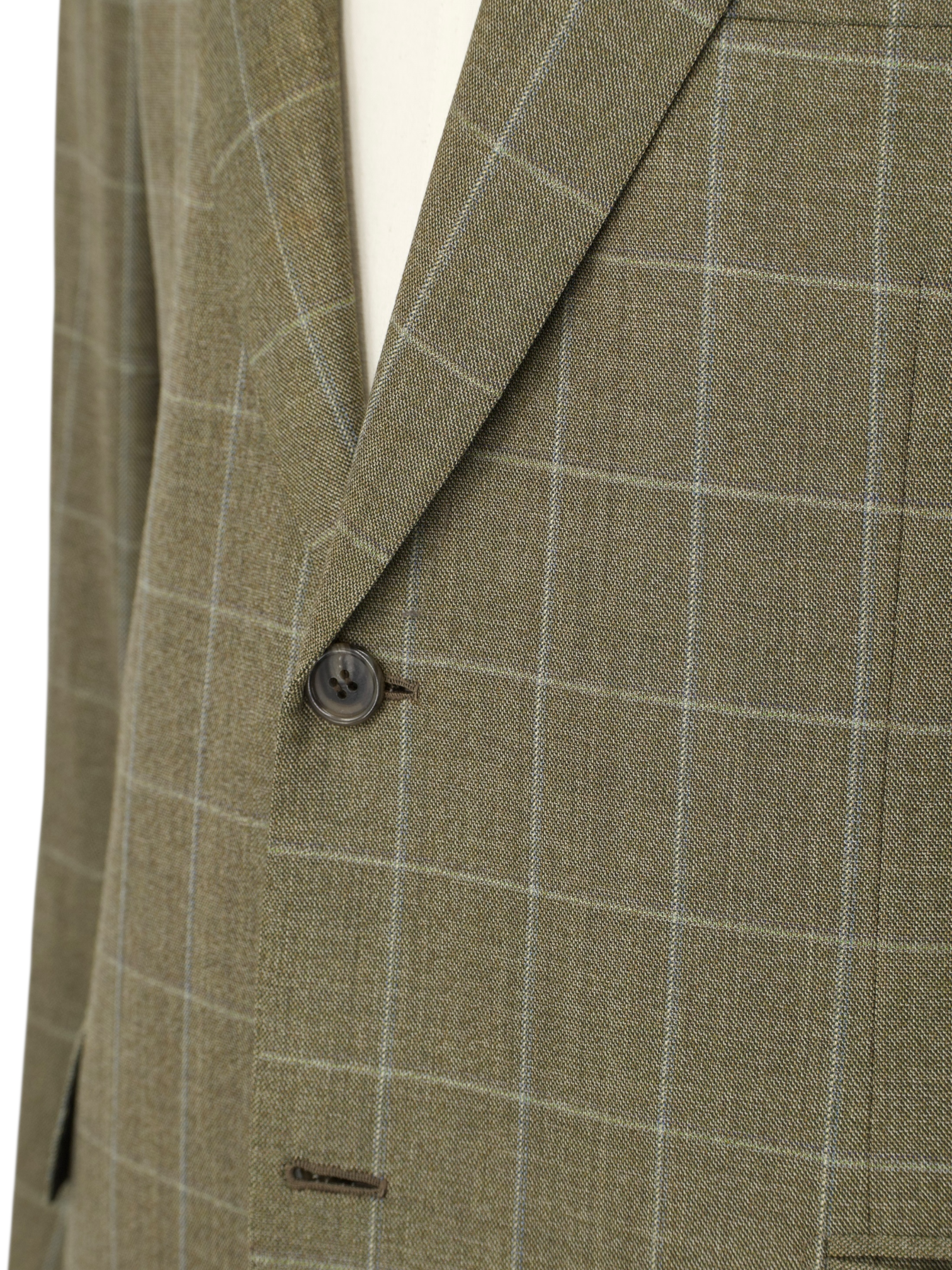 Discover the refined ease of this Brioni Palatino jacket, tailored from fine wool in a distinctive moss green with a subtle light blue windowpane. The fabric is lightweight and smooth, offering a clean drape and soft hand that makes it a versatile option across seasons. The windowpane adds a measured layer of visual interest, balancing classic structure with a discreet touch of colour. Finished with notch lapels, flap pockets, horn buttons and a full lining, it embodies Brioni’s understated approach to tailored elegance.