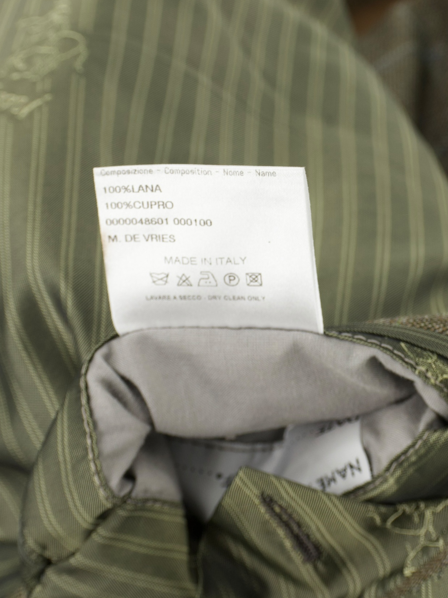 Een kleermakersjasje - of jas - heeft een tussenvoering nodig die helpt om het vorm te geven en te vormen. Canvas geeft het item een op maat gemaakte en ambachtelijke look. Kortom, het blaast leven in. Puur technisch, canvas is gemaakt van paardenhaar, wol, mohair of kamelenhaar. Het kan ook een mix van allemaal zijn, met verschillende diktes en gewichten. Het canvas wordt, vaak met de hand, aan het jasje gestikt, waardoor de stukken canvas 'zweven' in het midden van de binnen- en buitenstof. Dit geeft de jas extra flexibiliteit. Het canvas loopt van de bovenste delen helemaal door tot aan het uiteinde van de jas. Nadat je je canvaspak een tijdje hebt gedragen, begint het je vorm aan te nemen en er ongelooflijk natuurlijk uit te zien.