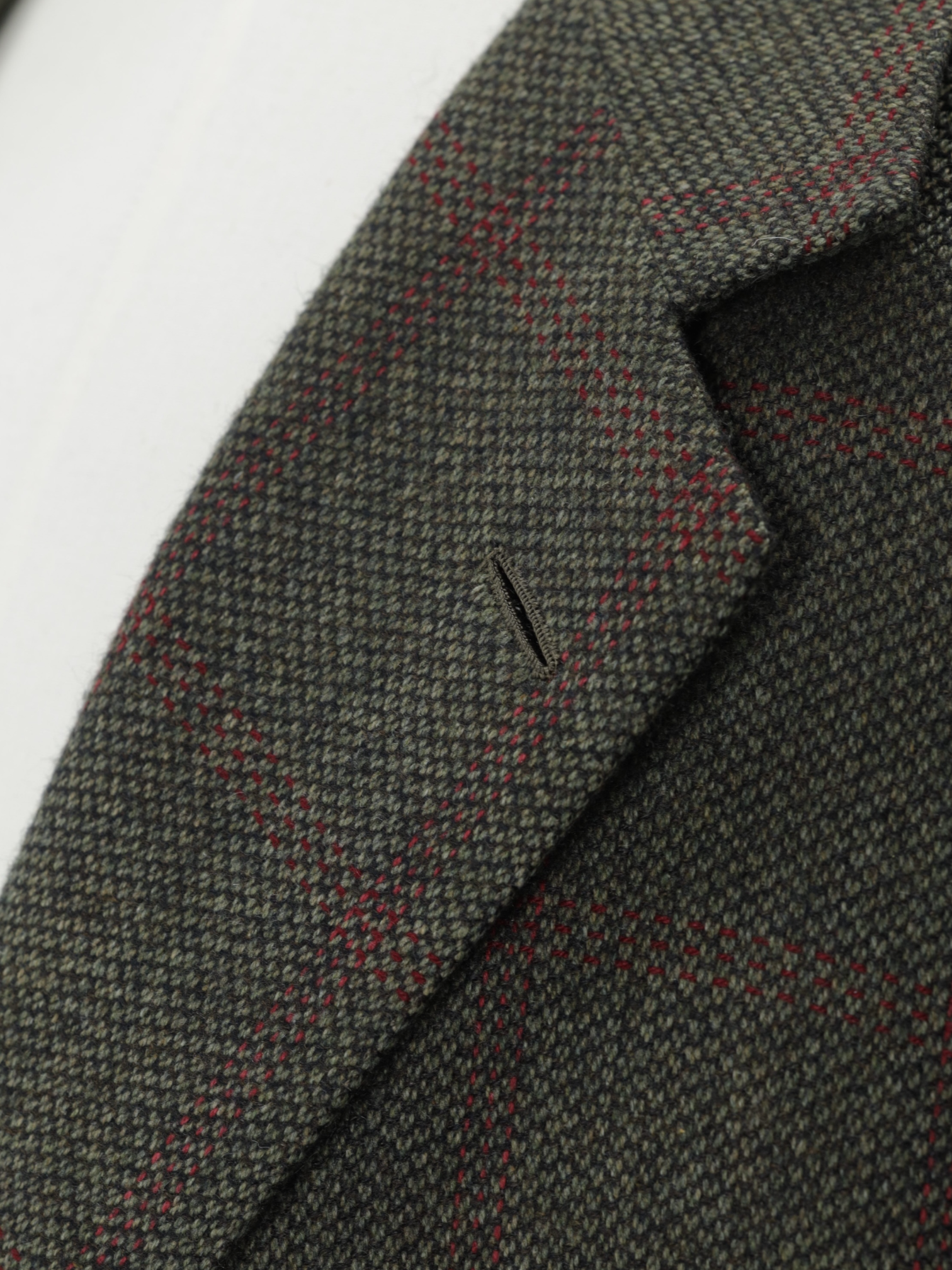 Brioni Olive Green & Red Pure Cashmere Windowpane Jacket