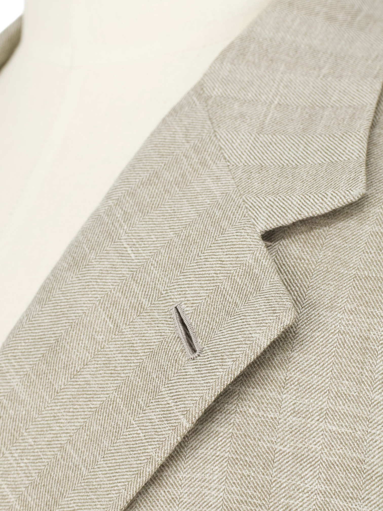 Brioni Taupe Cashmere, Silk & Linen Herringbone Palatino Jacket