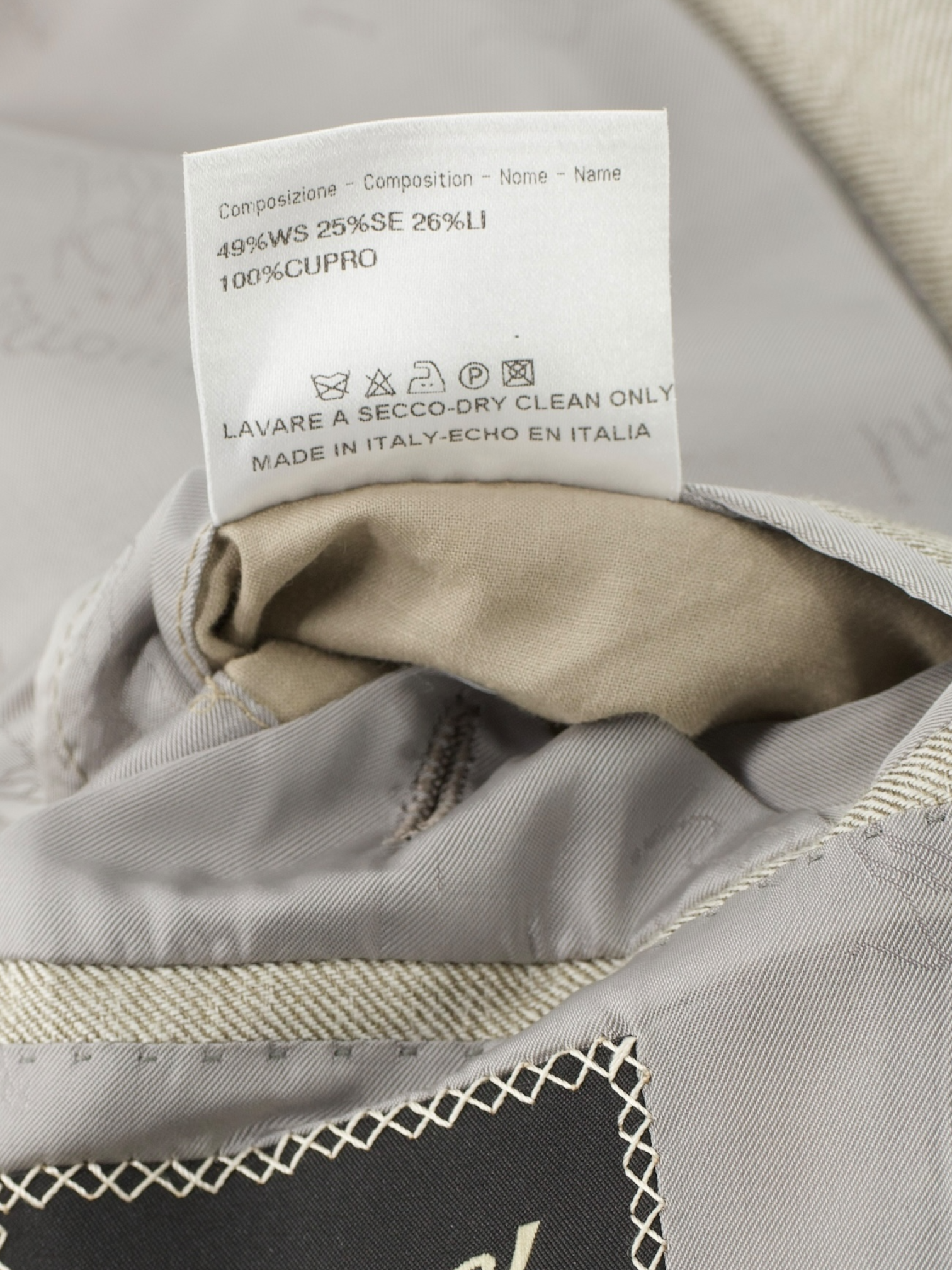 Een kleermakersjasje - of jas - heeft een tussenvoering nodig die helpt om het vorm te geven en te vormen. Canvas geeft het item een op maat gemaakte en ambachtelijke look. Kortom, het blaast leven in. Puur technisch, canvas is gemaakt van paardenhaar, wol, mohair of kamelenhaar. Het kan ook een mix van allemaal zijn, met verschillende diktes en gewichten. Het canvas wordt, vaak met de hand, aan het jasje gestikt, waardoor de stukken canvas 'zweven' in het midden van de binnen- en buitenstof. Dit geeft de jas extra flexibiliteit. Het canvas loopt van de bovenste delen helemaal door tot aan het uiteinde van de jas. Nadat je je canvaspak een tijdje hebt gedragen, begint het je vorm aan te nemen en er ongelooflijk natuurlijk uit te zien.