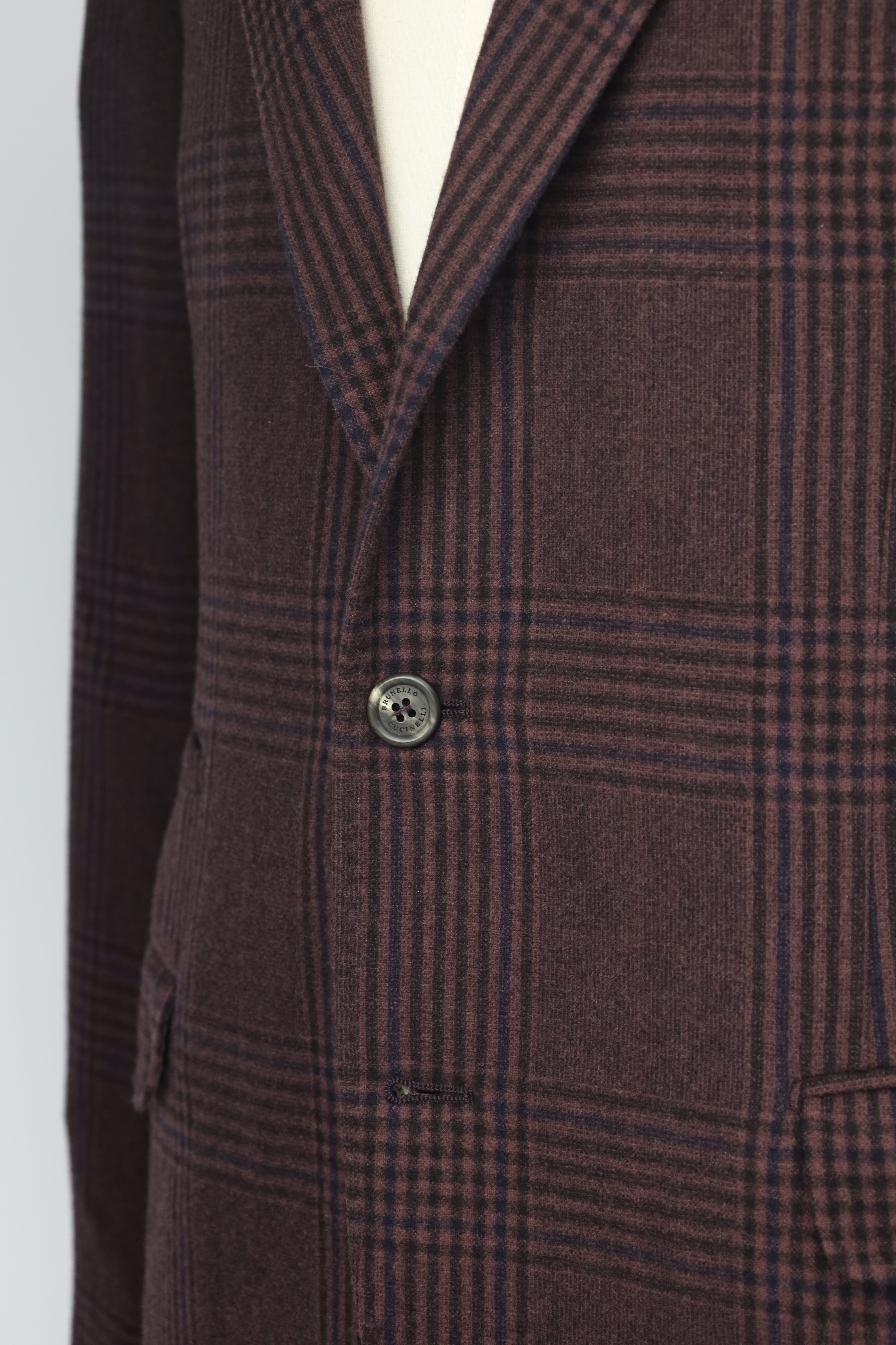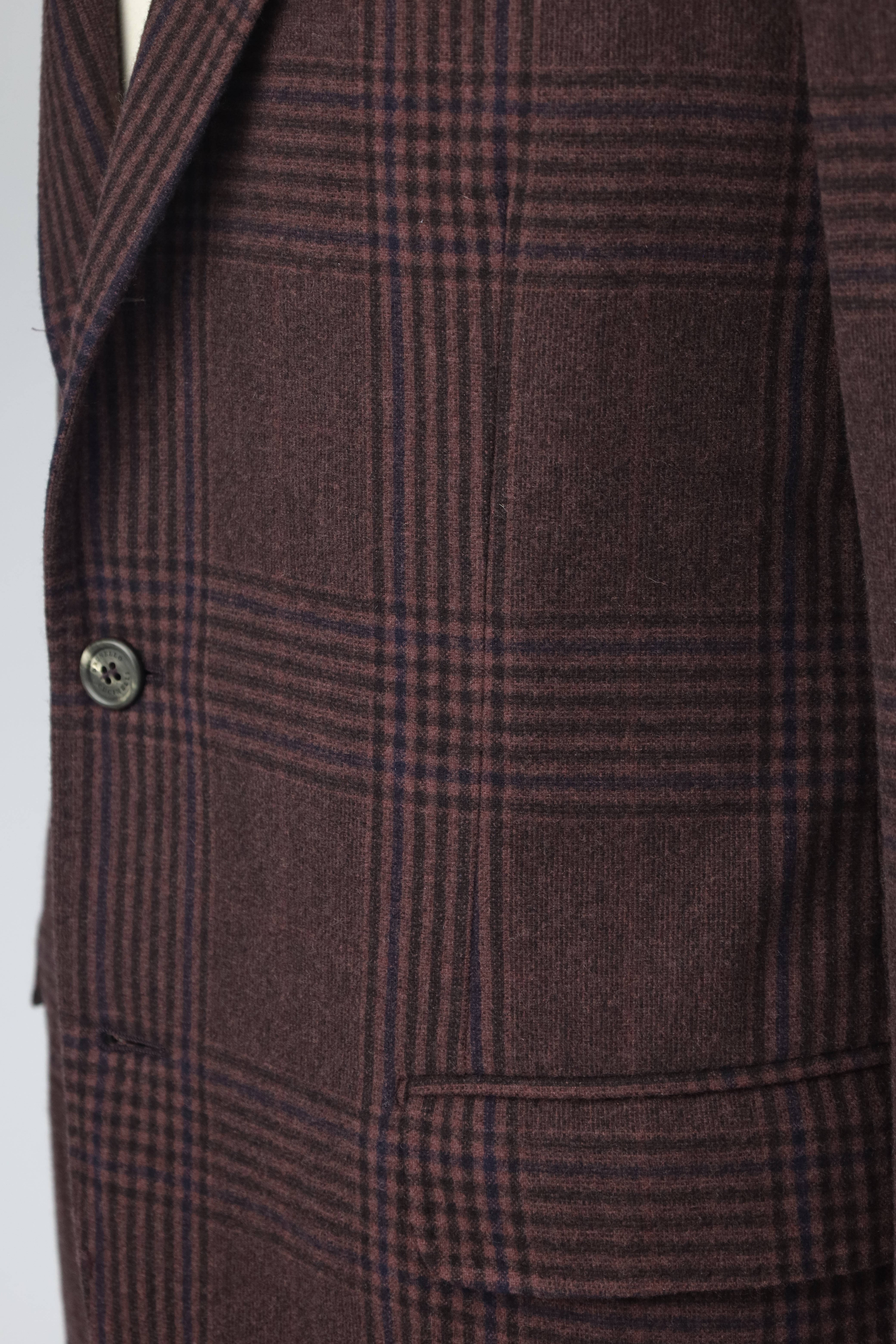 Brunello Cucinelli Castagne Bruin Wol en Kasjmier Glenplaid Jasje