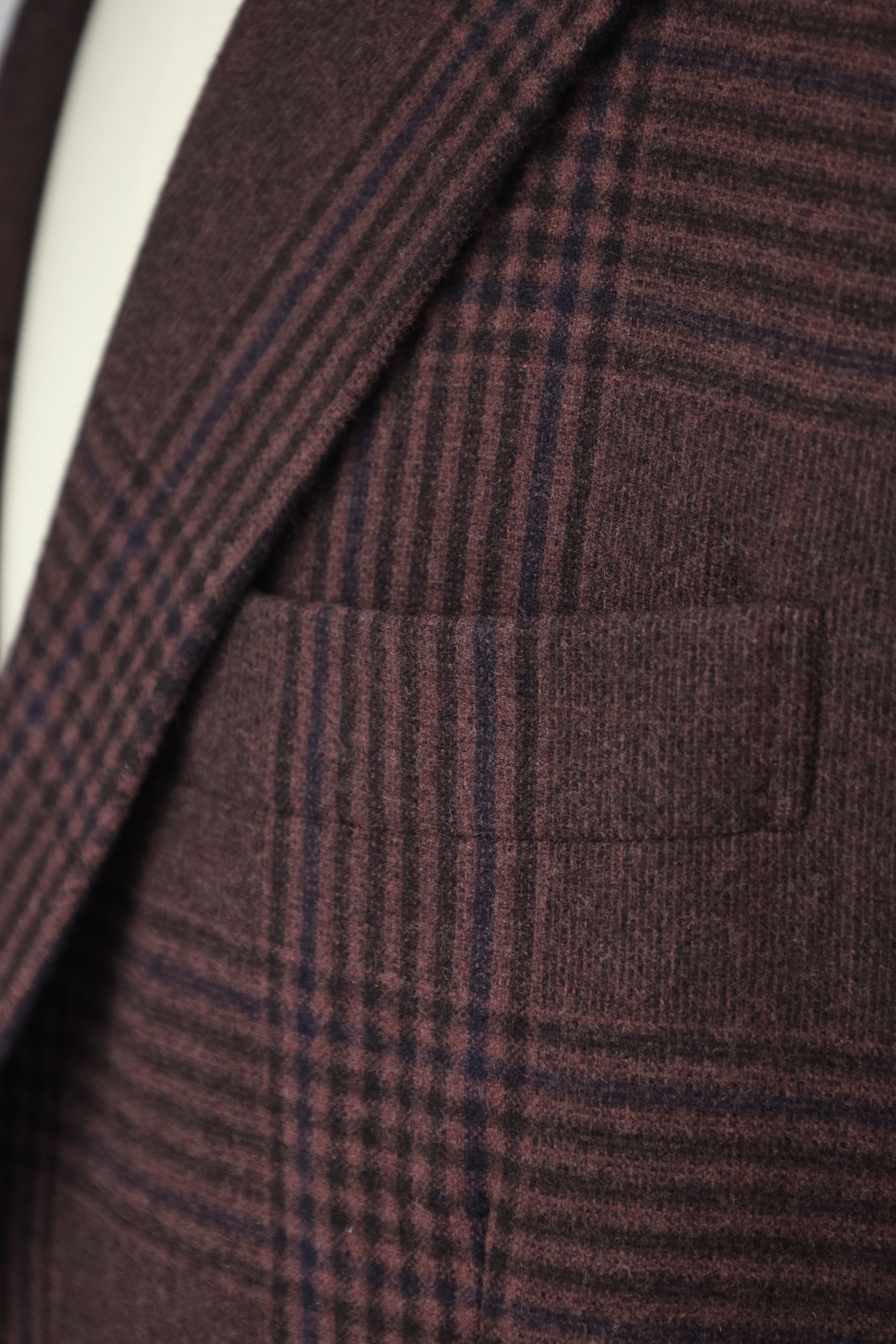 Een kleermakersjasje - of jas - heeft een tussenvoering nodig die helpt om het vorm te geven en te vormen. Canvas geeft het item een op maat gemaakte en ambachtelijke look. Kortom, het blaast leven in. Puur technisch, canvas is gemaakt van paardenhaar, wol, mohair of kamelenhaar. Het kan ook een mix van allemaal zijn, met verschillende diktes en gewichten. Het canvas wordt, vaak met de hand, aan het jasje gestikt, waardoor de stukken canvas 'zweven' in het midden van de binnen- en buitenstof. Dit geeft de jas extra flexibiliteit. Het canvas loopt van de bovenste delen helemaal door tot aan het uiteinde van de jas. Nadat je je canvaspak een tijdje hebt gedragen, begint het je vorm aan te nemen en er ongelooflijk natuurlijk uit te zien.