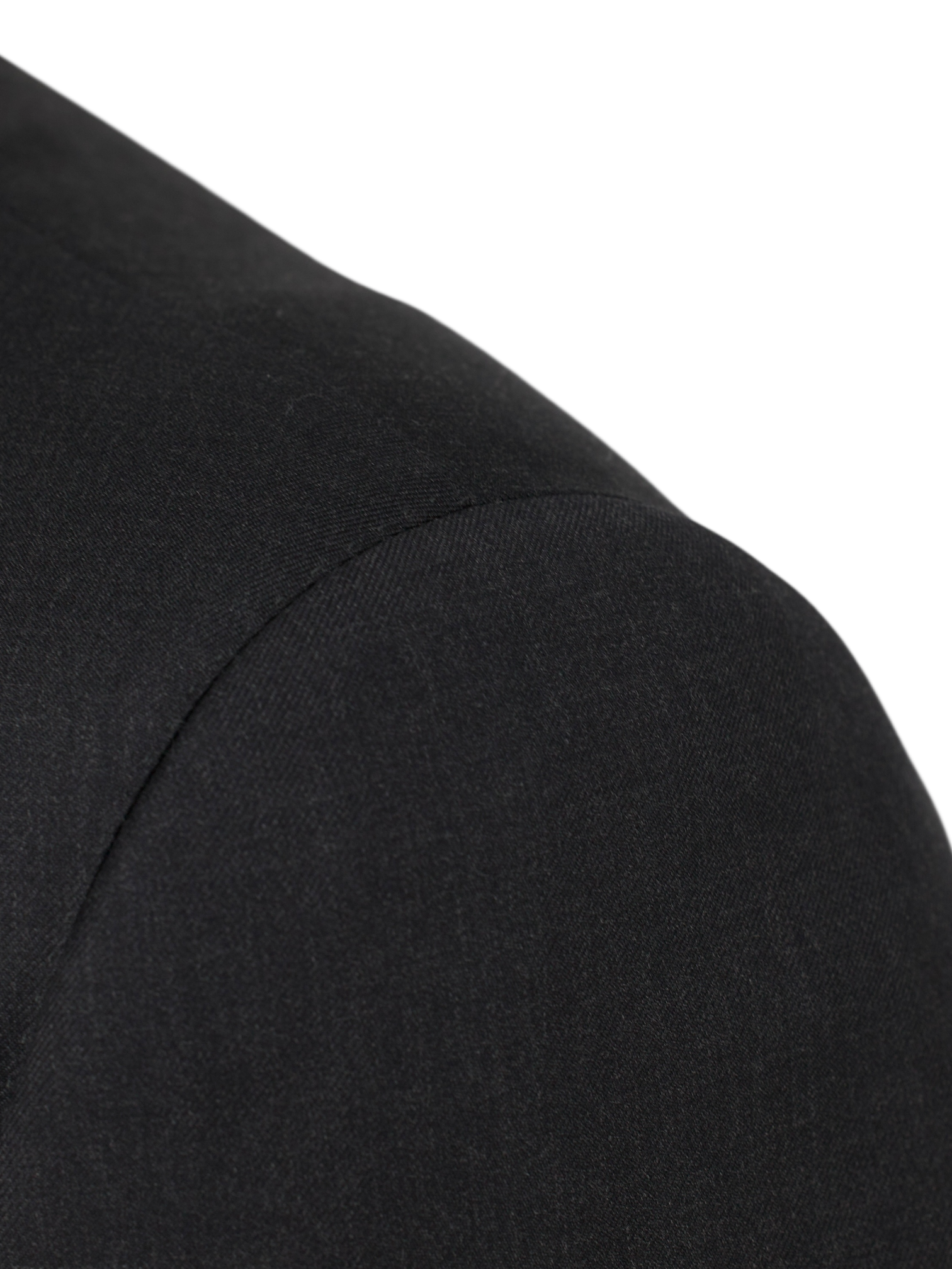 Zachte schouders, of licht opgevulde schouderconstructie, geven een zachter, meer informeel silhouet aan een op maat gemaakt jasje. Zachte schouders hebben weinig opvulling en volgen de contouren van de individuele schouder om de natuurlijke kenmerken van de drager te accentueren.