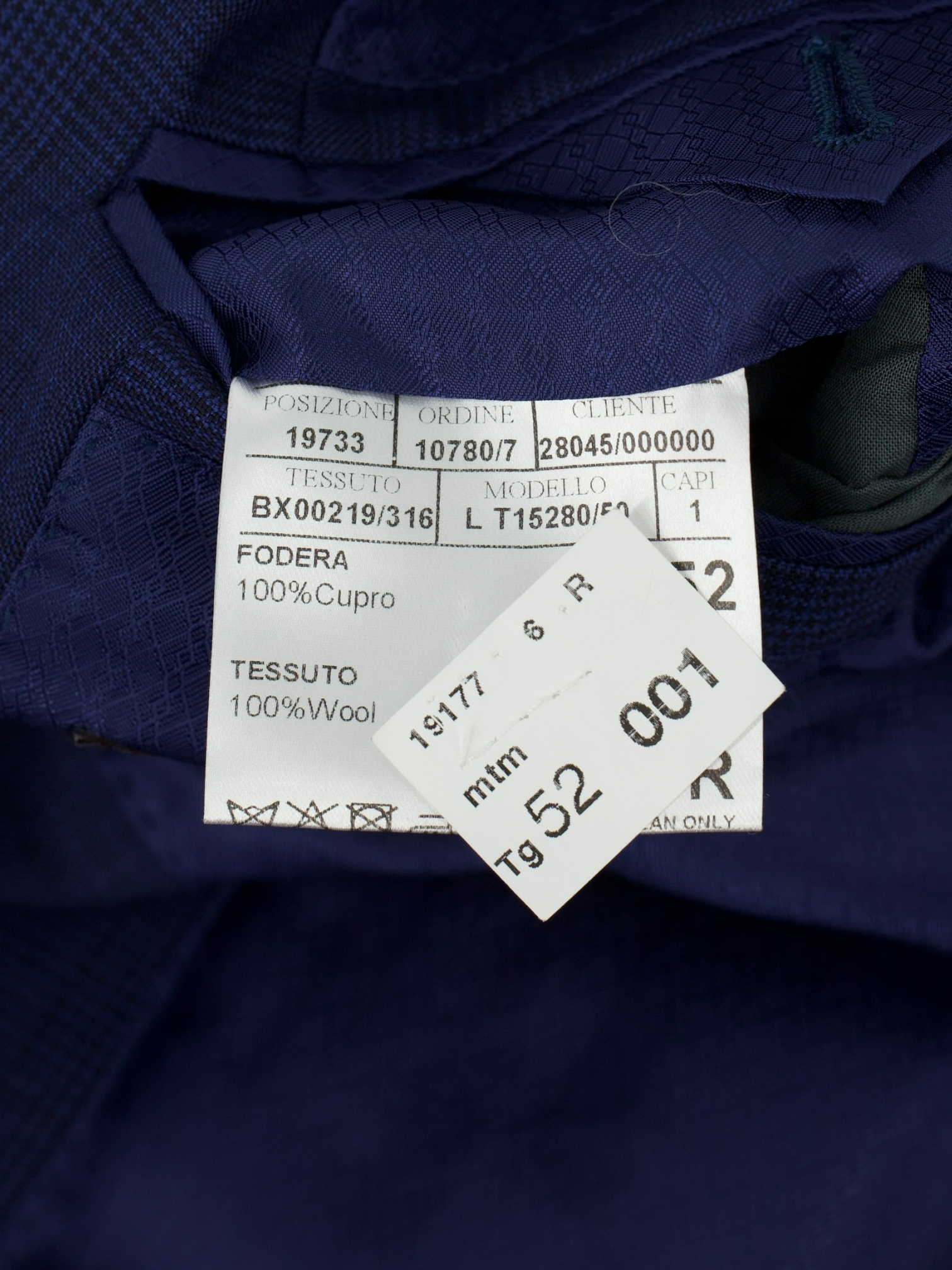 Discover the sharp clarity of this Canali suit, tailored in a bright blue Super 150’s wool with a subtle glenplaid pattern that adds texture without overwhelming the silhouette. The jacket is cut in the house’s classic Milanese style with notch lapels, soft shoulders, flap pockets, and a fully lined interior for a refined, structured finish. The vibrant tone brings a modern edge to a traditional check, offering a confident alternative to more muted business suiting.