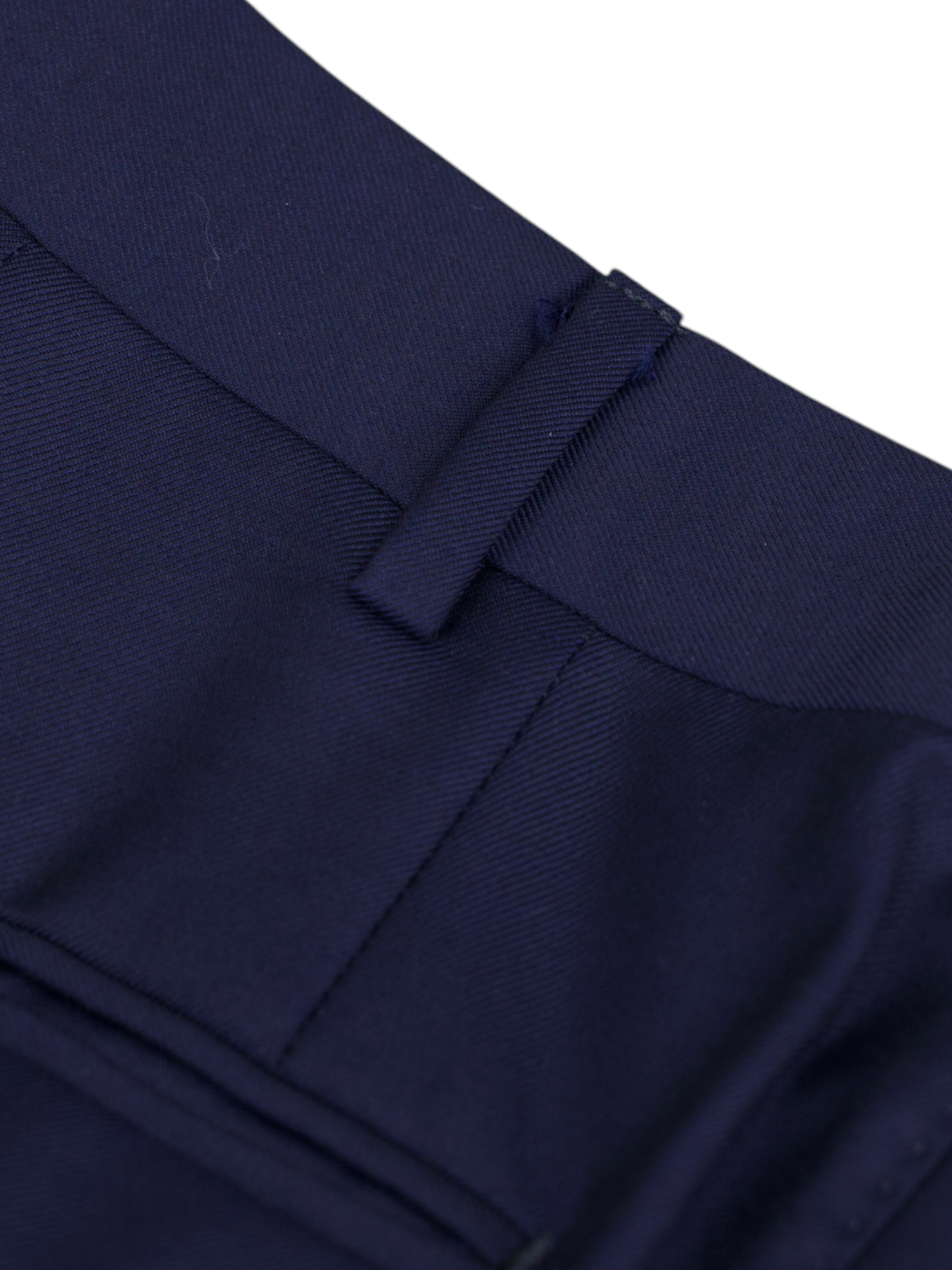 The turn-up hem, or cuffed hem, is a classic style where the fabric at the bottom of the trousers is folded outward to create a visible cuff. This style originated with Edward VII in the late 19th century, who had his trousers tailored with cuffs to prevent them from getting muddy, sparking a trend among the fashionable elite. In the 1920s and 1930s, turn-ups became a symbol of wealth and sophistication, as having extra fabric was seen as a luxury. This association continued after World War II when wearing turn-ups subtly indicated affluence in an era of fabric rationing. Today, turn-up hems are a nod to their historical roots, offering a touch of classic elegance and enhancing the overall appearance of formal and tailored trousers.