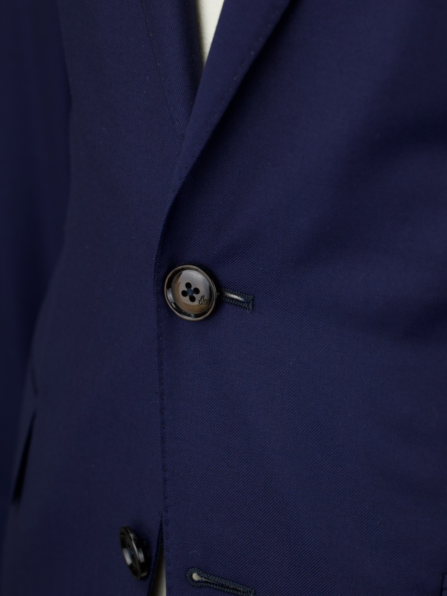 Crafted in Italy with Canali’s signature precision, this suit reflects the brand’s enduring commitment to luxurious fabric and exacting construction. The fine Super 150’s wool is breathable and lightweight, making it an excellent option for spring through early autumn. Full-canvas tailoring ensures the suit holds its shape while naturally adapting to the wearer’s form. Every detail—from the horn buttons to the hand-finished interior—speaks to a quiet mastery honed over decades. Discover the elaborated sartorial details below.