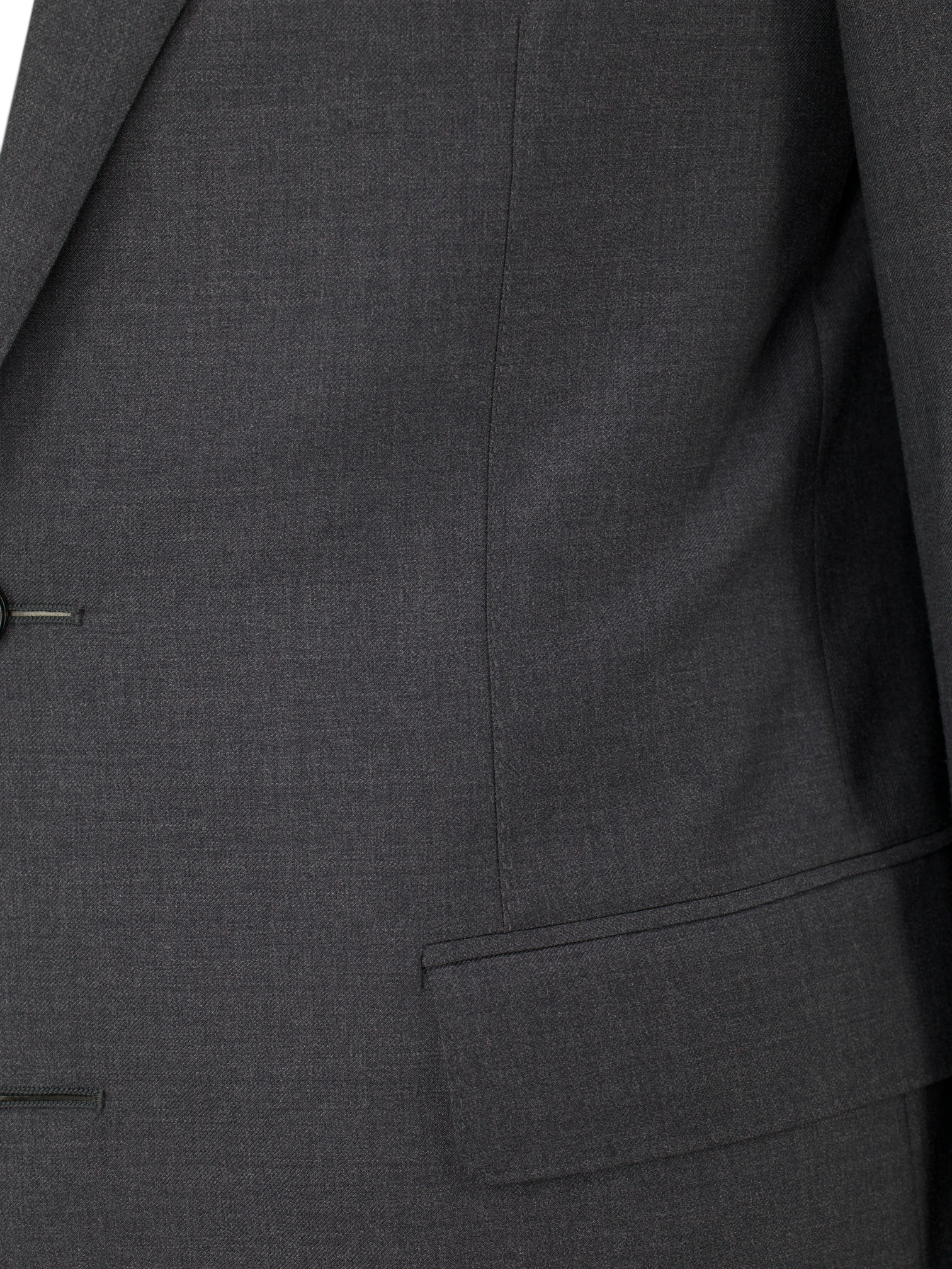 Discover the understated elegance of this Canali charcoal suit, crafted from fine-wool twill with a smooth texture and fluid drape. Cut in the brand’s signature Milanese style, the jacket features notch lapels, soft shoulders, flap pockets, and a fully lined interior for a refined yet comfortable silhouette. The charcoal tone offers timeless versatility, ideal for business, formal occasions, or anything in between. Its clean lines and thoughtful proportions make it a natural go-to for the man who values quiet sophistication.