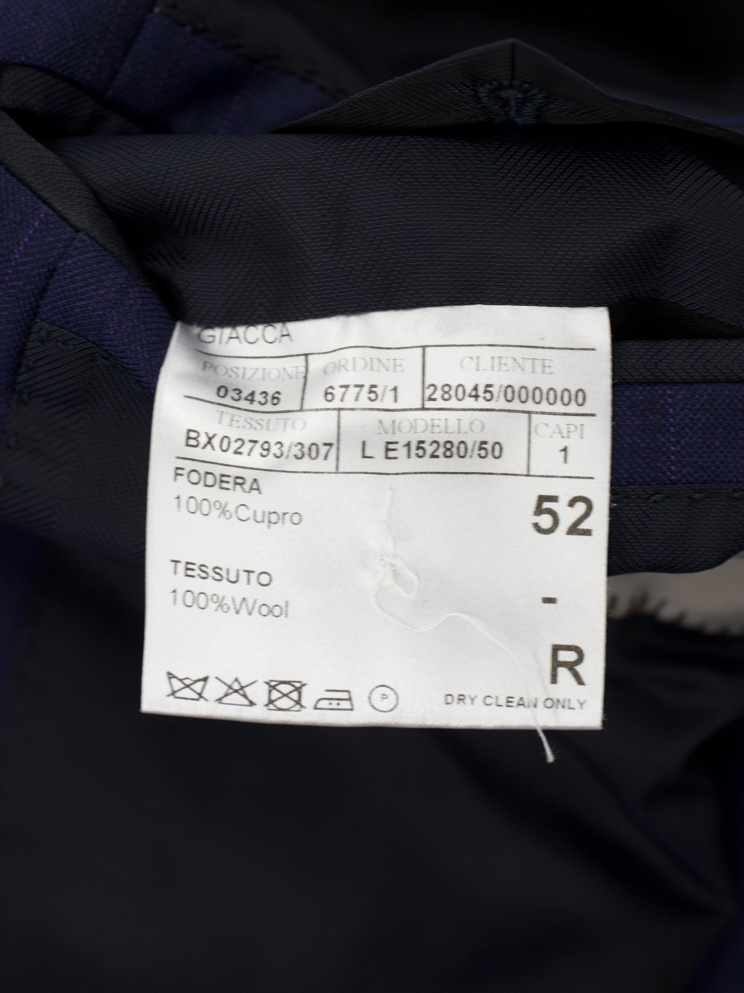 Discover the understated charm of this Canali suit, tailored in marine blue Super 150’s wool with a vintage-inspired stripe that whispers rather than shouts. The fine pink stripe is only visible up close, lending the cloth a subtle point of interest without disrupting its formal character. The jacket is cut in Canali’s timeless Milanese silhouette with notch lapels, soft shoulders, flap pockets, and a fully lined interior for a clean, structured fit.
