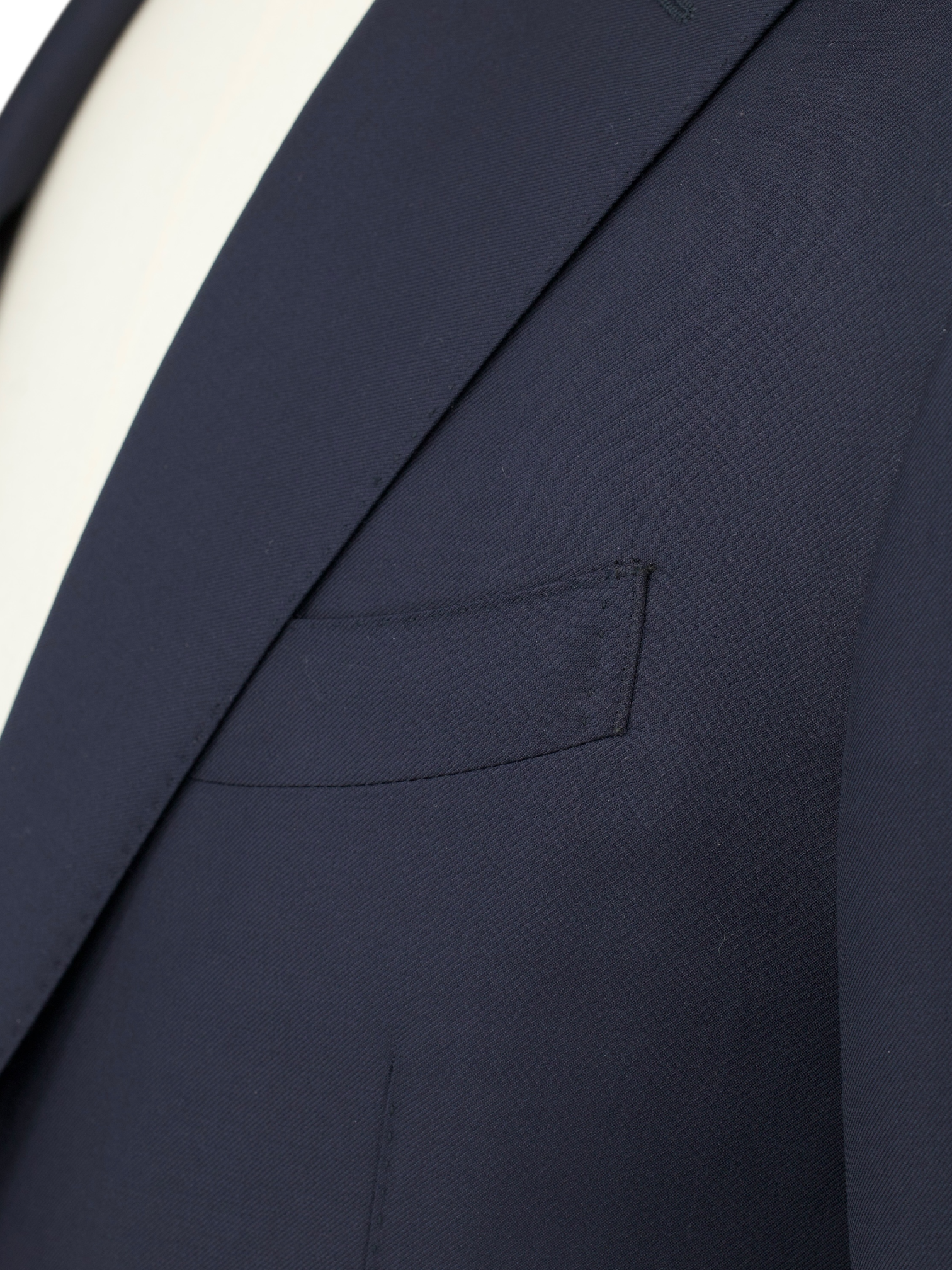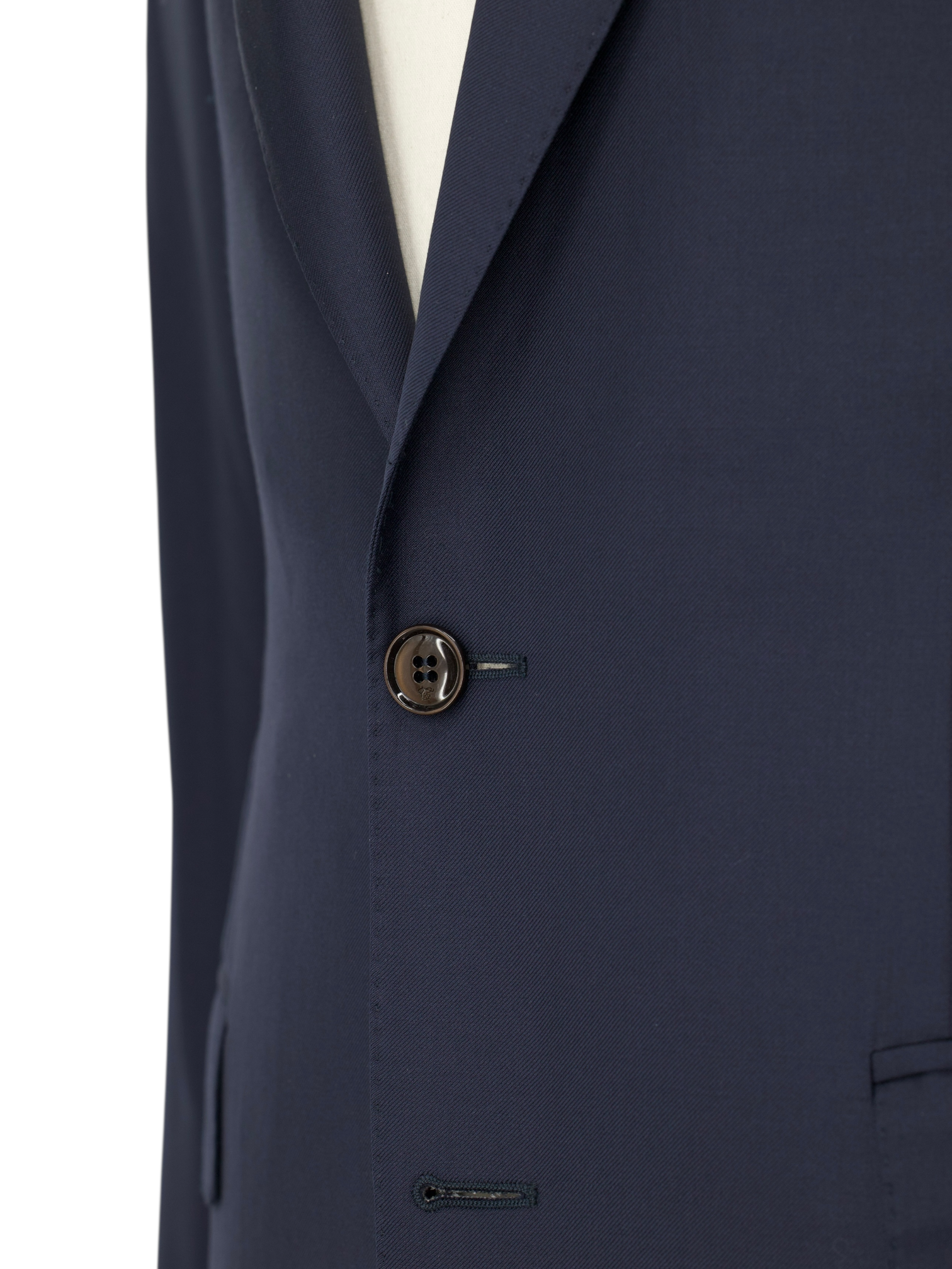 Discover the quiet confidence of this Canali suit, tailored in navy fine-wool twill with a clean, matte finish that feels timeless and refined. The jacket is shaped in the house’s classic Milanese silhouette with notch lapels, soft shoulders, flap pockets, and a fully lined interior for structure and ease. The deep navy tone offers versatility for both business and formal settings, delivering a look that’s polished without being overstated.