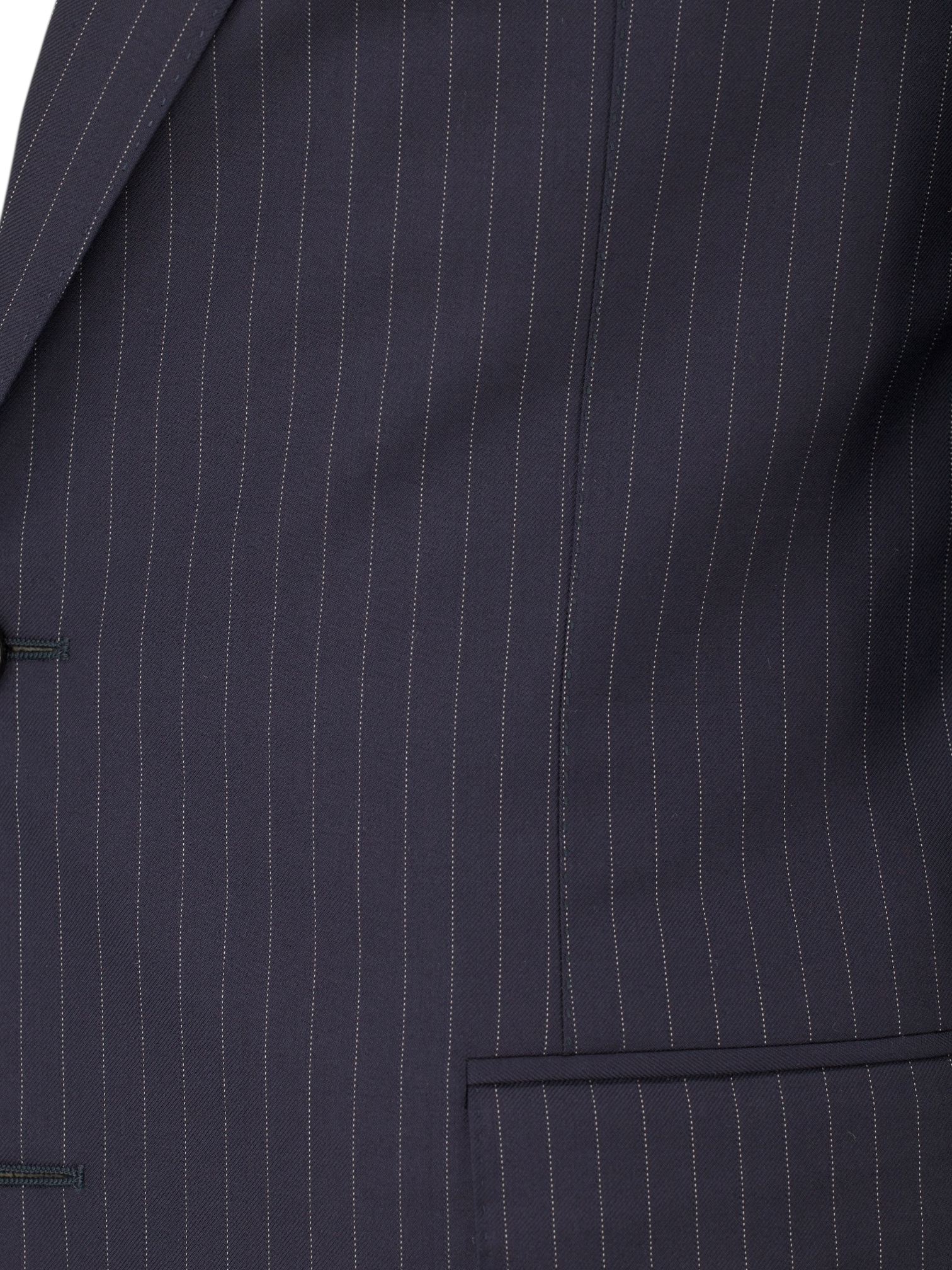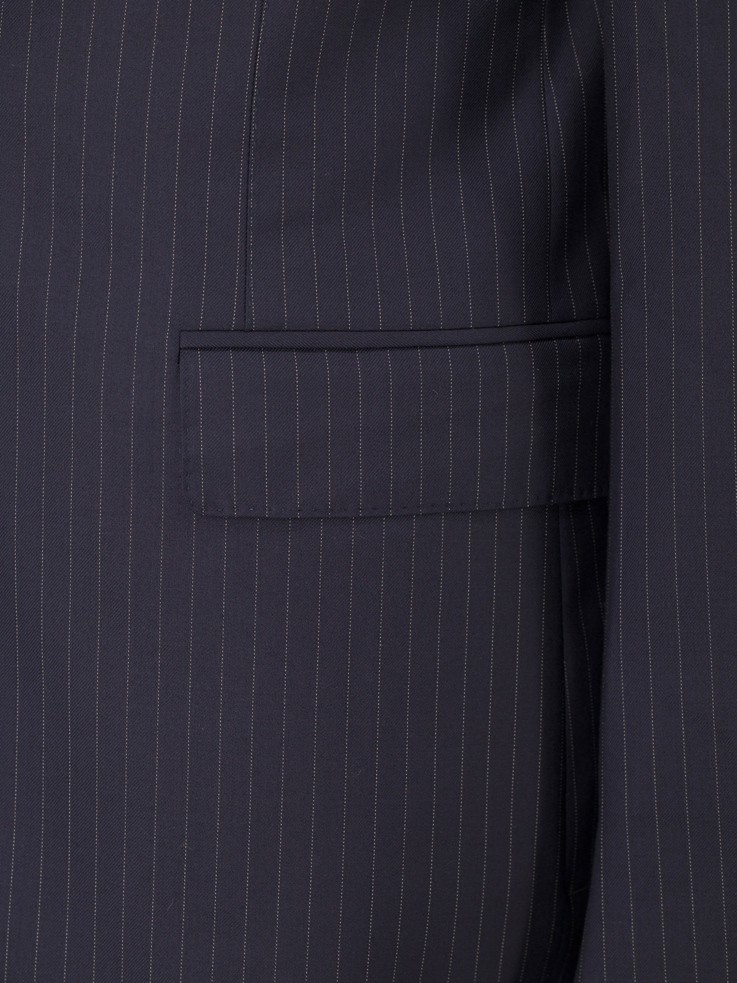 Discover the sharp precision of this Canali suit, tailored in navy Super 160’s wool with a clean pinstripe that lends clarity and structure without overpowering. The jacket is cut in the house’s classic Milanese silhouette with notch lapels, soft shoulders, flap pockets, and a fully lined interior that ensures a smooth, composed drape. The refined stripe brings a touch of formality, making it a natural choice for boardroom settings or occasions that call for quiet authority.