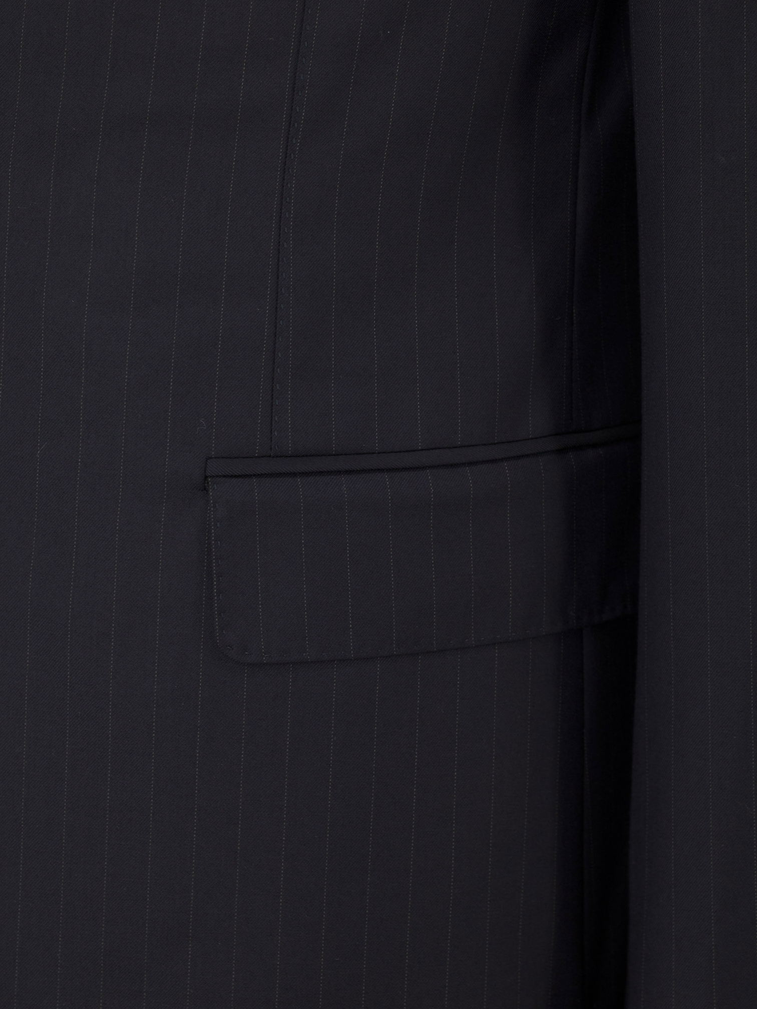 Discover the quiet authority of this Canali boardroom suit, tailored in navy Super 180’s wool with a refined pinstripe that lends structure and depth. The jacket is cut in the house’s classic Milanese silhouette with notch lapels, soft shoulders, flap pockets, and a fully lined interior that ensures clean lines throughout. The cloth is exceptionally smooth and lightweight, making it ideal for long days in formal settings where comfort is as important as presentation.