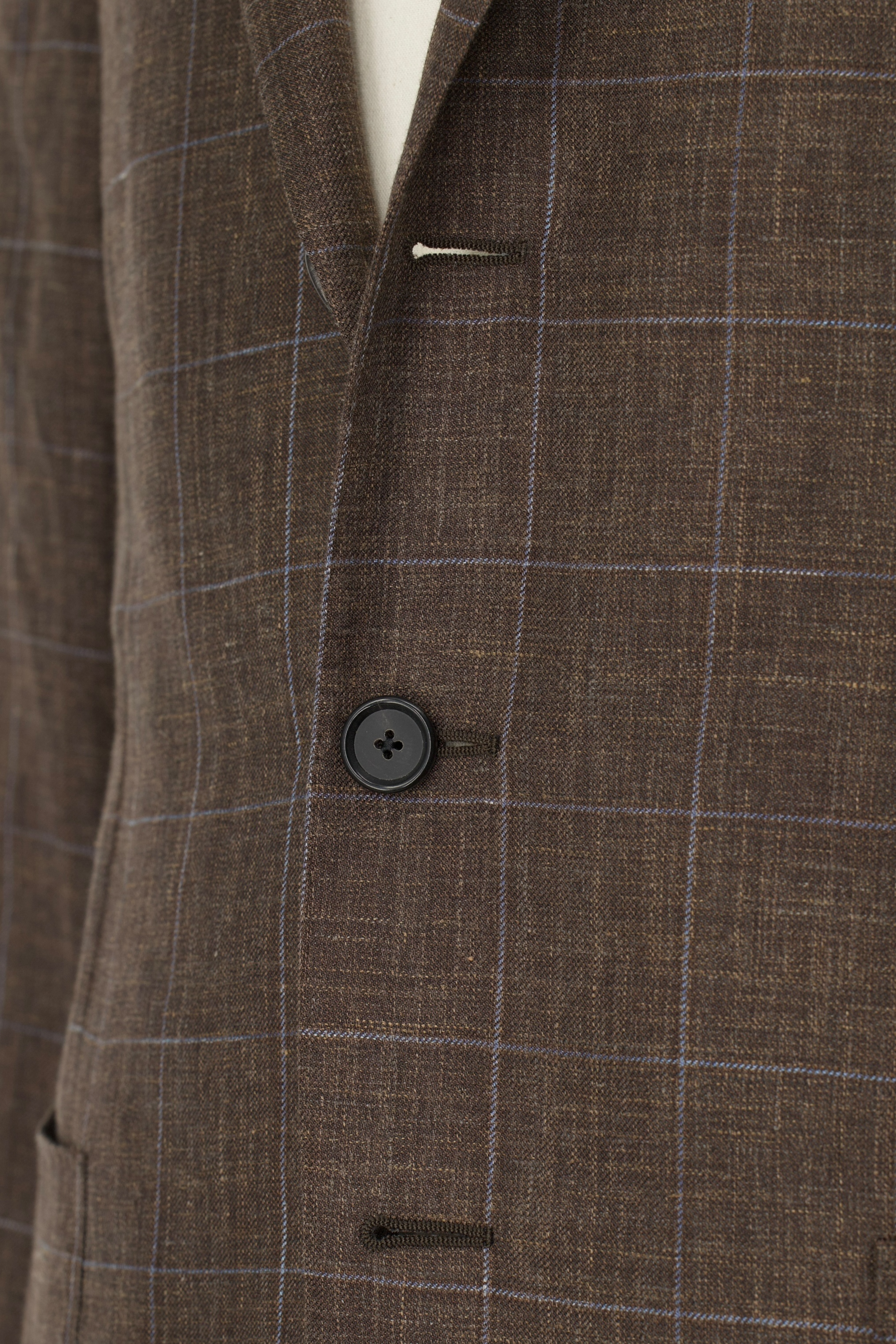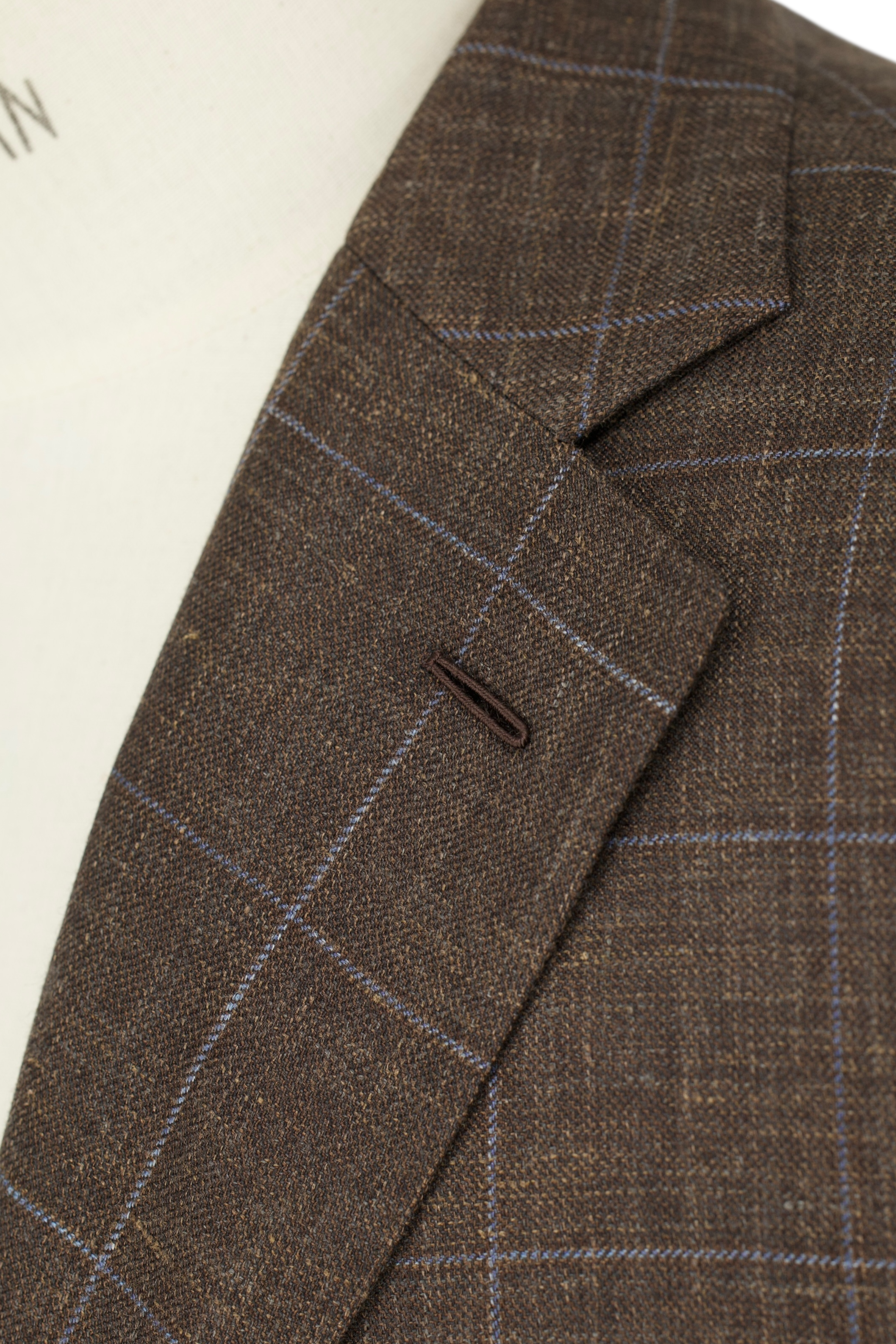 Caruso Brown Wool, Silk & Linen "Summertime" Windowpane Jacket