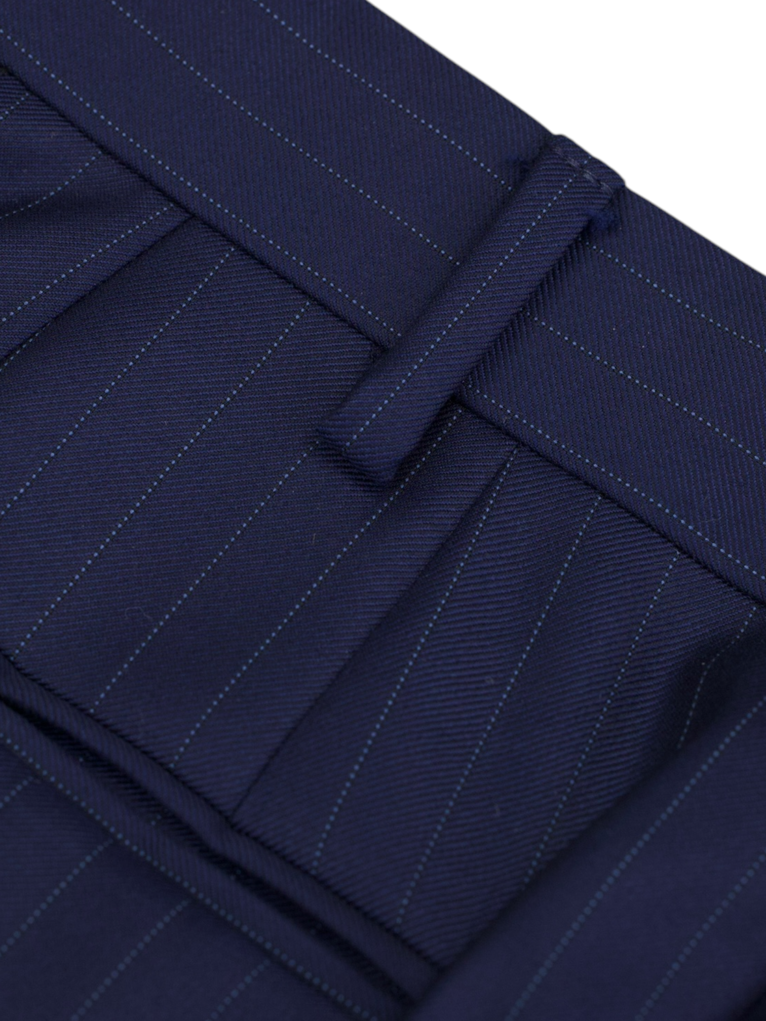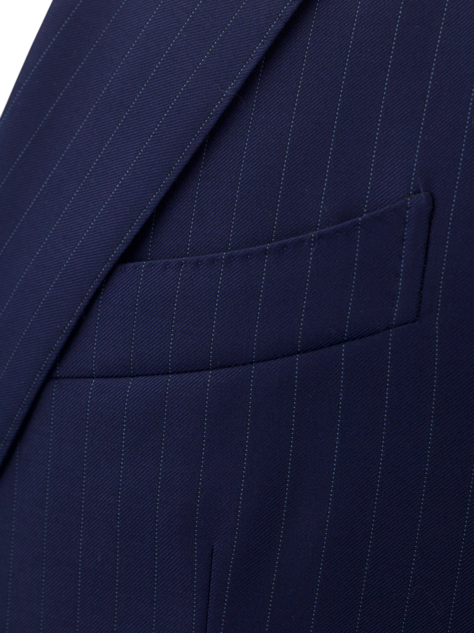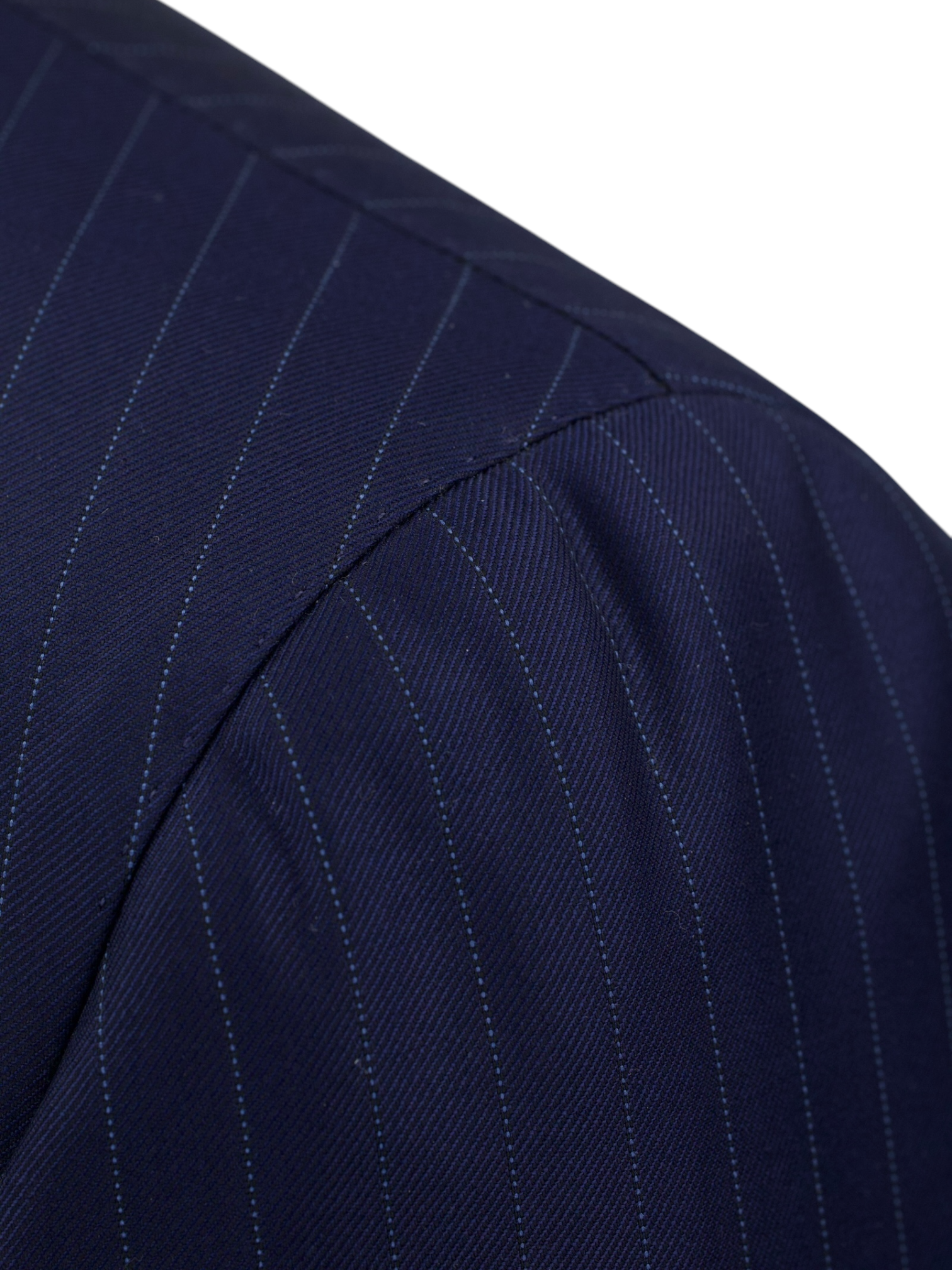 Discover the Caruso Dark Blue Super 150’s “Australis” Pinstripe Boheme Suit, an opulent interpretation of business tailoring infused with depth, luster, and artisanal nuance. Woven by Loro Piana from their prestigious Australis Super 150’s wool, the cloth features a subtle sheen and rich hand—offering a luxurious finish that catches the light without excess. The elegant pinstripe runs clean and crisp across the deep blue ground, creating a refined vertical rhythm. This Boheme model is detailed with notch lapels, a hand-sewn Milanese buttonhole, flap pockets, dual vents, and a fully lined interior. A second pair of matching trousers is included for considered practicality.