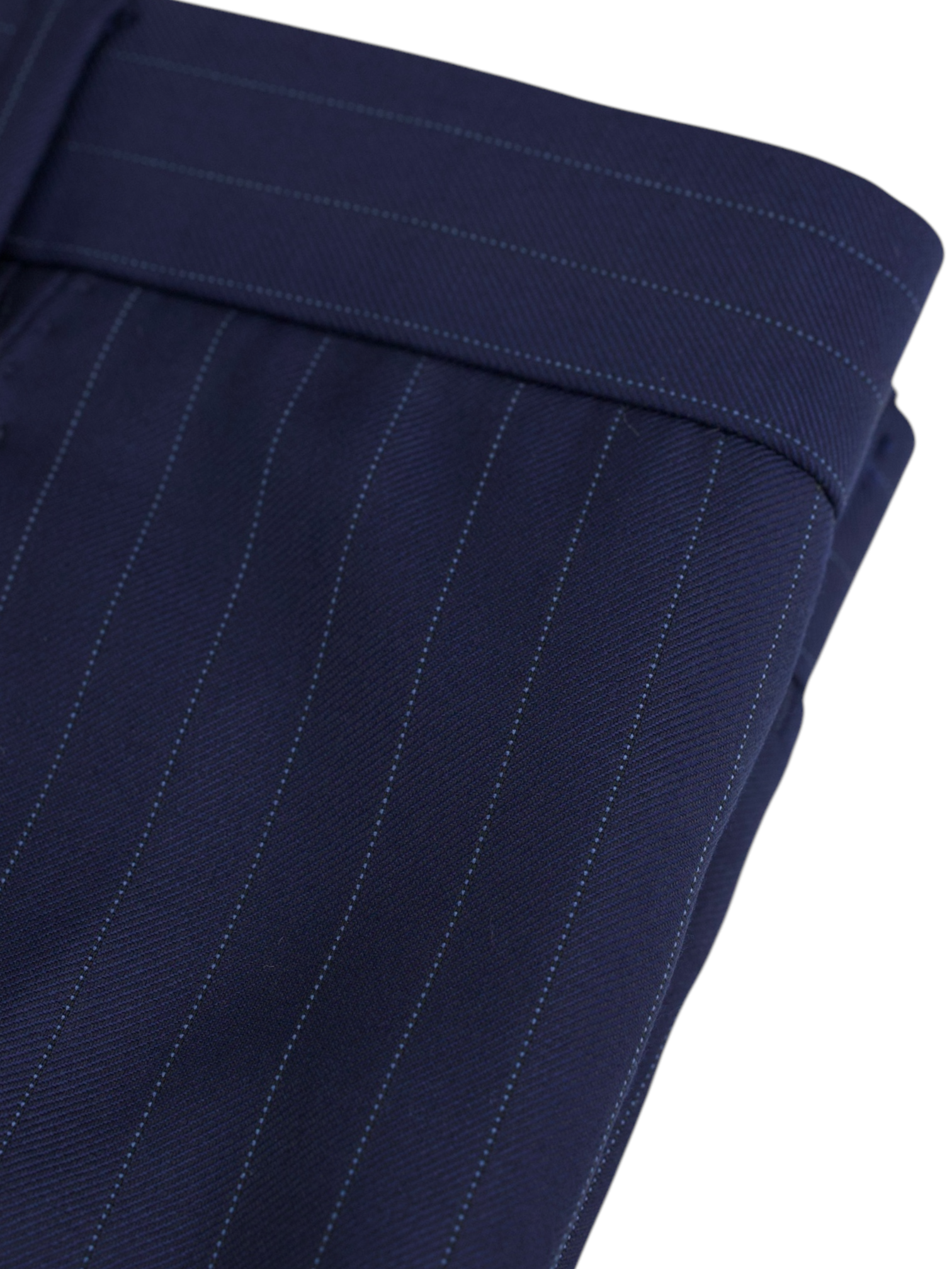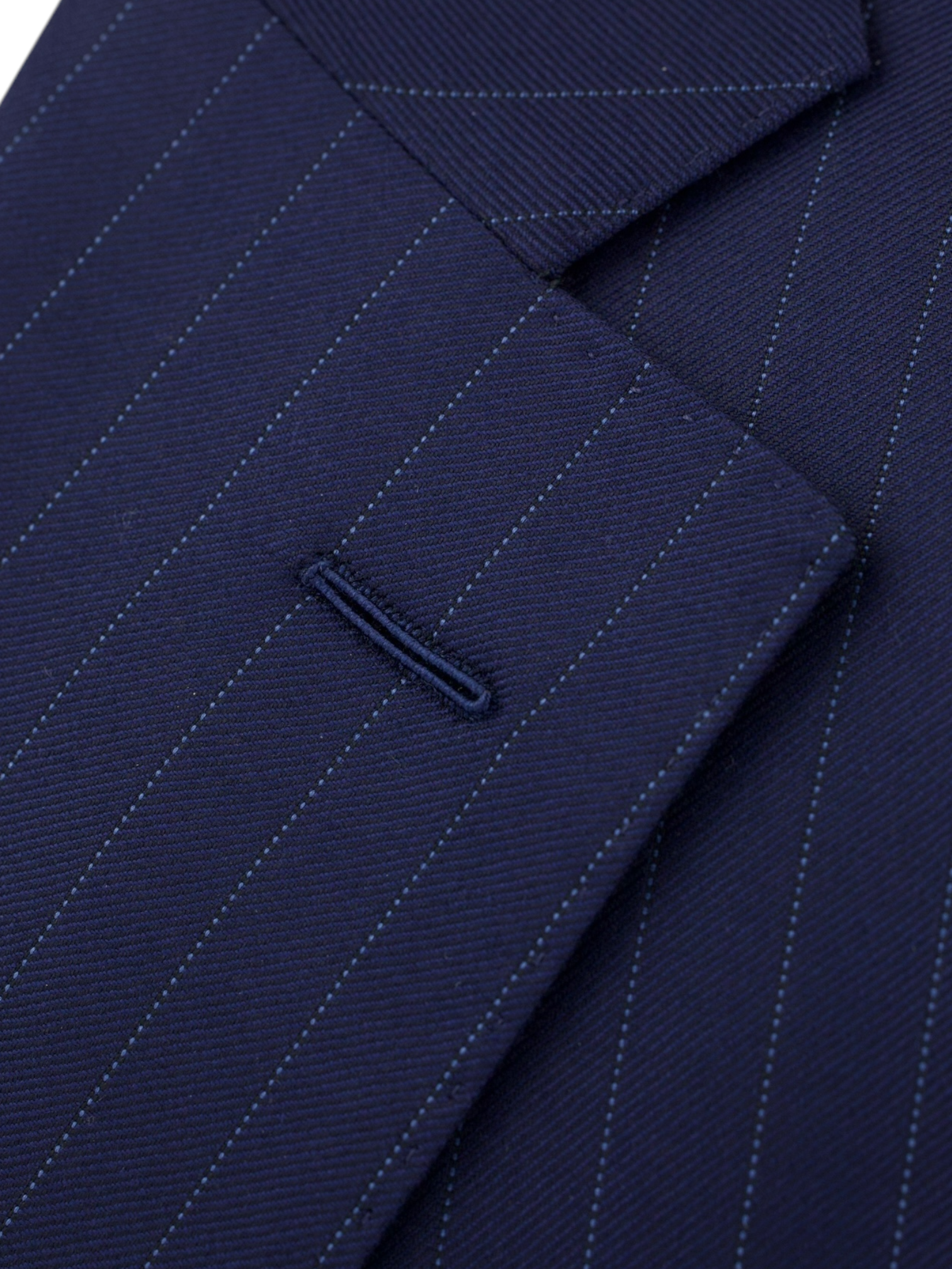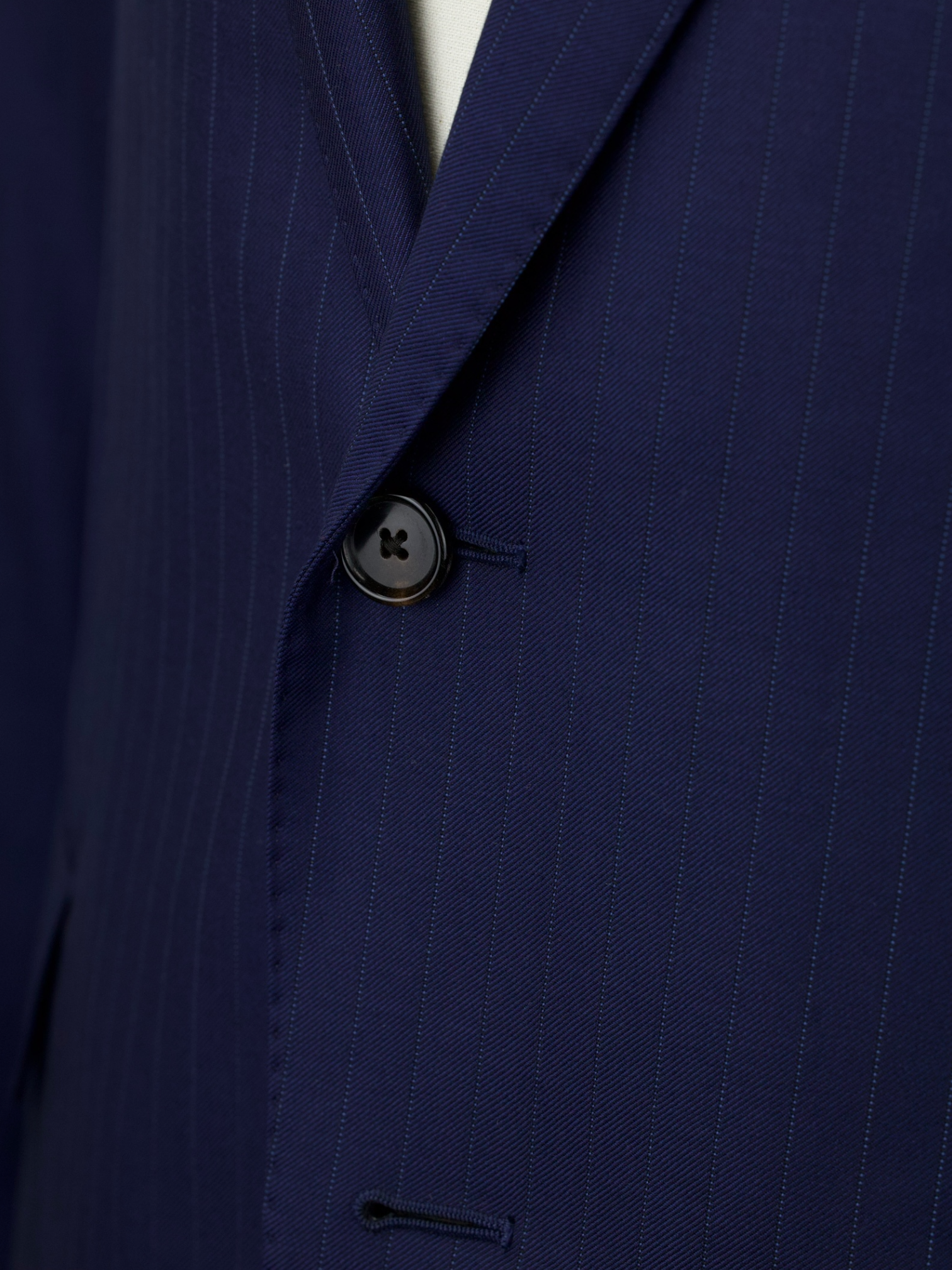 Discover the Caruso Dark Blue Super 150’s “Australis” Pinstripe Boheme Suit, an opulent interpretation of business tailoring infused with depth, luster, and artisanal nuance. Woven by Loro Piana from their prestigious Australis Super 150’s wool, the cloth features a subtle sheen and rich hand—offering a luxurious finish that catches the light without excess. The elegant pinstripe runs clean and crisp across the deep blue ground, creating a refined vertical rhythm. This Boheme model is detailed with notch lapels, a hand-sewn Milanese buttonhole, flap pockets, dual vents, and a fully lined interior. A second pair of matching trousers is included for considered practicality.