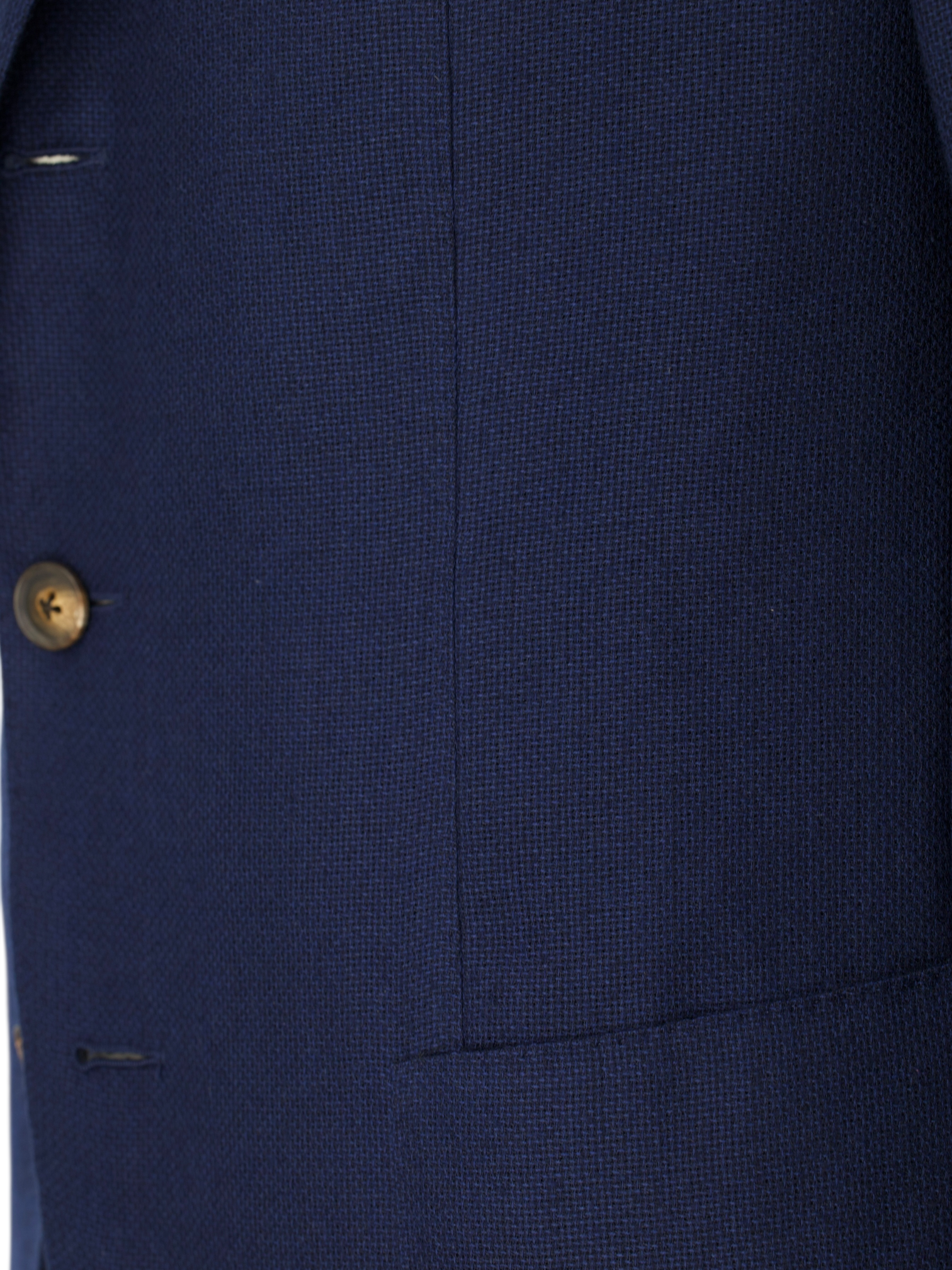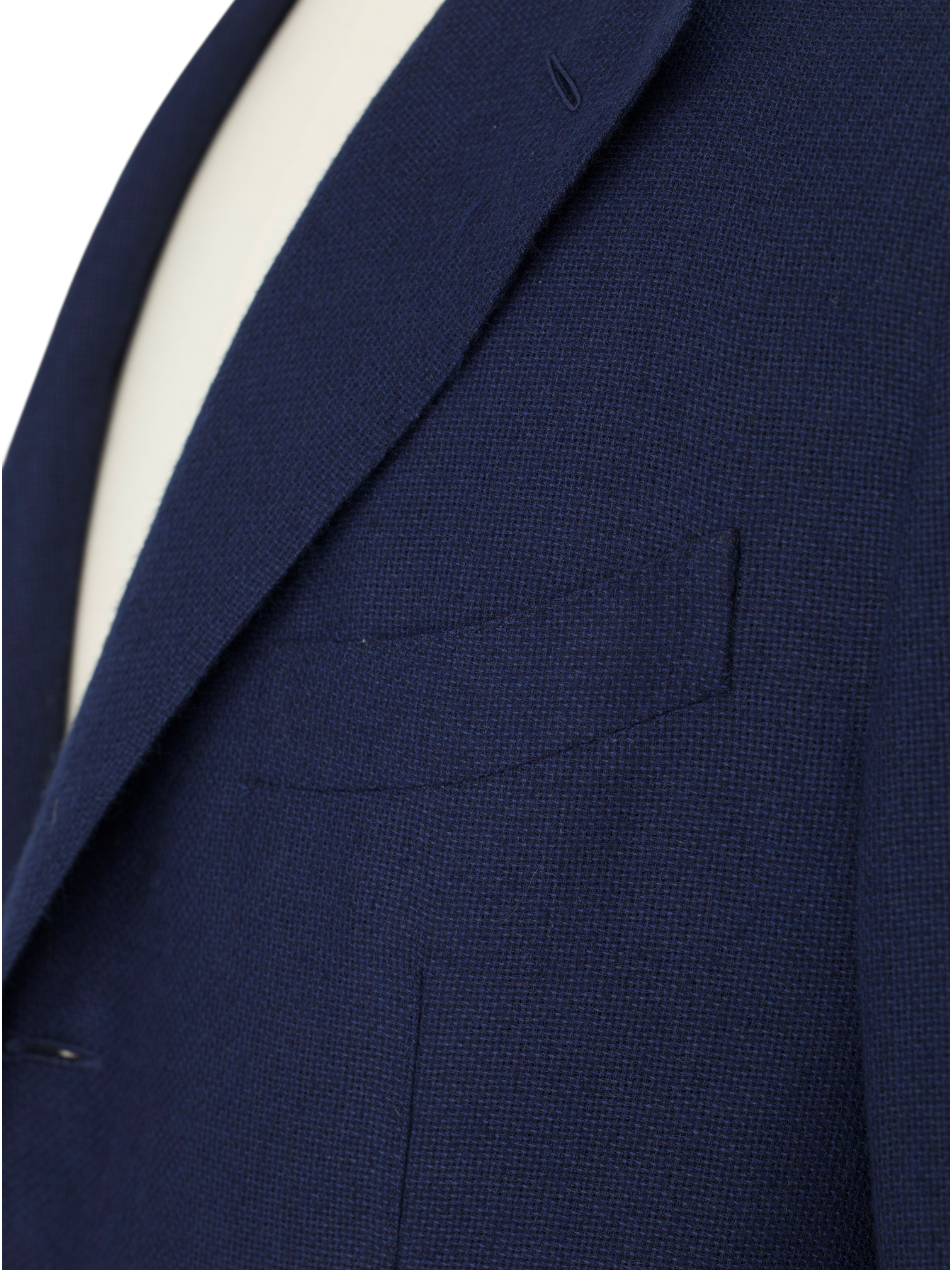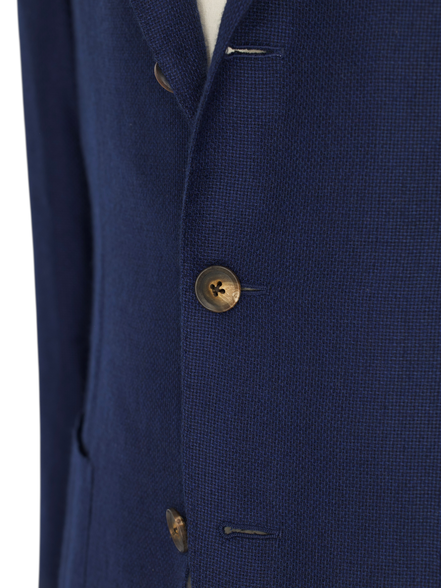 Discover the soft elegance of this Caruso Aida jacket, tailored in a marine blue cashmere and silk blend with a refined micro-pattern that adds quiet texture without distraction. The colour sits between navy and teal, offering a fresh alternative to more traditional blues. Styled with notch lapels and patch pockets, the silhouette is relaxed yet intentional, shaped to follow the lines of the body without stiffness. A half-lined interior keeps the jacket light and breathable, ideal for layering across seasons.