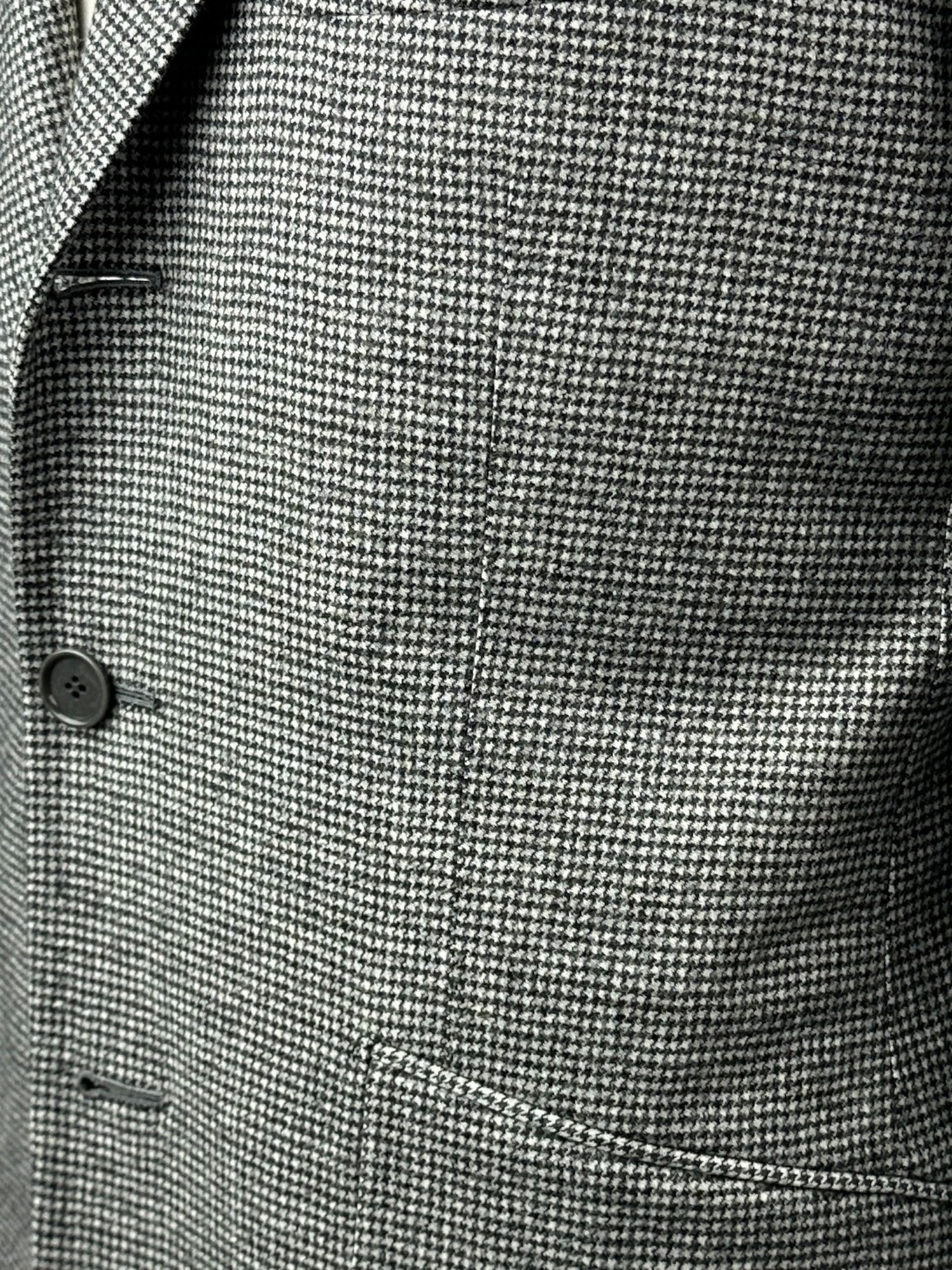 Pre-owned, nog niet gedragen. De knopen moeten worden vastgezet en de knoopsgaten moeten worden gemaakt door uw lokale kleermaker. De (hoorn) knopen zijn bijgevoegd binnenin de linker binnenzak.