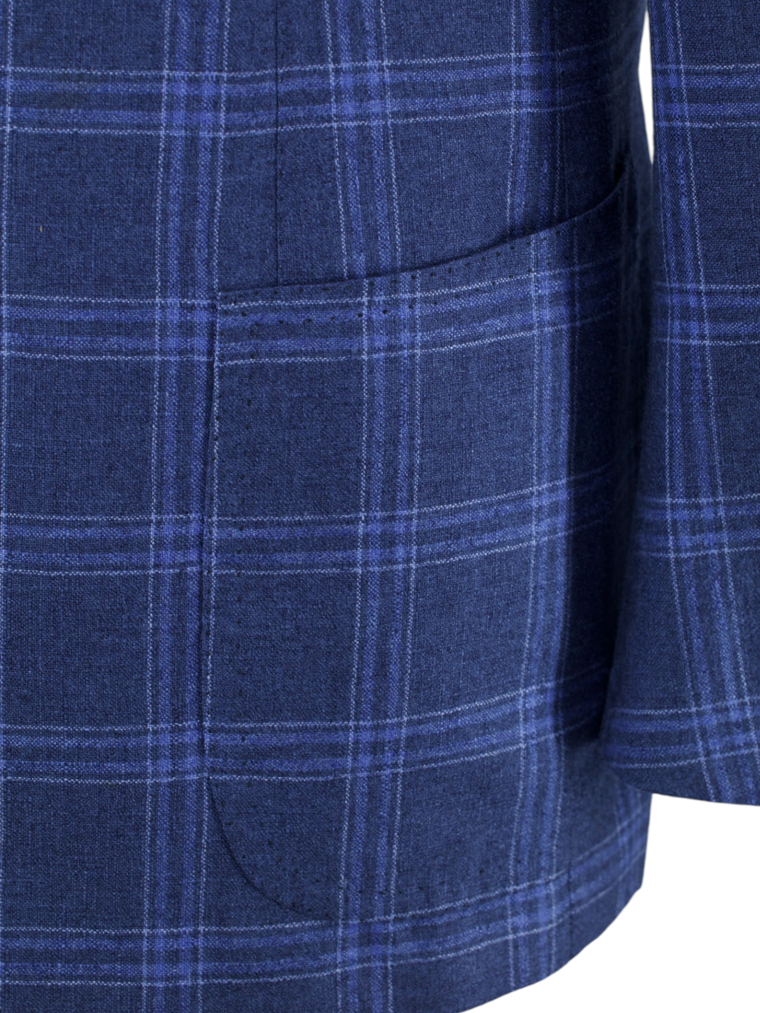 The doppio impuntura or ‘double pick stitching’. It is made as a backstitch, which is a highly time consuming process that looks like a little dot on the surface of the fabric. The doppio impuntura runs throughout the sides of the lapel, collar, pockets and shoulder seam. As a visible detail of handwork, it can be seen as the ultimate touch of elegance.