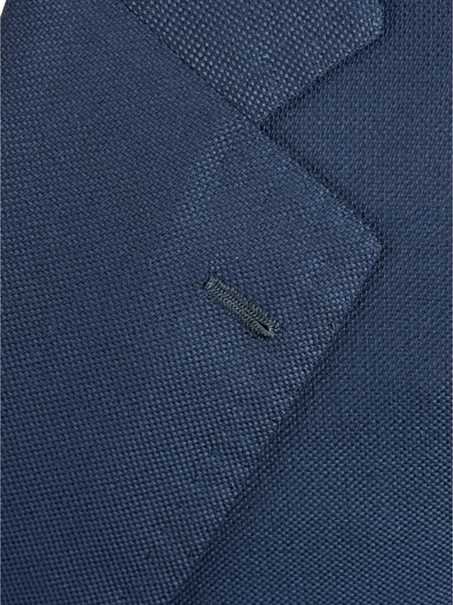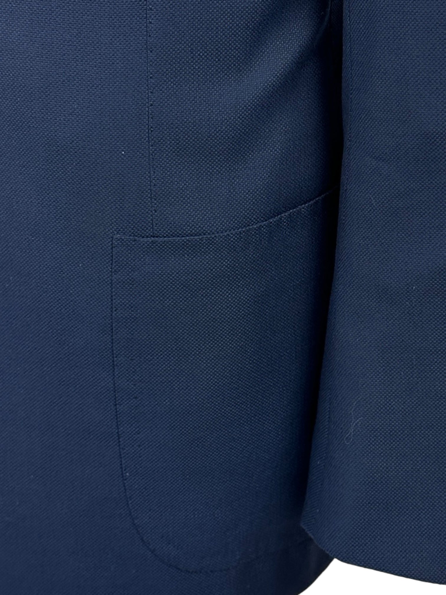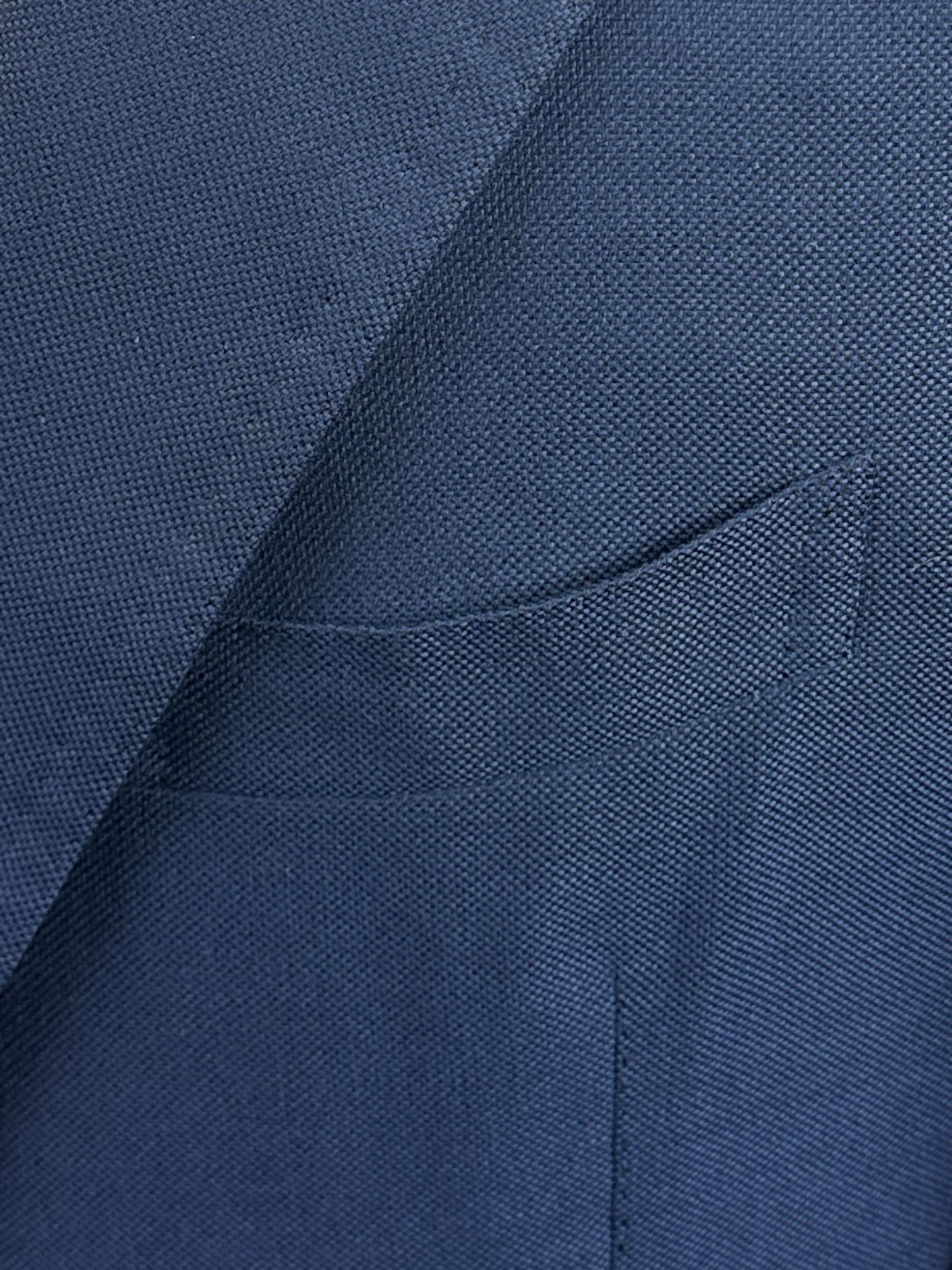 Handgemaakt Napolitaans jasje gemaakt van Super 120's wol, met ingekeepte revers, opgestikte zakken en handgemaakte knoopsgaten - aan het uiteinde van de mouw. Ontdek hieronder de uitgebreide kleermakersdetails.