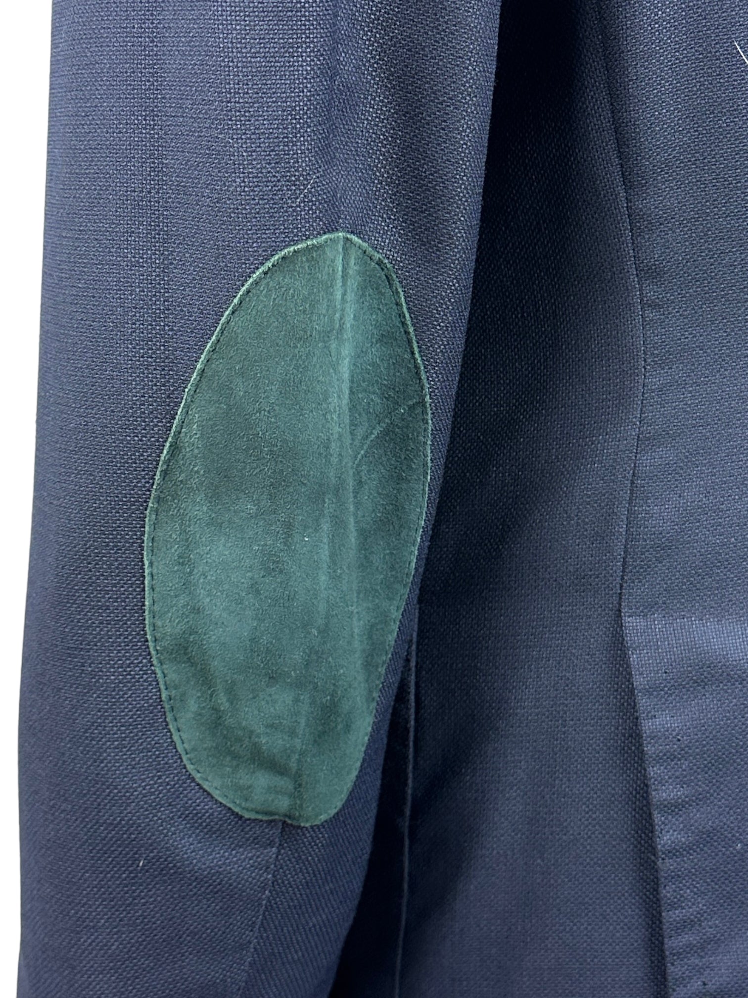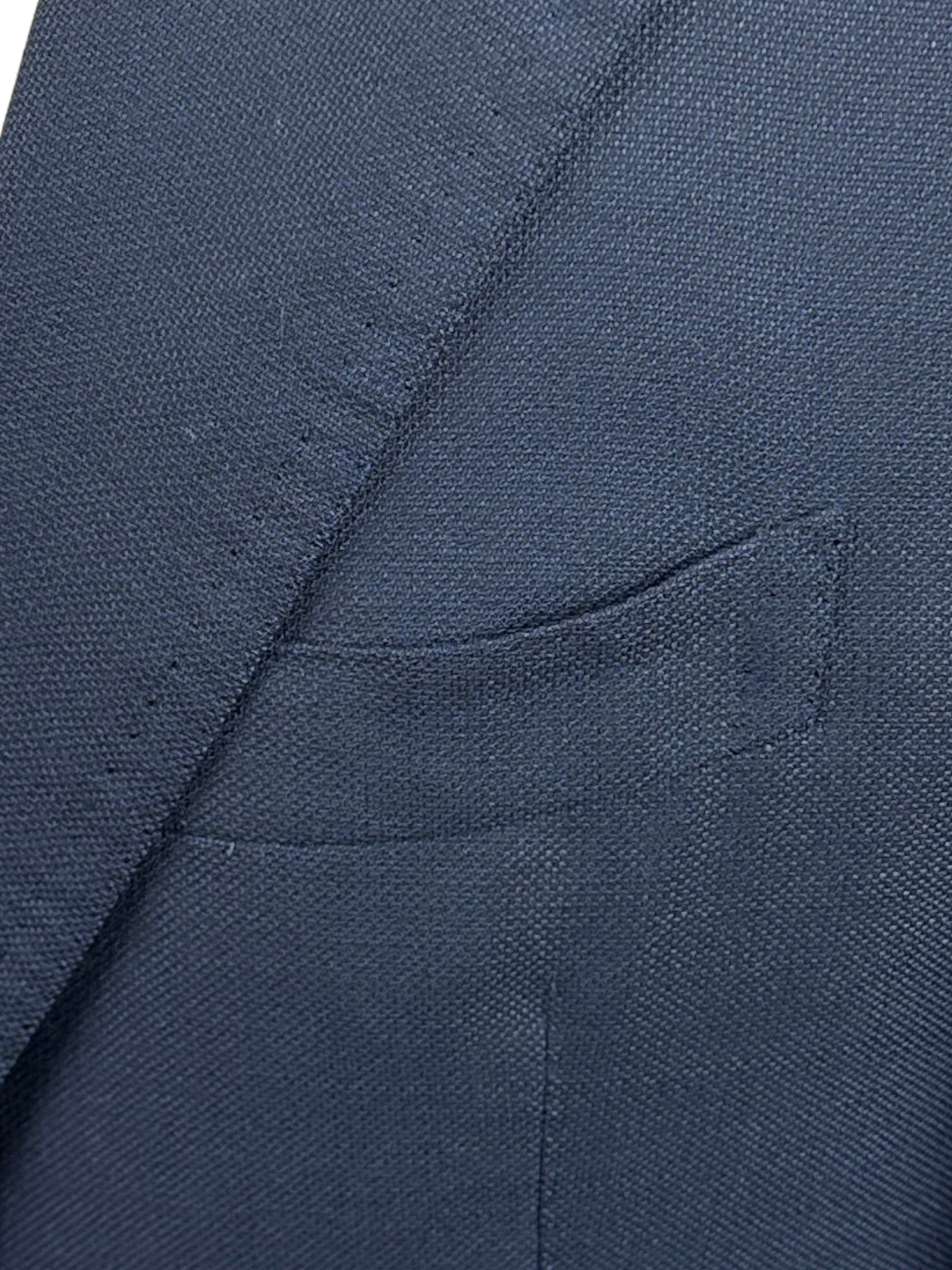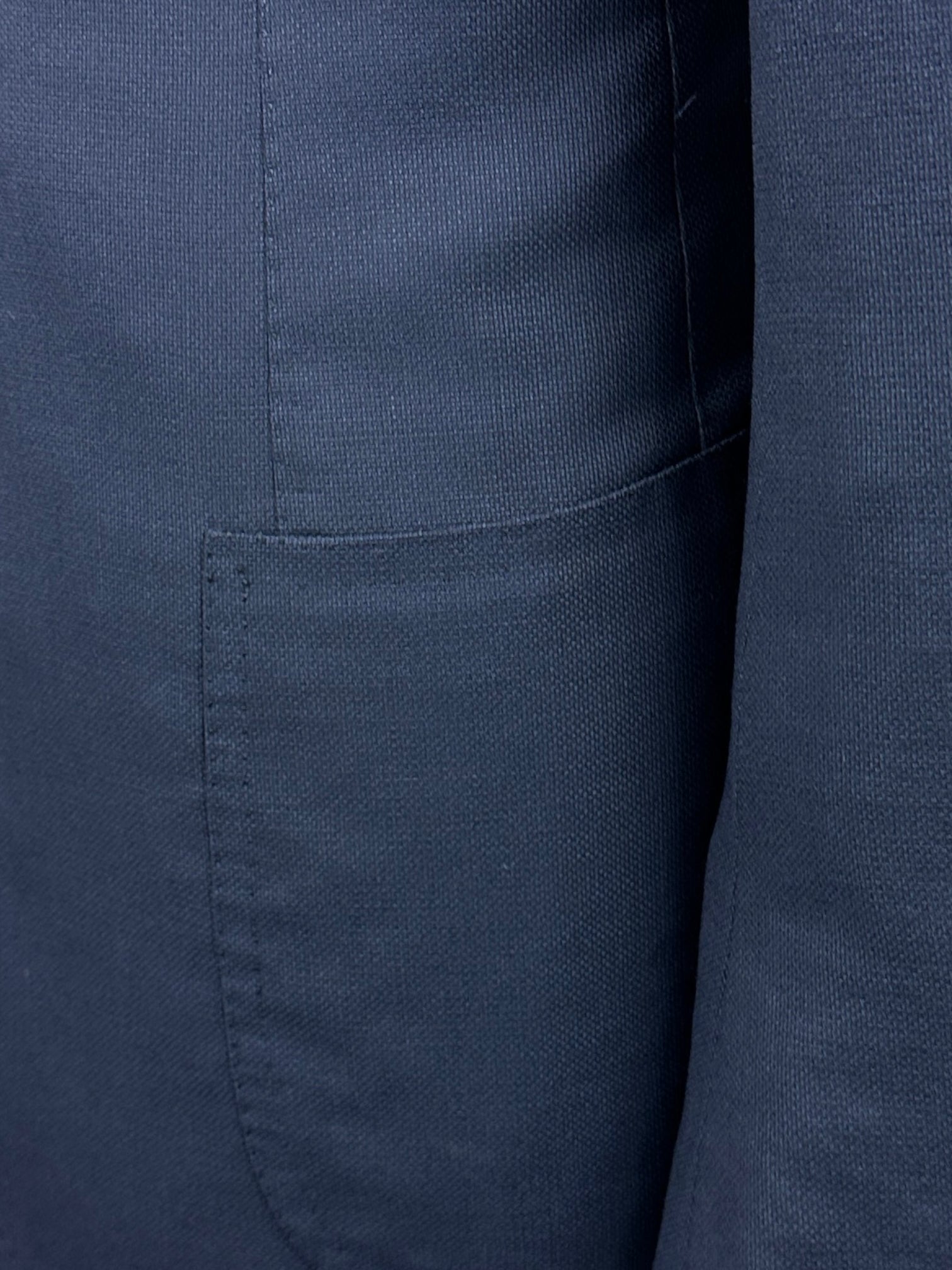Handgemaakt Napolitaans jasje gemaakt van een luxe wol- en zijdemix, met revers met inkeping, opgestikte zakken, elleboogstukken en handgemaakte knoopsgaten - aan het uiteinde van de mouw. Ontdek hieronder de uitgebreide kleermakersdetails.