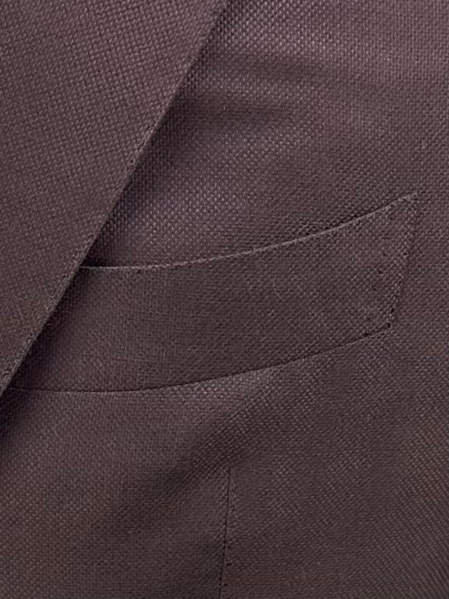 Handgemaakt Napolitaans jasje gemaakt van extra fijne wol, met ingekeepte revers, paspelzakken en - handgemaakte - functionerende knoopsgaten aan het uiteinde van de mouw. De kortere achterkant en mouwen zijn een typisch Napolitaans detail. Ontdek hieronder de uitgebreide kleermakersdetails.
