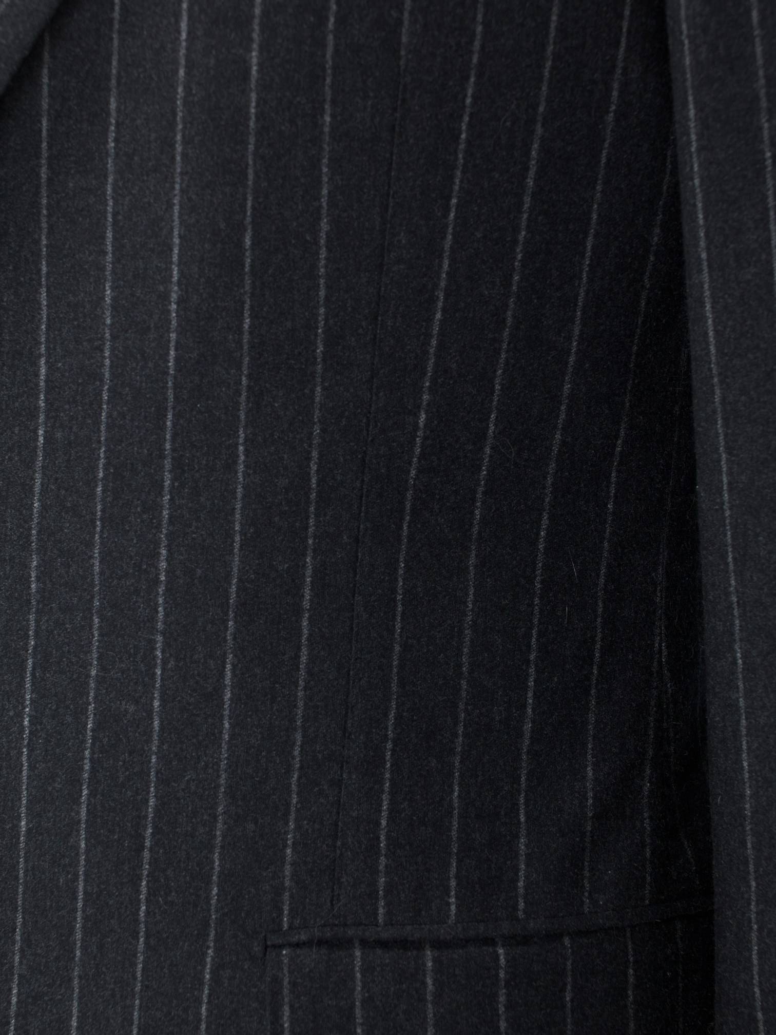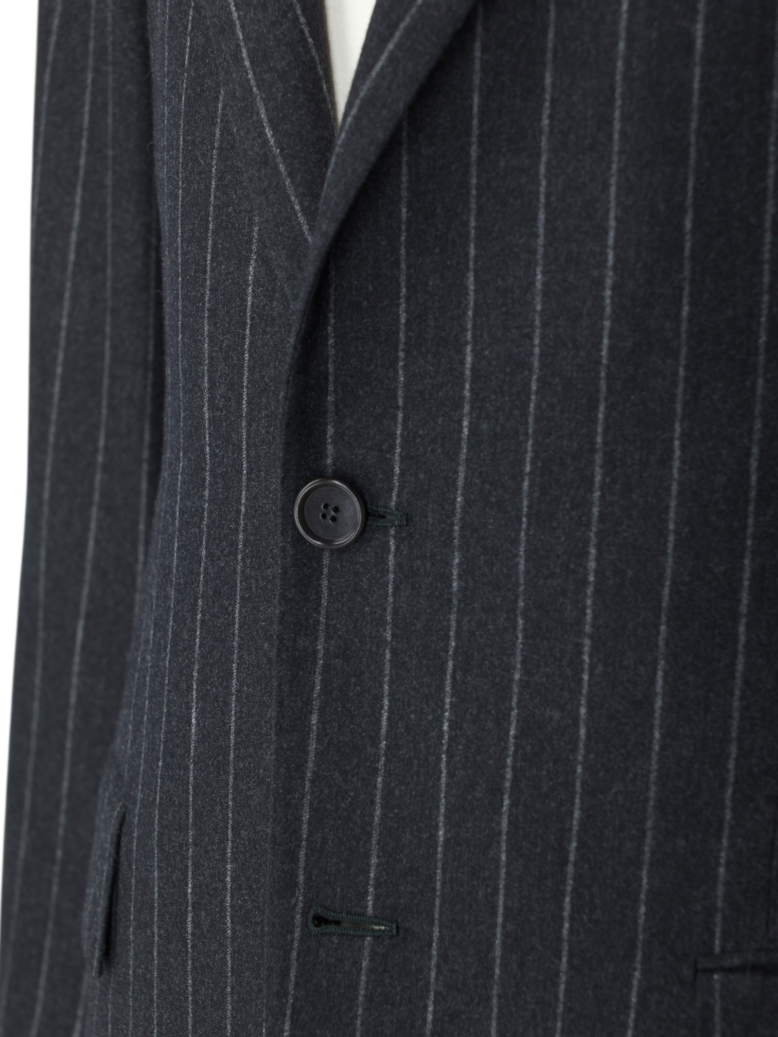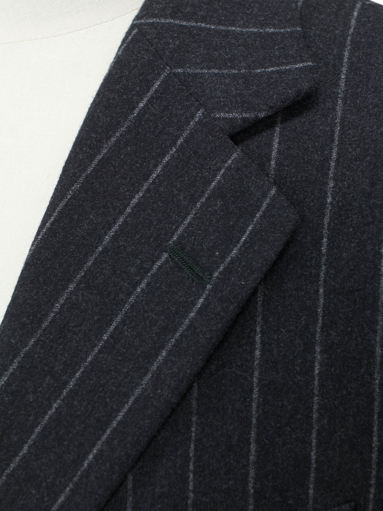 Handmade in Naples, the suit is constructed from Super 100’s wool flannel that’s warm yet breathable, with a gentle drape and a brushed finish that feels especially comfortable through the colder months. The flat-front trousers are finished with turn-ups for a touch of relaxed formality. Horn buttons and hand-stitched buttonholes complete the picture, reflecting the craftsmanship and detail that elevate this beyond the everyday. Discover the elaborated sartorial details below.