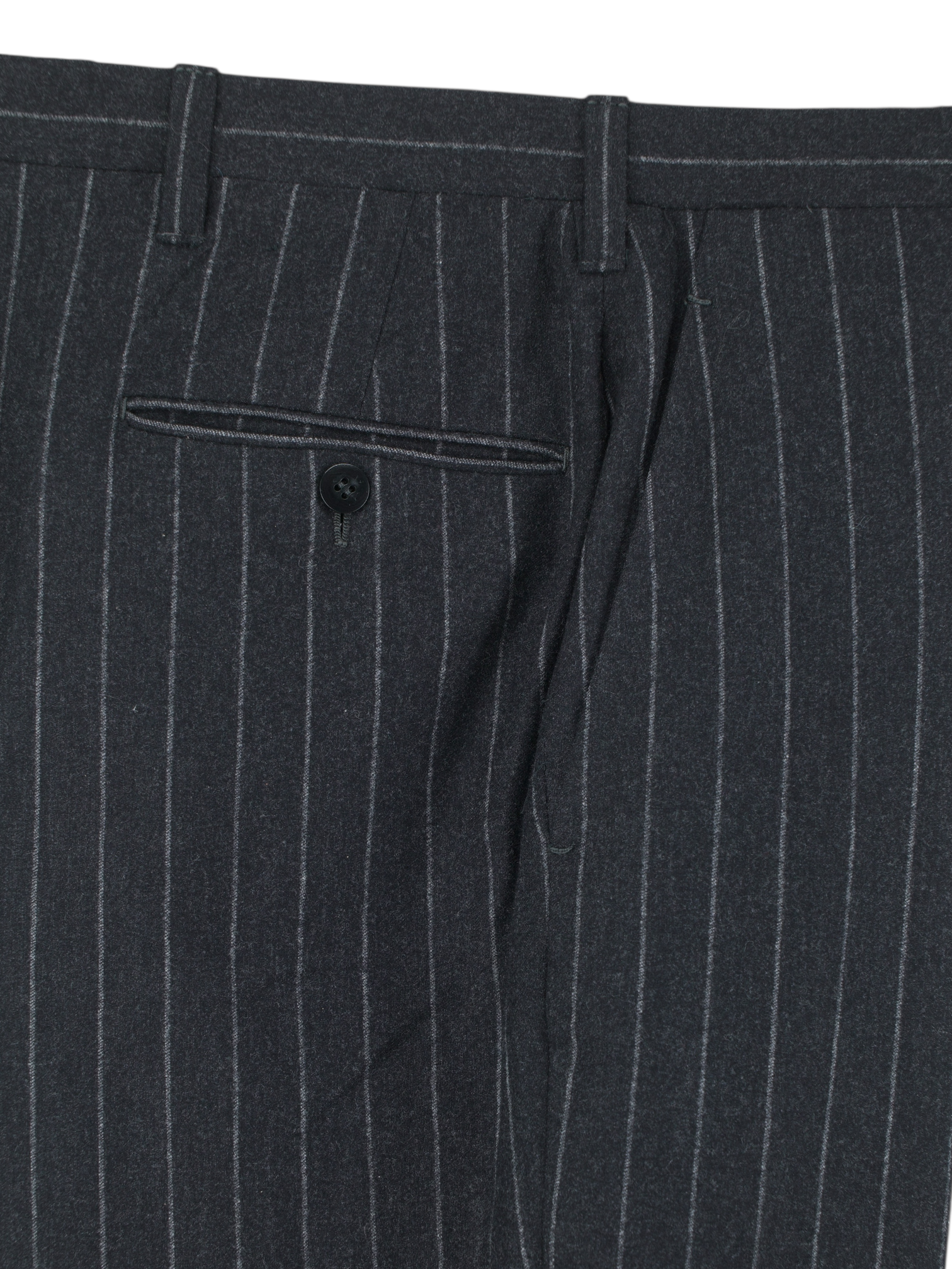 Discover the Cesare Attolini Dark Grey Super 100’s Wool-Flannel Pinstripe Suit, a classic in every sense, echoing the kind of understated elegance Gianni Agnelli might have favoured. The soft flannel cloth in a rich dark grey is patterned with subtle chalk pinstripes, offering a refined take on business tailoring with a distinctly Italian touch. The jacket is cut with notch lapels, a two-button closure and flap pockets, shaped to sit naturally on the body with quiet precision.