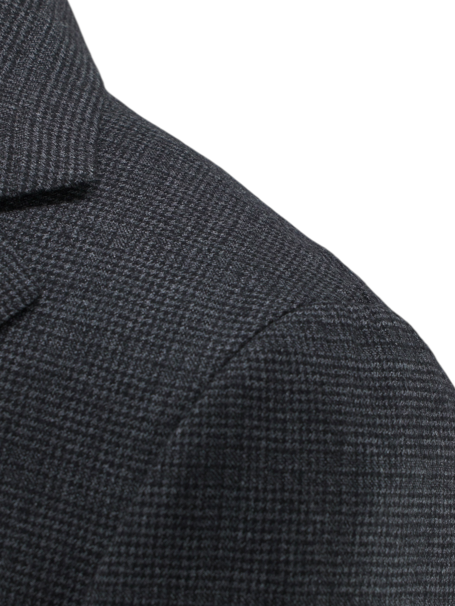 Cut from fine Super 160’s wool and handmade in Naples, the fabric is soft, lightweight and impeccably balanced. Hand-stitched buttonholes and natural horn buttons are subtle nods to the craftsmanship behind the piece, while the construction - defined by a natural shoulder and precise shaping - delivers both comfort and elegance. Ideal for those who appreciate tailoring with quiet complexity. Discover the elaborated sartorial details below.