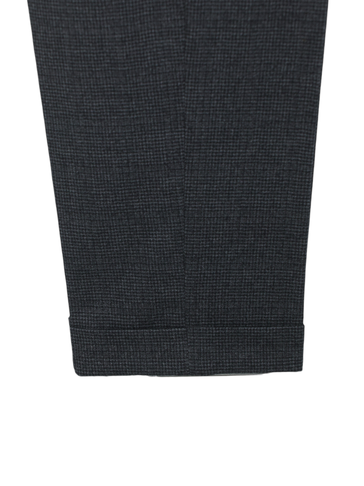 The turn-up hem, or cuffed hem, is a classic style where the fabric at the bottom of the trousers is folded outward to create a visible cuff. This style originated with Edward VII in the late 19th century, who had his trousers tailored with cuffs to prevent them from getting muddy, sparking a trend among the fashionable elite. In the 1920s and 1930s, turn-ups became a symbol of wealth and sophistication, as having extra fabric was seen as a luxury. This association continued after World War II when wearing turn-ups subtly indicated affluence in an era of fabric rationing. Today, turn-up hems are a nod to their historical roots, offering a touch of classic elegance and enhancing the overall appearance of formal and tailored trousers.