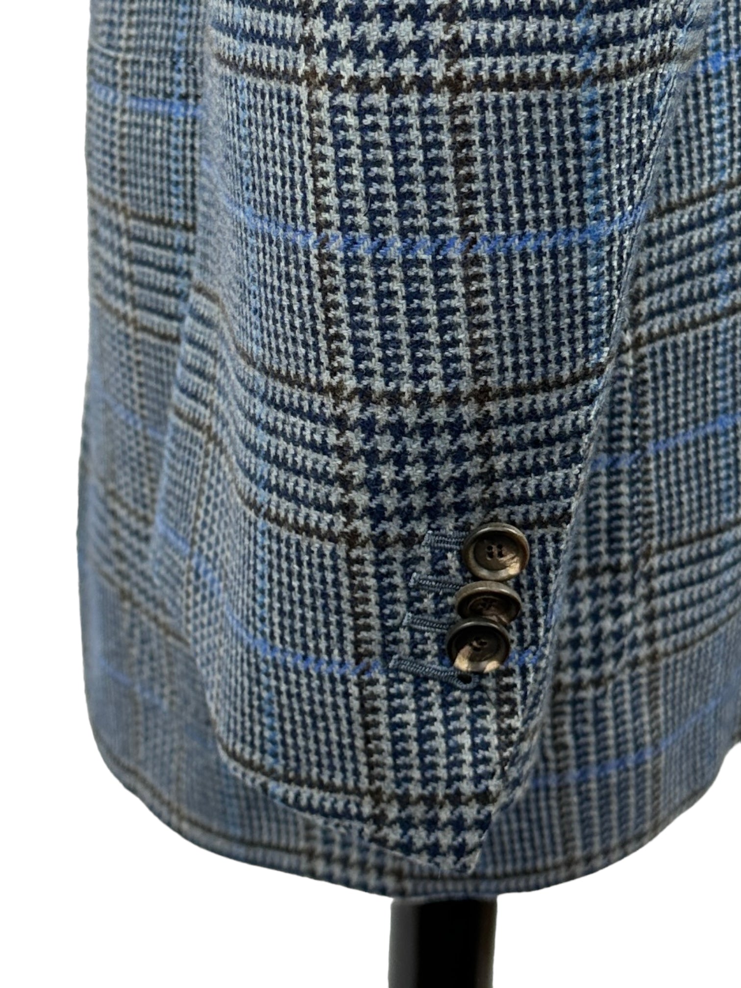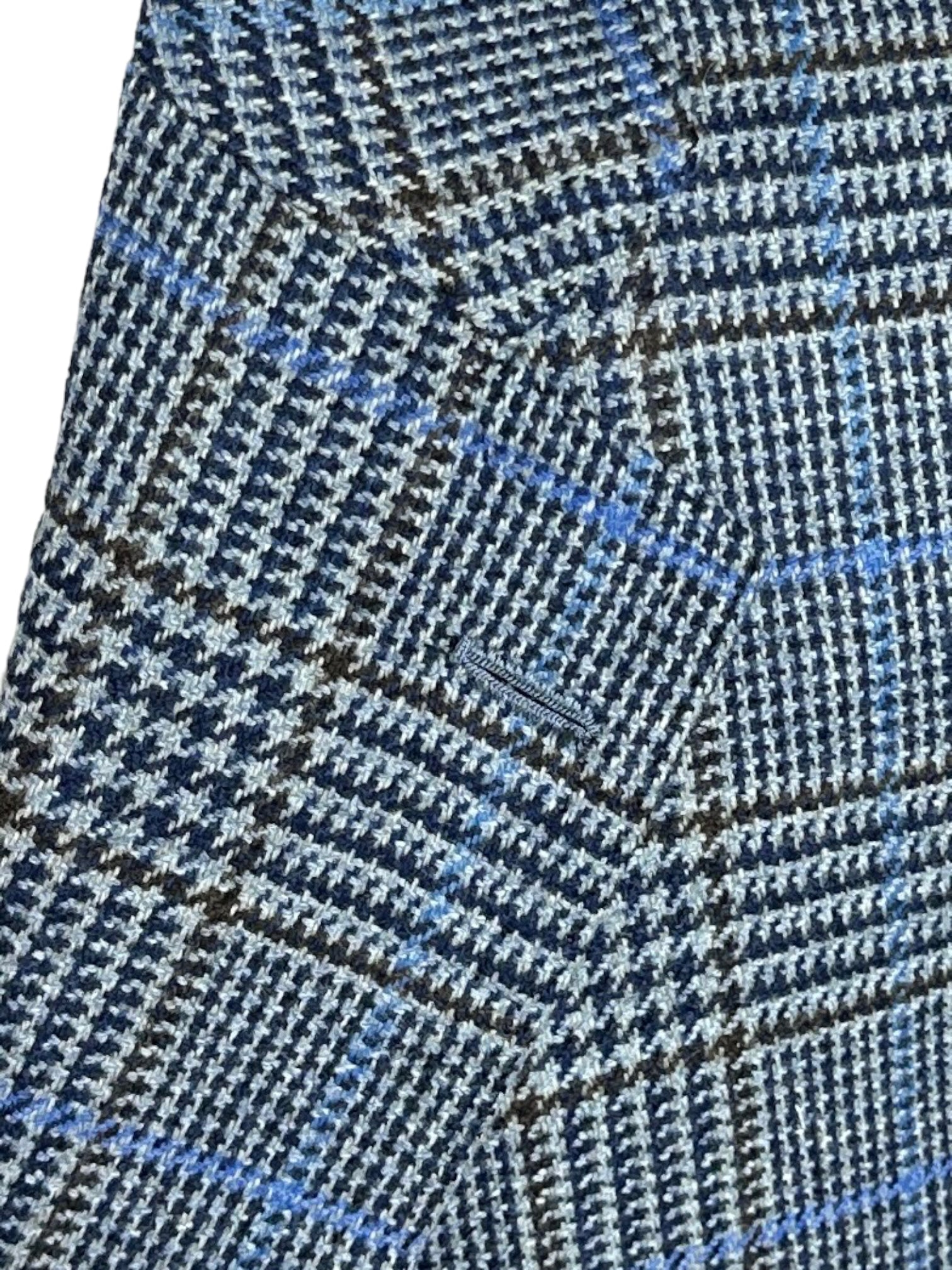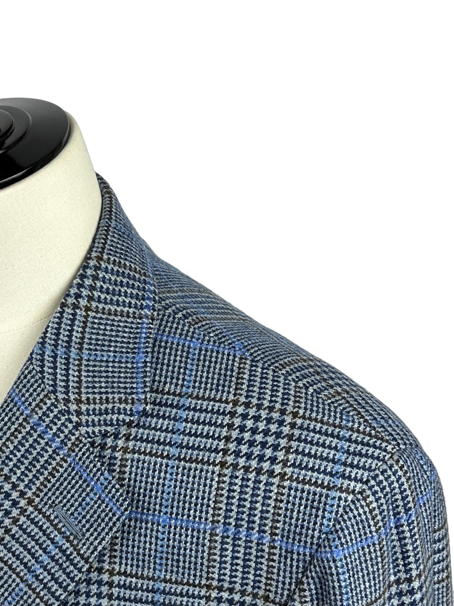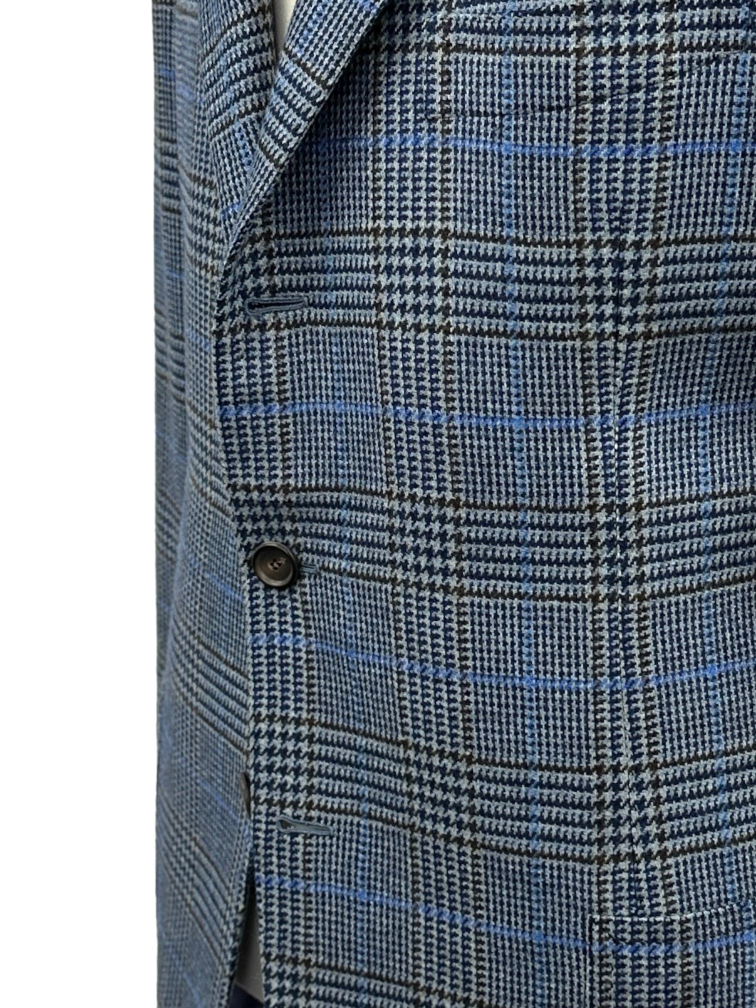 Handgemaakt Napolitaans jasje gemaakt van luxe kasjmier, met ingekeepte revers, opgestikte zakken en handgemaakte knoopsgaten - aan het uiteinde van de mouw. Ontdek hieronder de uitgebreide kleermakersdetails.