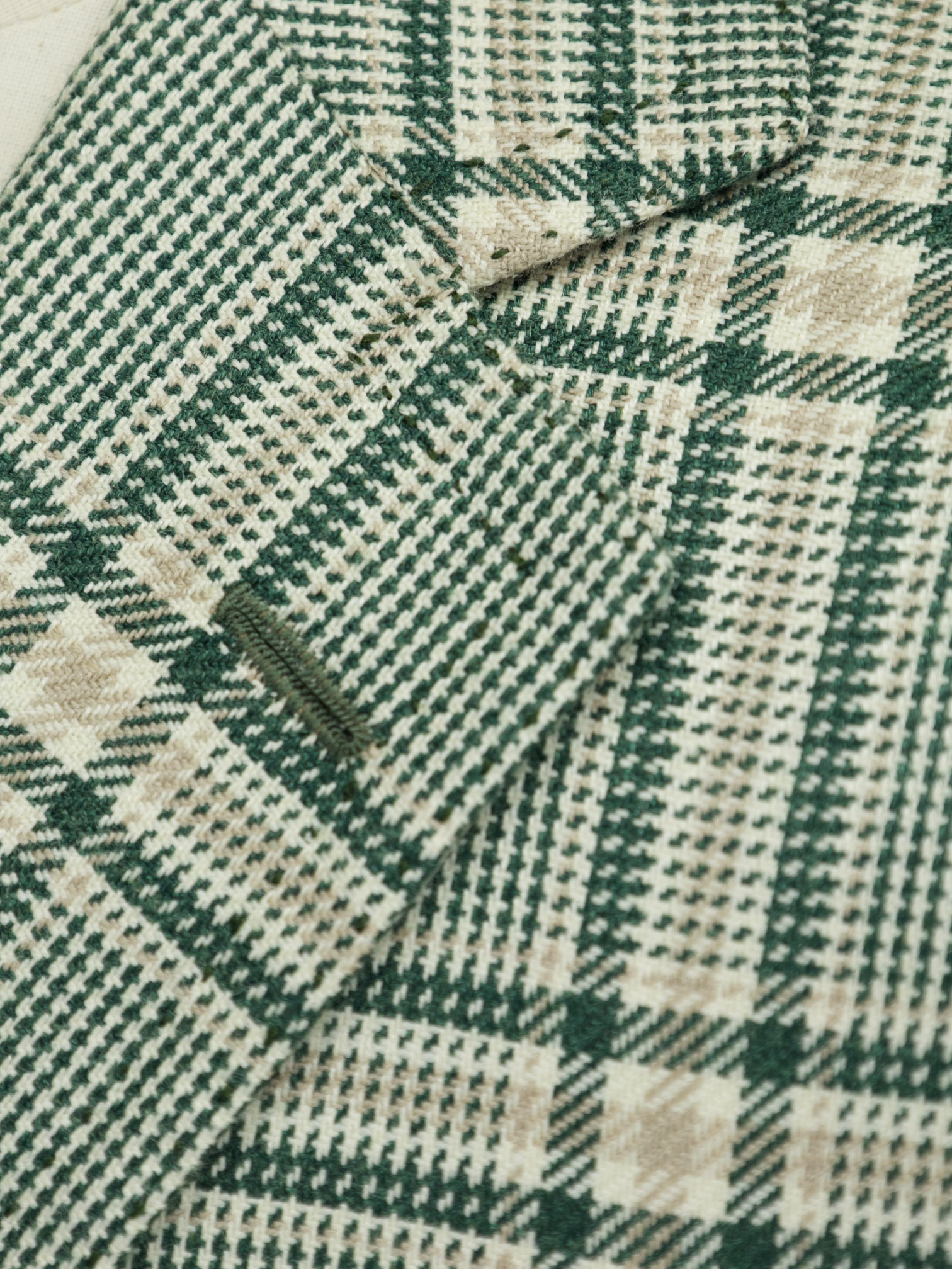 Handcrafted in Naples, this jacket exemplifies Cesare Attolini's unparalleled dedication to artisanal tailoring. Each piece undergoes meticulous hand-stitching, from the canvassed construction that molds to your body over time to the precise alignment of the tartan pattern across seams. The blend of wool, silk, and linen offers a luxurious yet lightweight texture, reflecting the brand's commitment to sourcing only the finest materials. Experience a garment steeped in Italian sartorial excellence. Discover the elaborated sartorial details below.