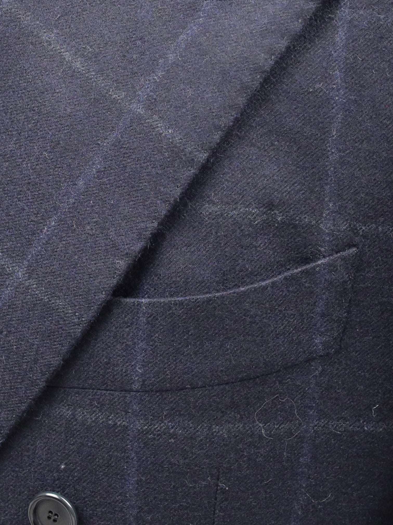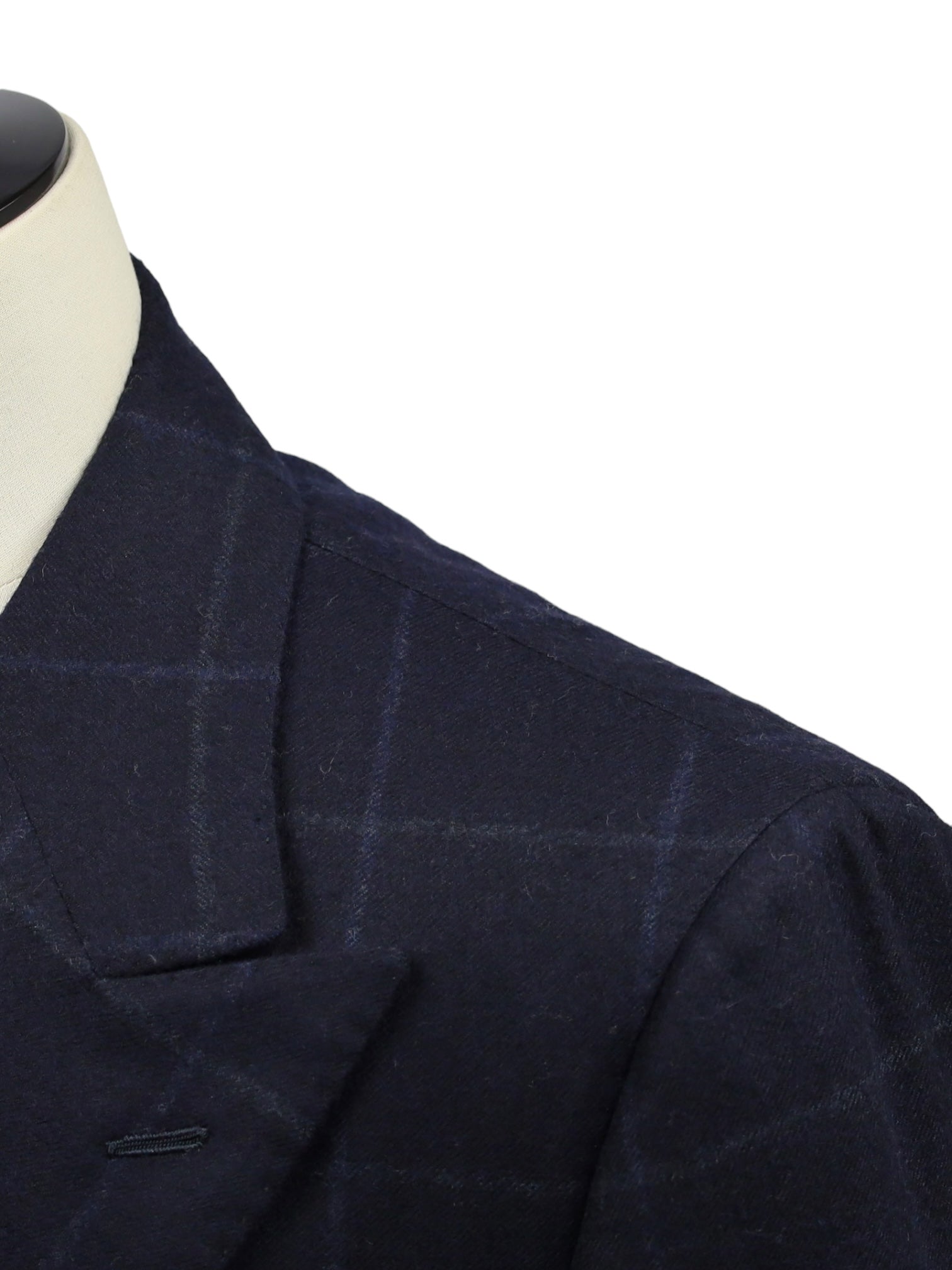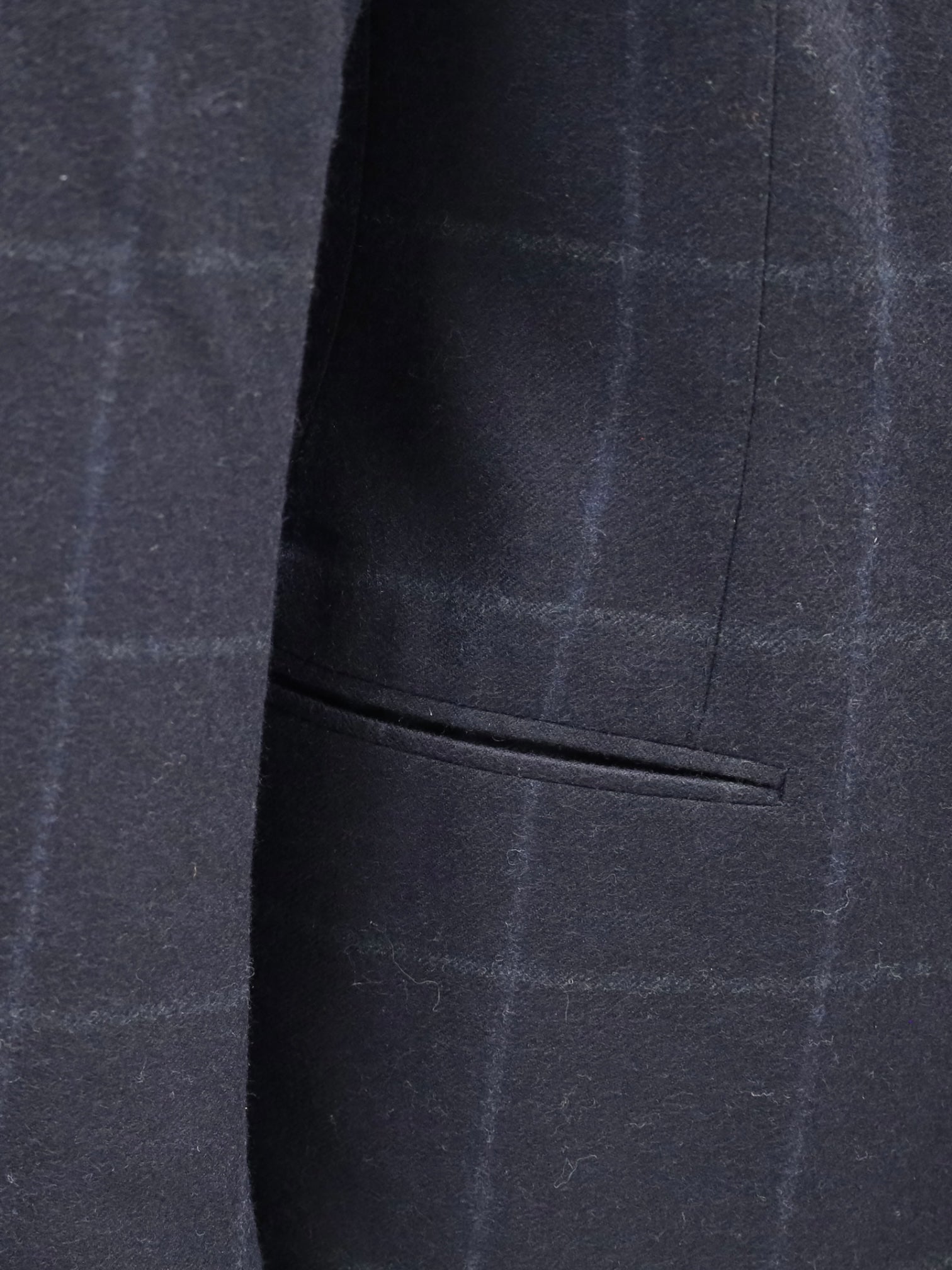 Handgemaakt double-breasted jasje van wol, met puntige revers, paspelzakken en - handgemaakte - functionerende knoopsgaten aan het uiteinde van de mouw. Ontdek hieronder de uitgebreide kleermakersdetails.