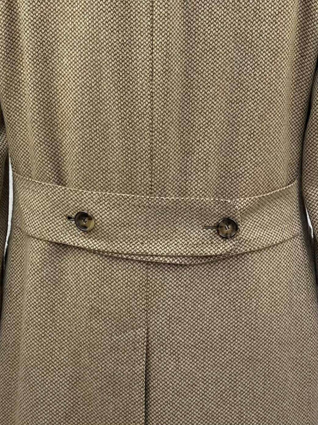 De 'tre bottoni stirato a due', ook bekend als de drie rollend op twee reversstijl, is misschien wel het meest beruchte kenmerk van het Neapolitaanse stijl jasje. De bovenste knoop en knoopsgat zijn decoratief, dus blijven ongeknoopt. Terwijl de revers omlaag rolt, vouwt het elegant over de bovenste knoop en stopt net 4 cm boven de tweede knoop, wat de kenmerkende rol van de revers creëert waar de stijl om bekend staat. Omdat het bedoeld is om ongeknoopt te blijven, wordt het bovenste knoopsgat eigenlijk binnenstebuiten gemaakt, zodat de mooie kant nog steeds zichtbaar is.