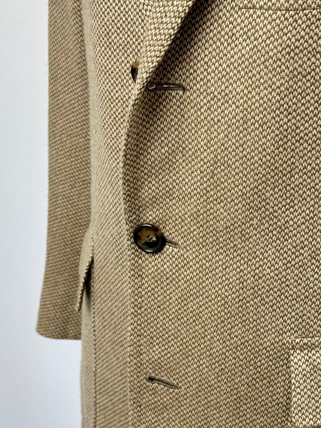 Een kleermakersjasje - of jas - heeft een tussenvoering nodig die helpt om het vorm te geven en te vormen. Canvas geeft het item een op maat gemaakte en ambachtelijke look. Kortom, het blaast leven in. Puur technisch, canvas is gemaakt van paardenhaar, wol, mohair of kamelenhaar. Het kan ook een mix van allemaal zijn, met verschillende diktes en gewichten. Het canvas wordt, vaak met de hand, aan het jasje gestikt, waardoor de stukken canvas 'zweven' in het midden van de binnen- en buitenstof. Dit geeft de jas extra flexibiliteit. Het canvas loopt van de bovenste delen helemaal door tot aan het uiteinde van de jas. Nadat je je canvaspak een tijdje hebt gedragen, begint het je vorm aan te nemen en er ongelooflijk natuurlijk uit te zien.
