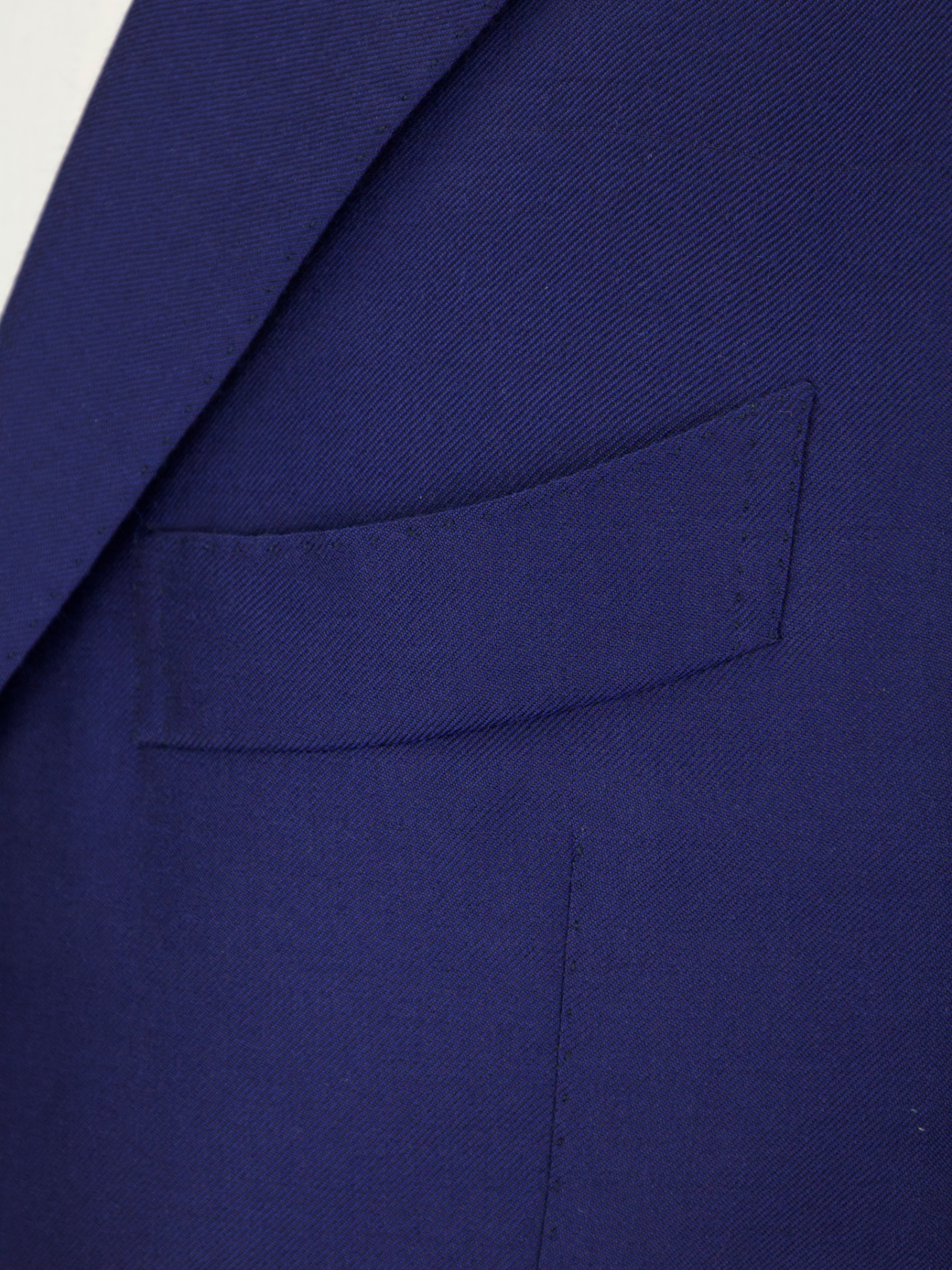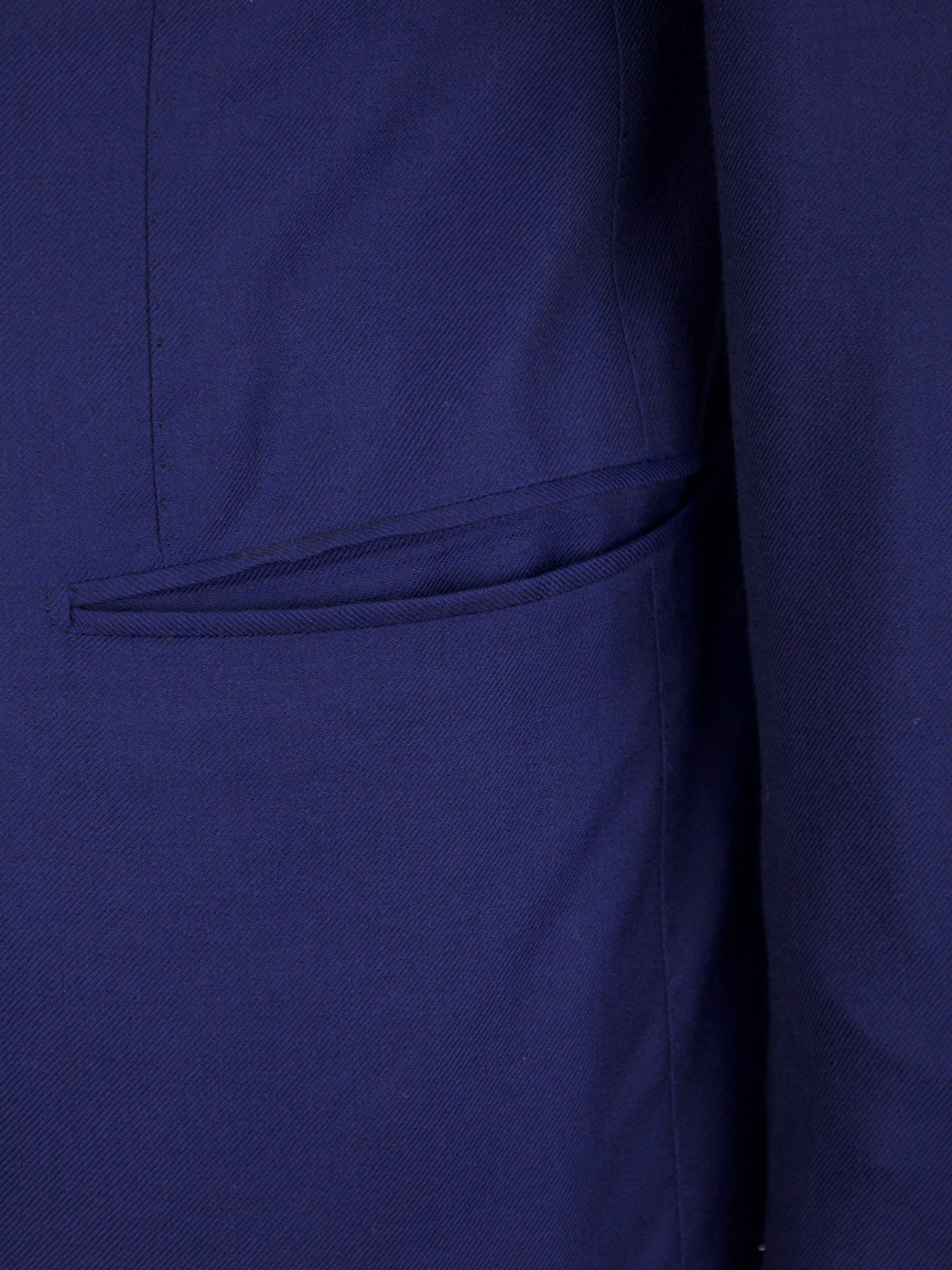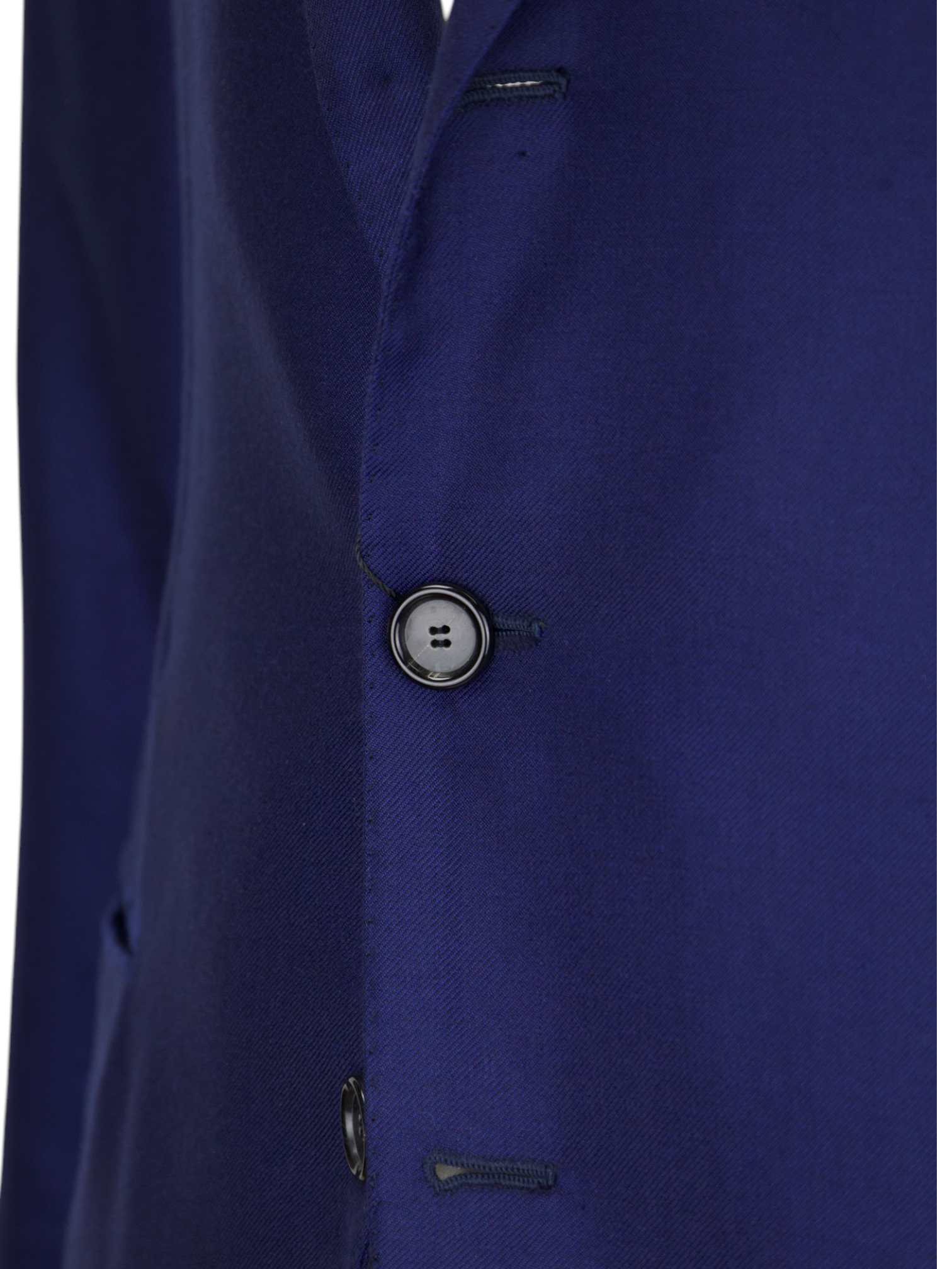 Handgemaakt Napolitaans jasje gemaakt van extra fijne wol, met ingekeepte revers, paspelzakken en - handgemaakte - functionerende knoopsgaten aan het uiteinde van de mouw. De kortere achterkant en mouwen zijn een typisch Napolitaans detail. Ontdek hieronder de uitgebreide kleermakersdetails.