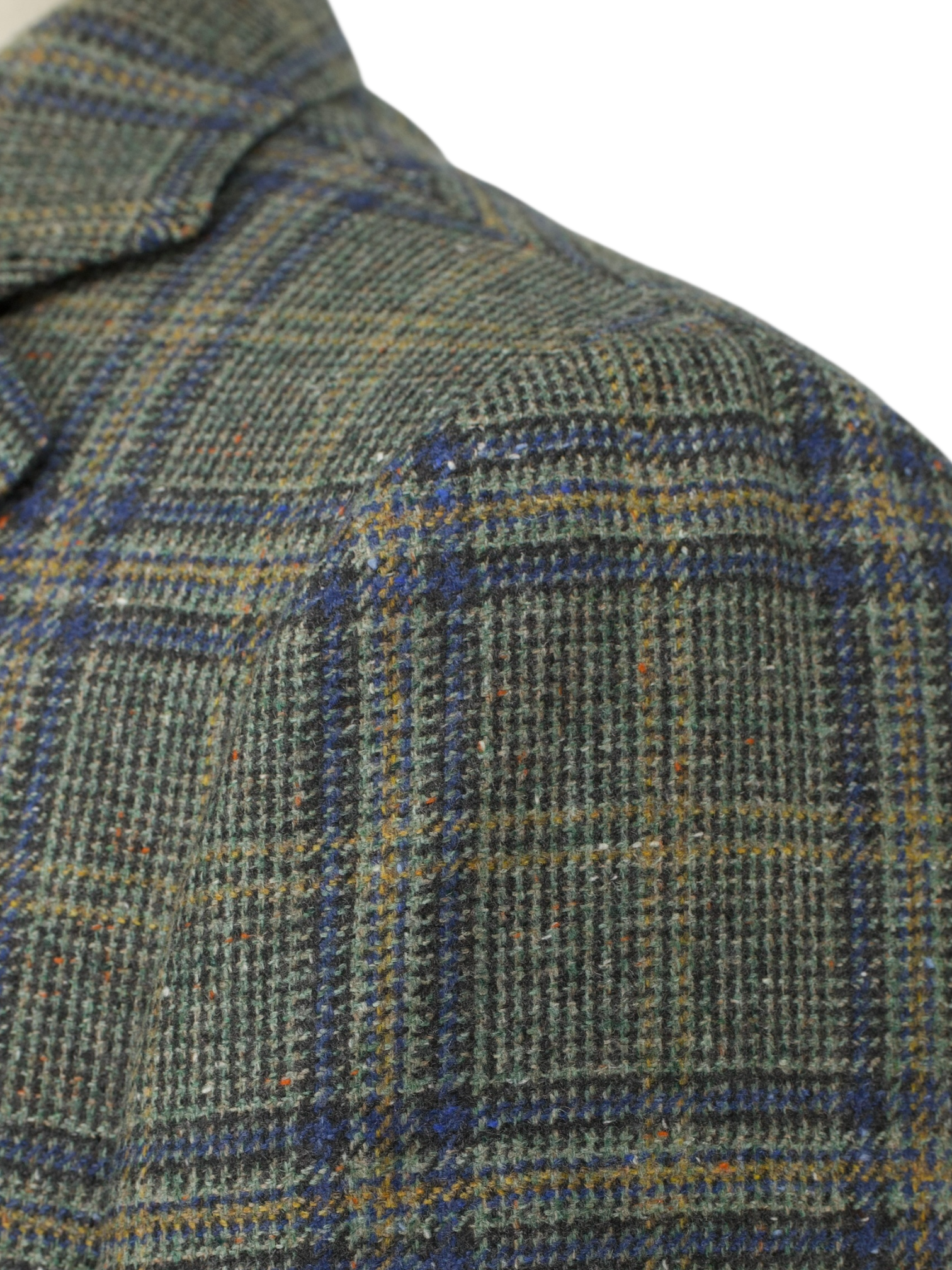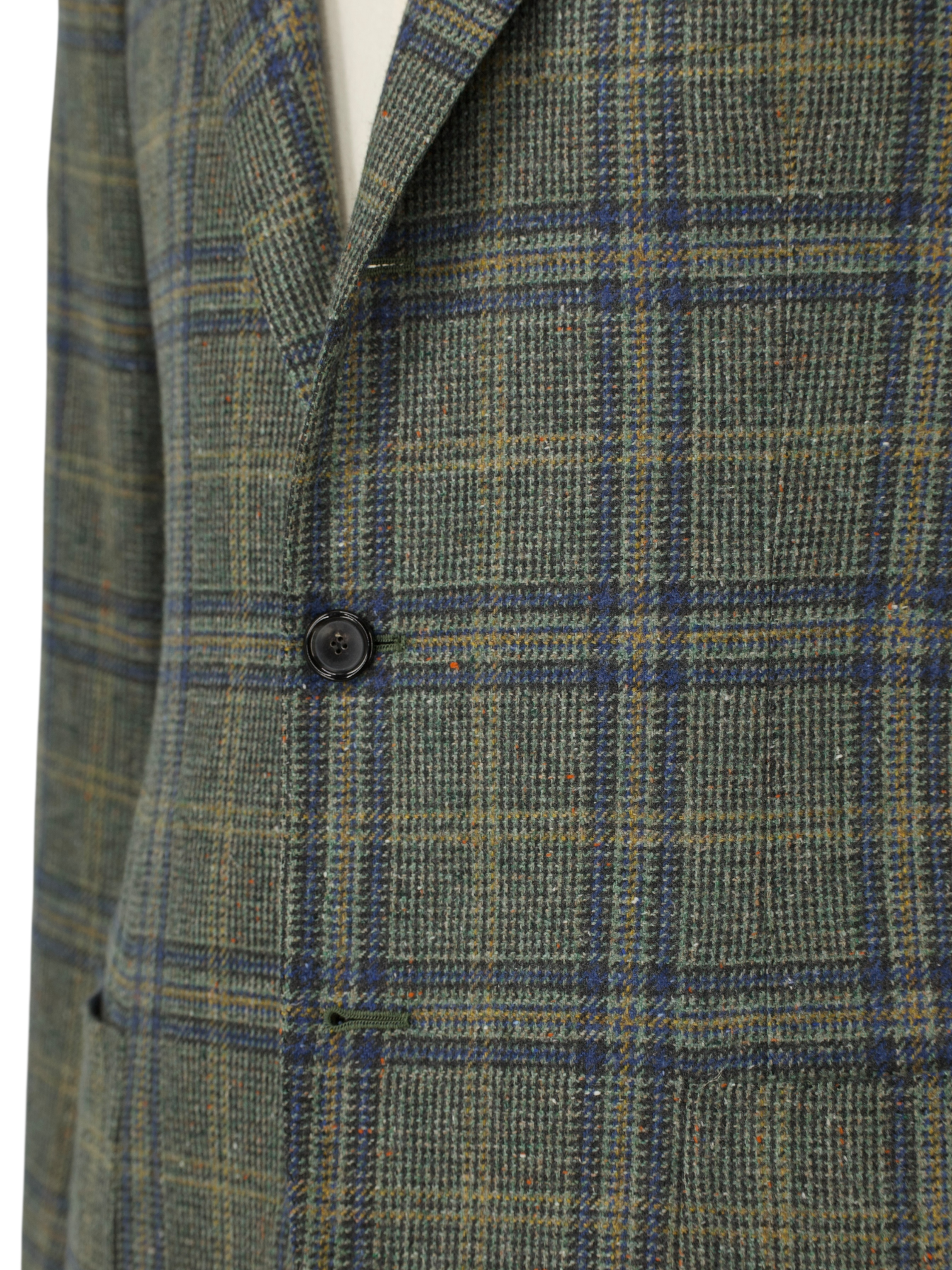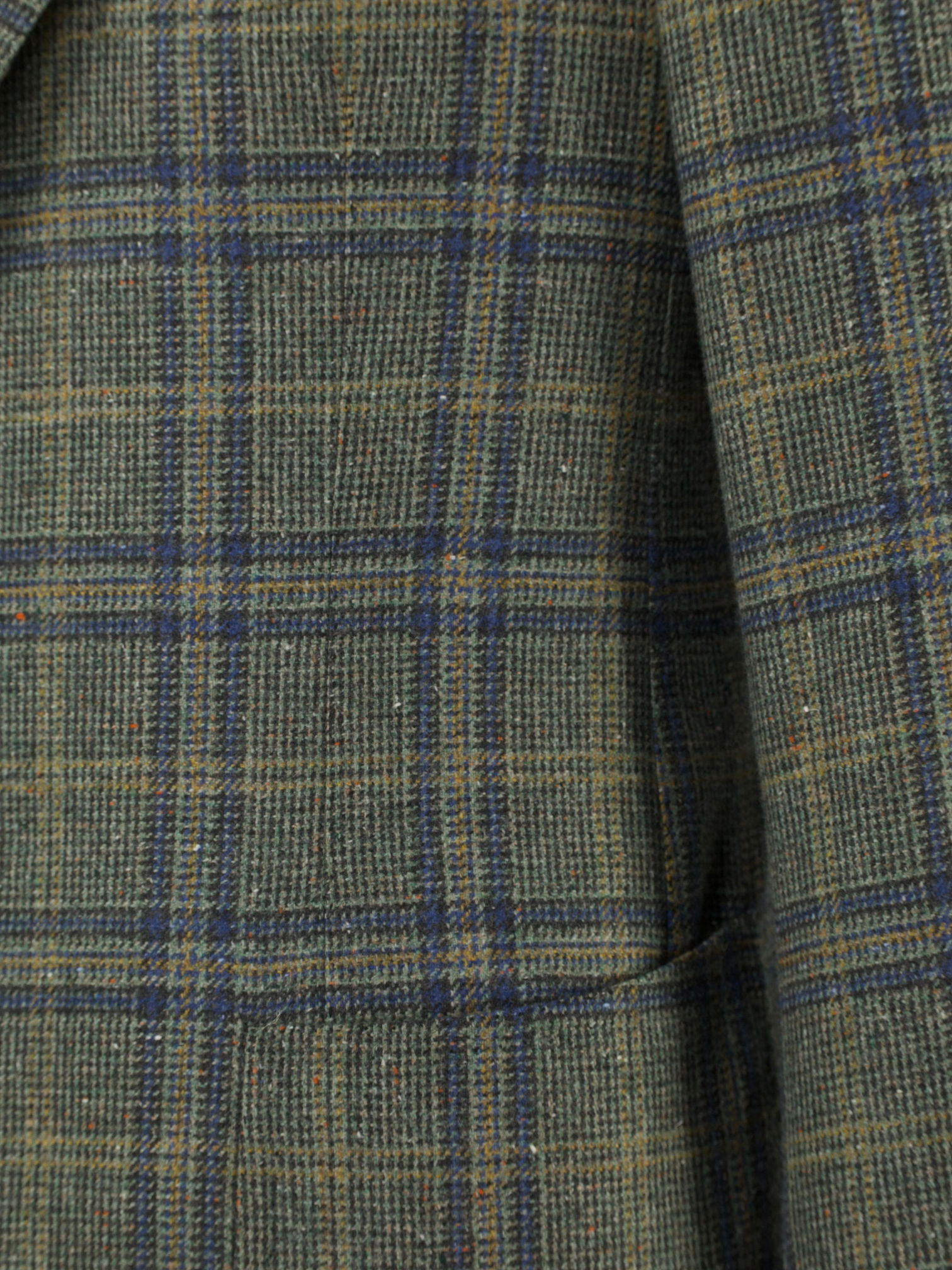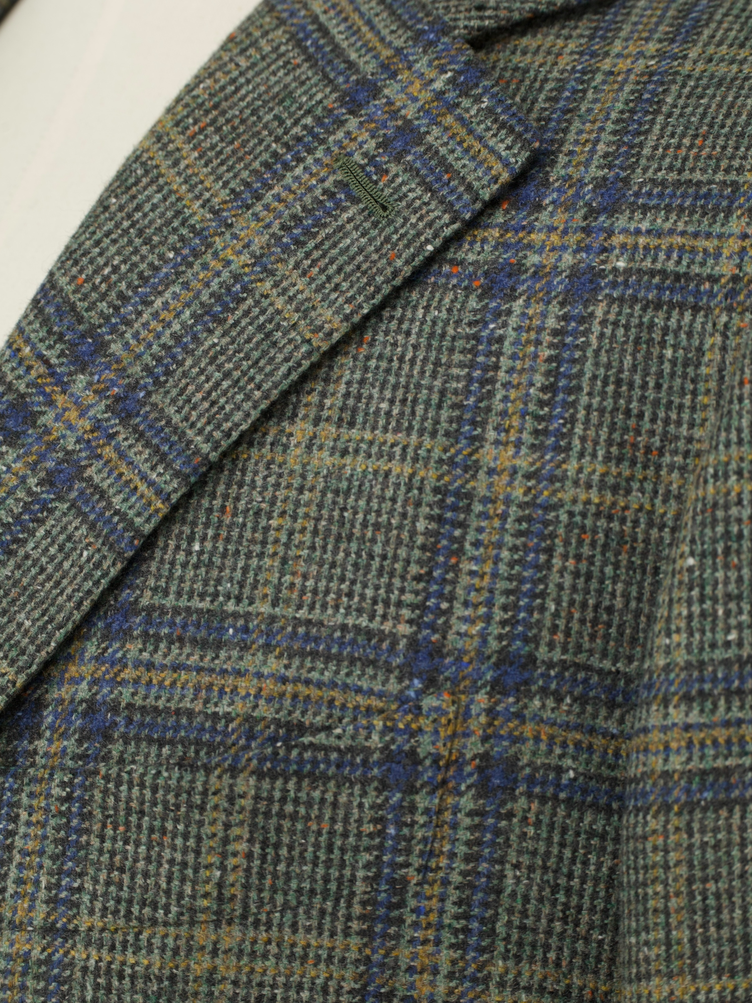 Discover the distinctive charm of this Cesare Attolini jacket, tailored in an exquisitely soft blend of cashmere and silk. The sage green base is elevated by a warm blue and soft orange overcheck, interspersed with playful flecks of orange Donegal nep that bring the cloth to life. With its tactile hand and richly layered palette, the fabric holds particular appeal for those who appreciate texture and subtle complexity. Classic Neapolitan details include notch lapels, a 2.5-button closure and patch pockets, all designed to highlight the natural ease of the cut.