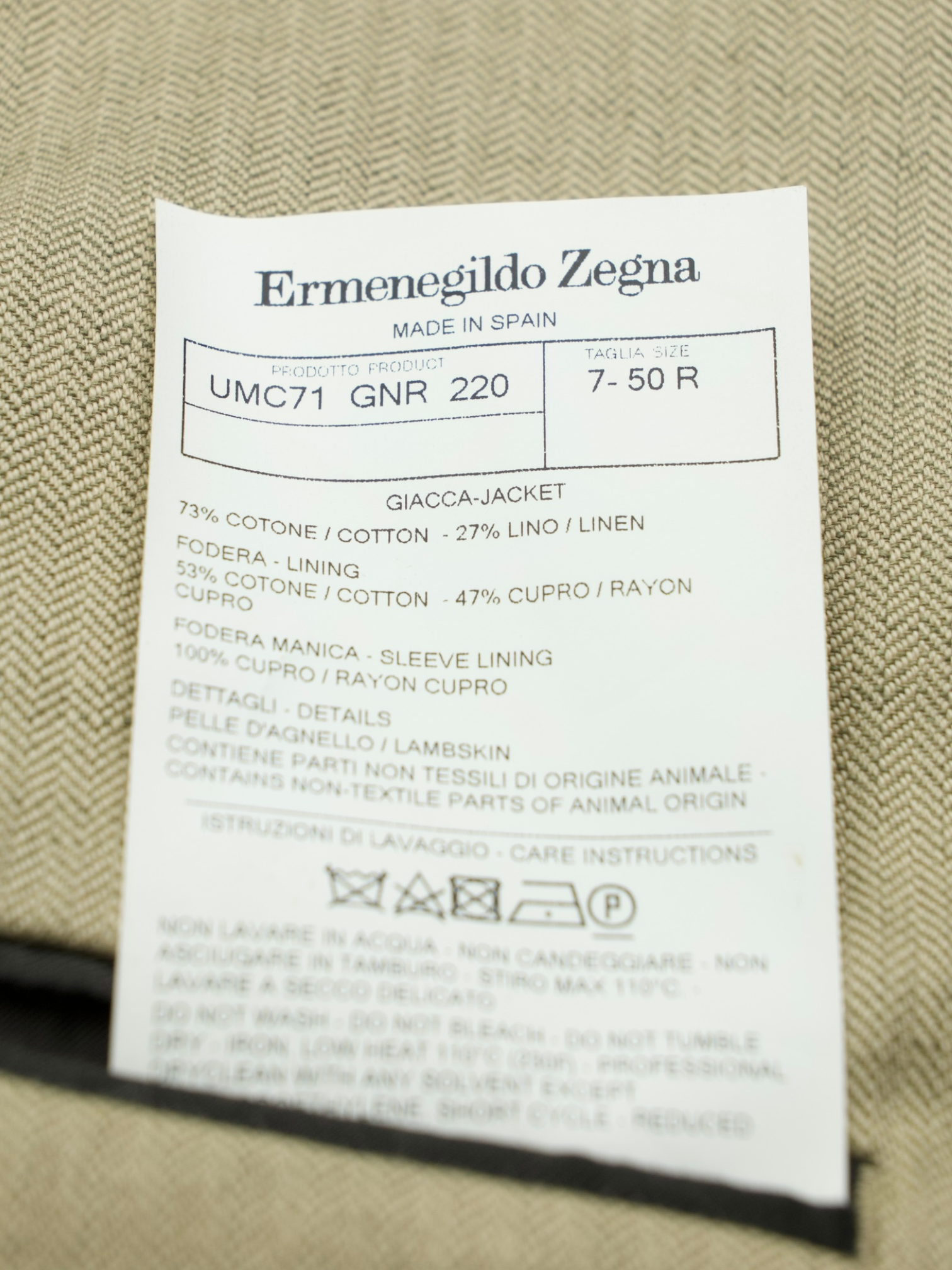 Ermenegildo Zegna Beige Cotton & Linen Herringbone Jacket