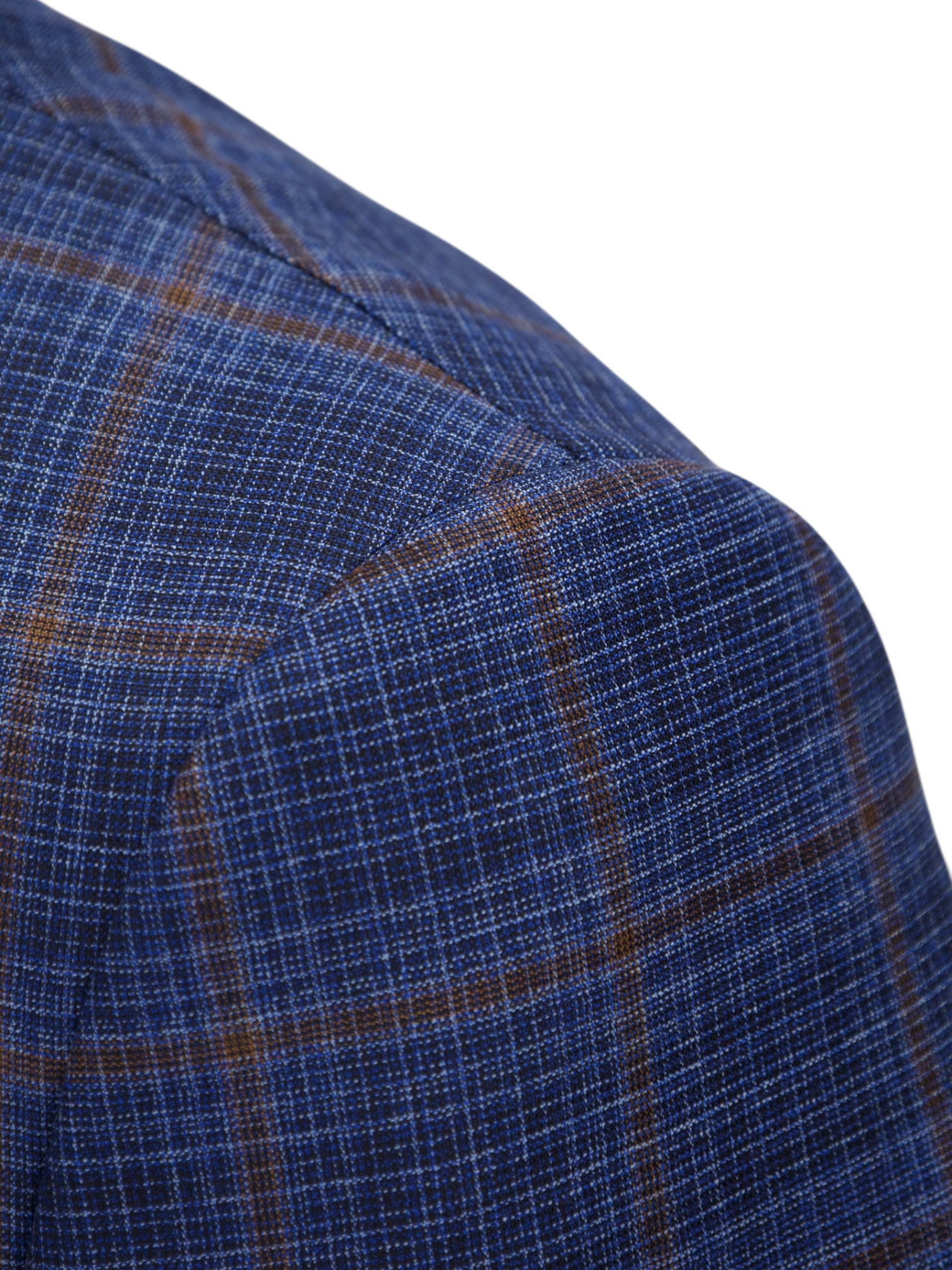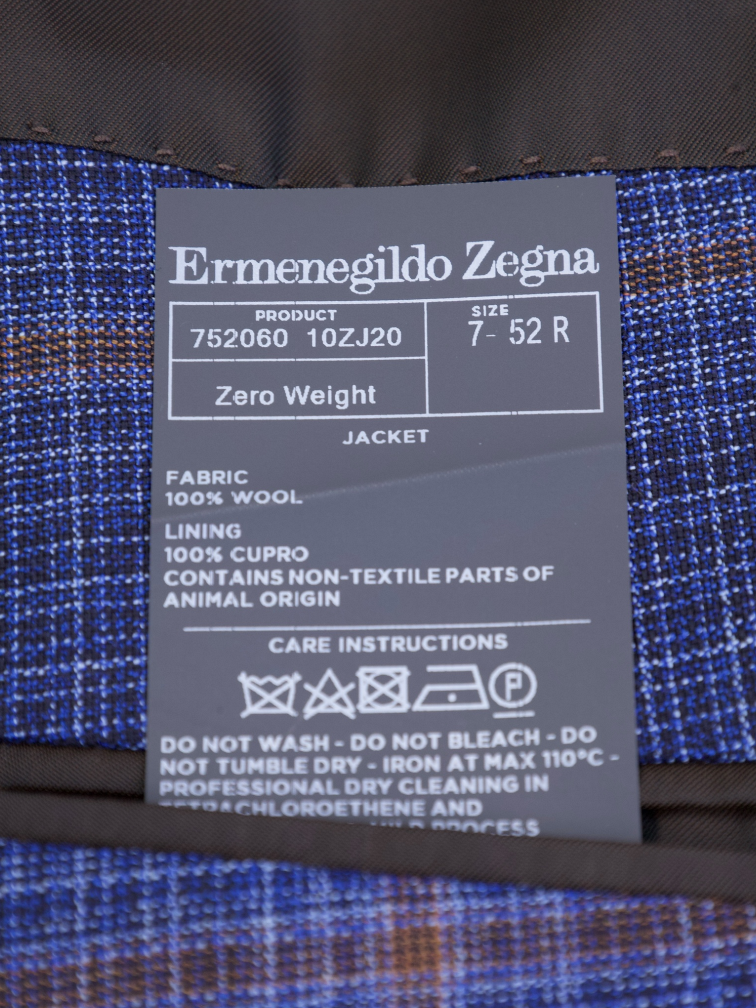 Ermenegildo Zegna Blue & Brown Windowpane “Zero Weight” Jacket