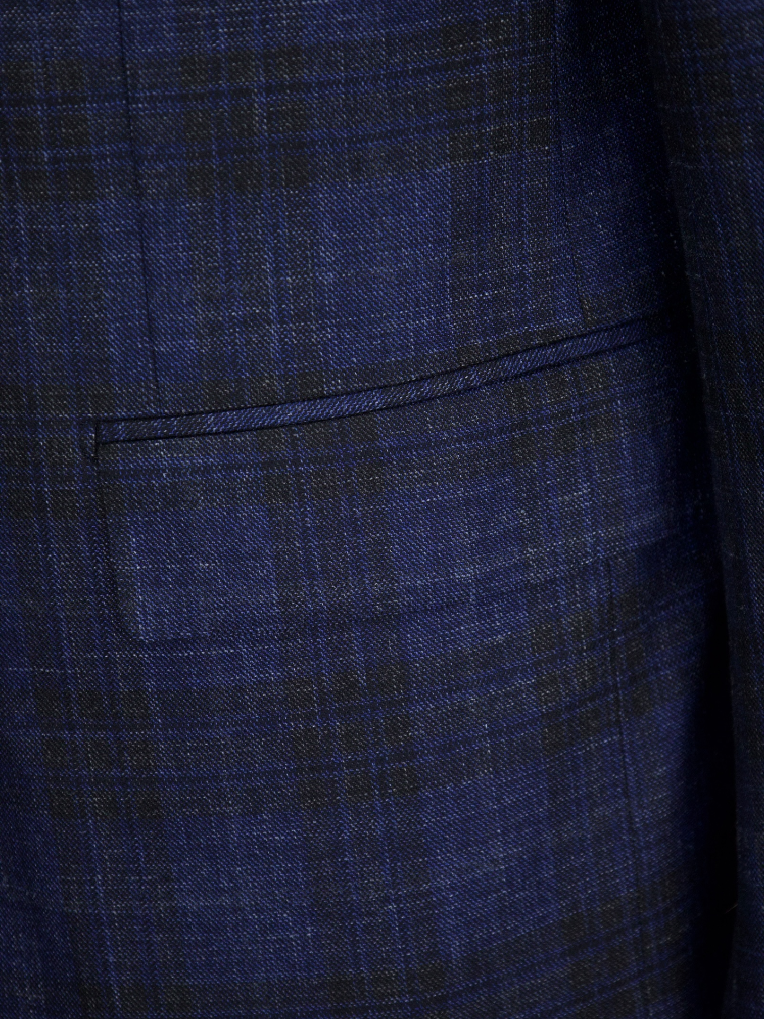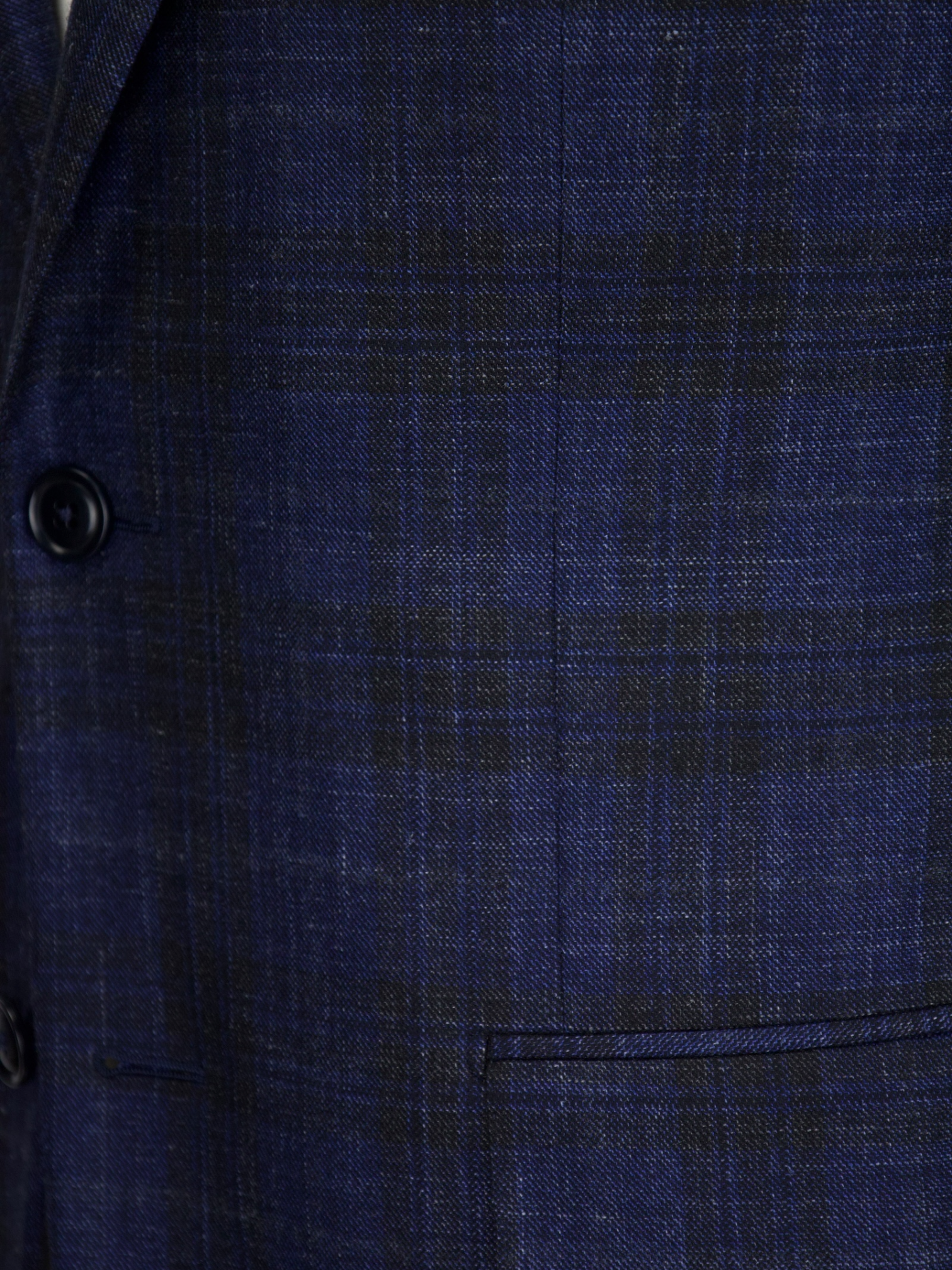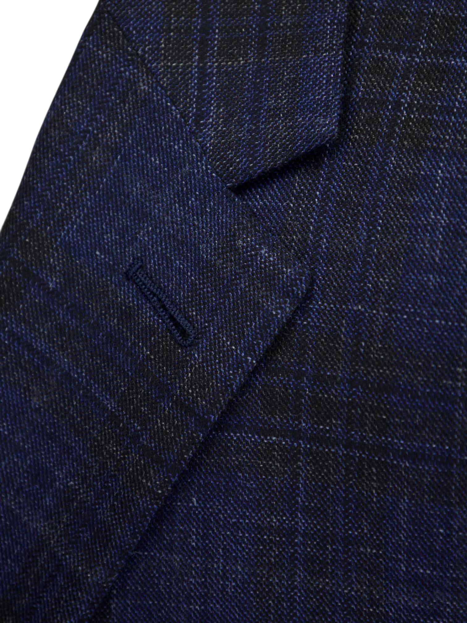 Ermenegildo Zegna Dark Indigo Blue Wool, Silk, Cashmere & Linen Glenplaid Jacket