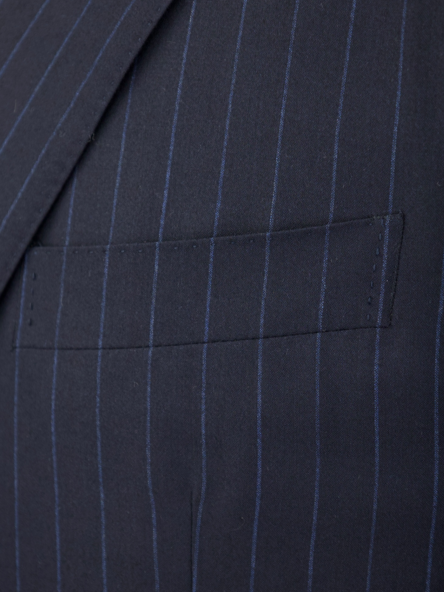 Ook bekend als 'barchetta', Italiaans voor 'bootje', wordt het zo genoemd omdat deze zak zweeft op de borst, lichtjes schuin omhoog, net als de boeg van een zeilboot. Deze zakken echoën de levendige rol van een revers die de veerkracht van canvas en natuurlijke wol draagt, in tegenstelling tot machinaal gemaakte borstzakken die een meer platte, rechthoekige vorm hebben en minder leven.